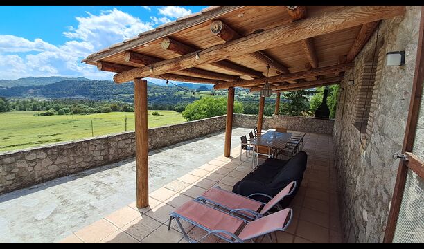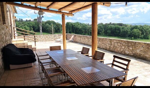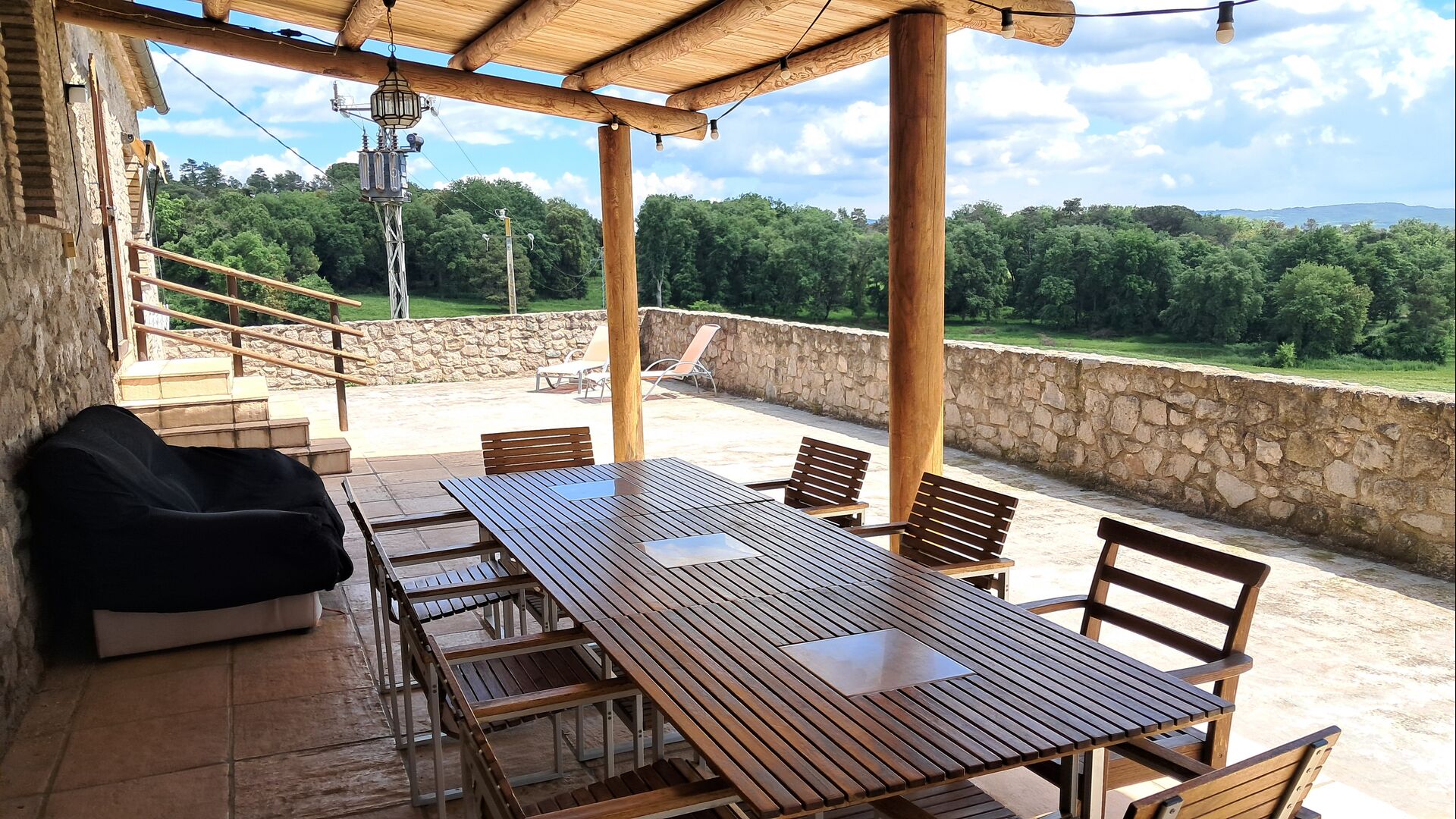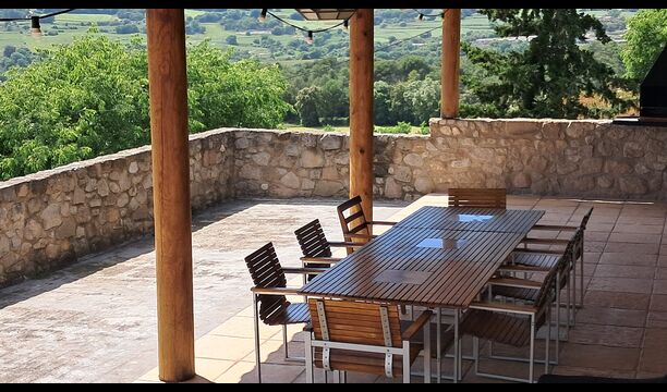 Des de la sala comuna, té accés a la terrassa coberta de 100 m2 amb una vista excel·lent. Hi ha una barbacoa a la terrassa, de manera que és el lloc perfecte per als seus menjars, així com la relaxació.