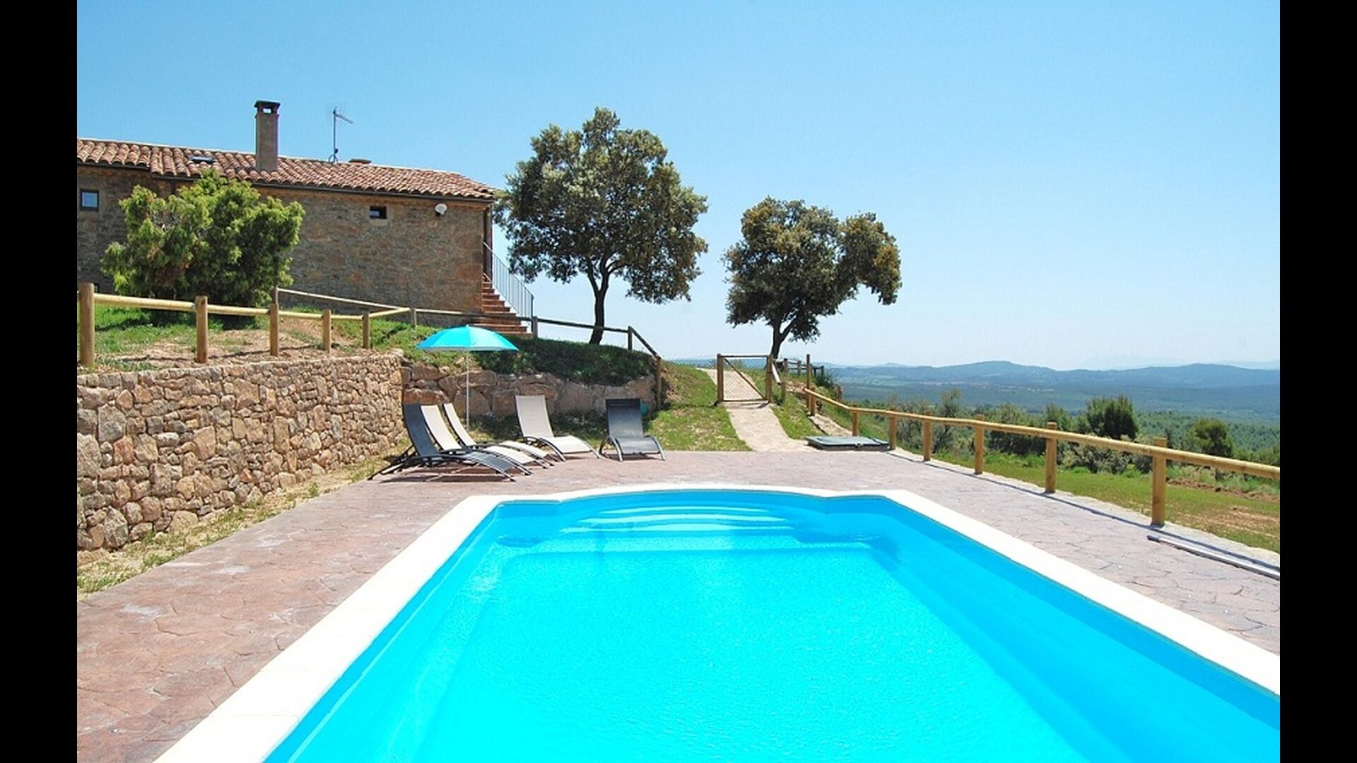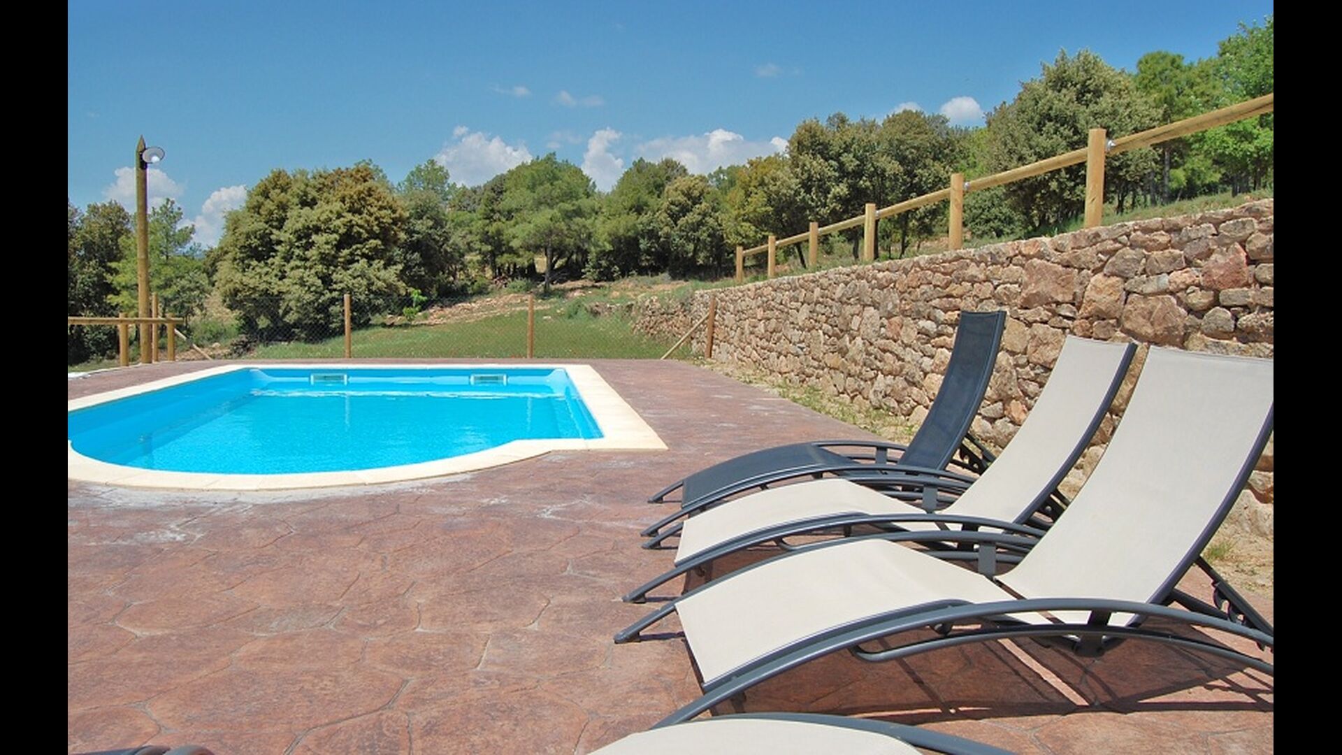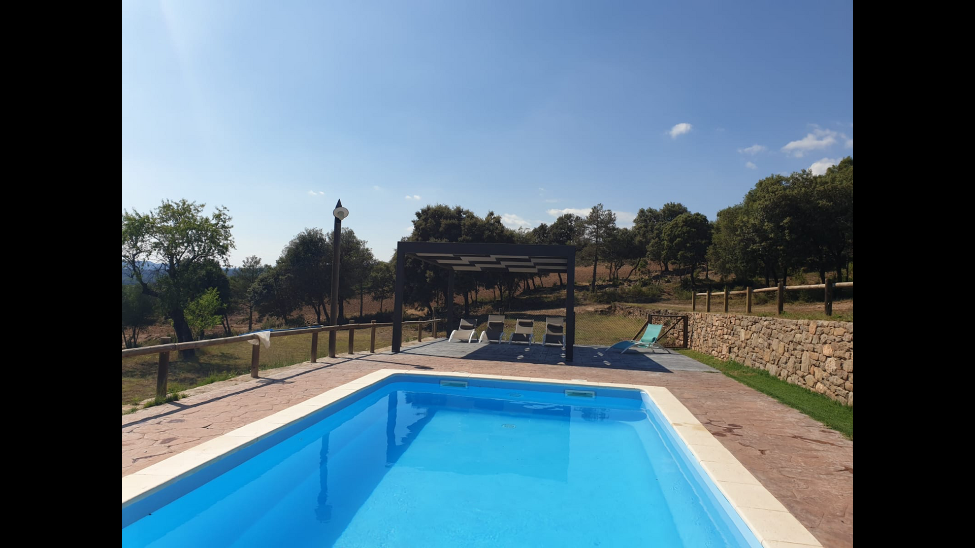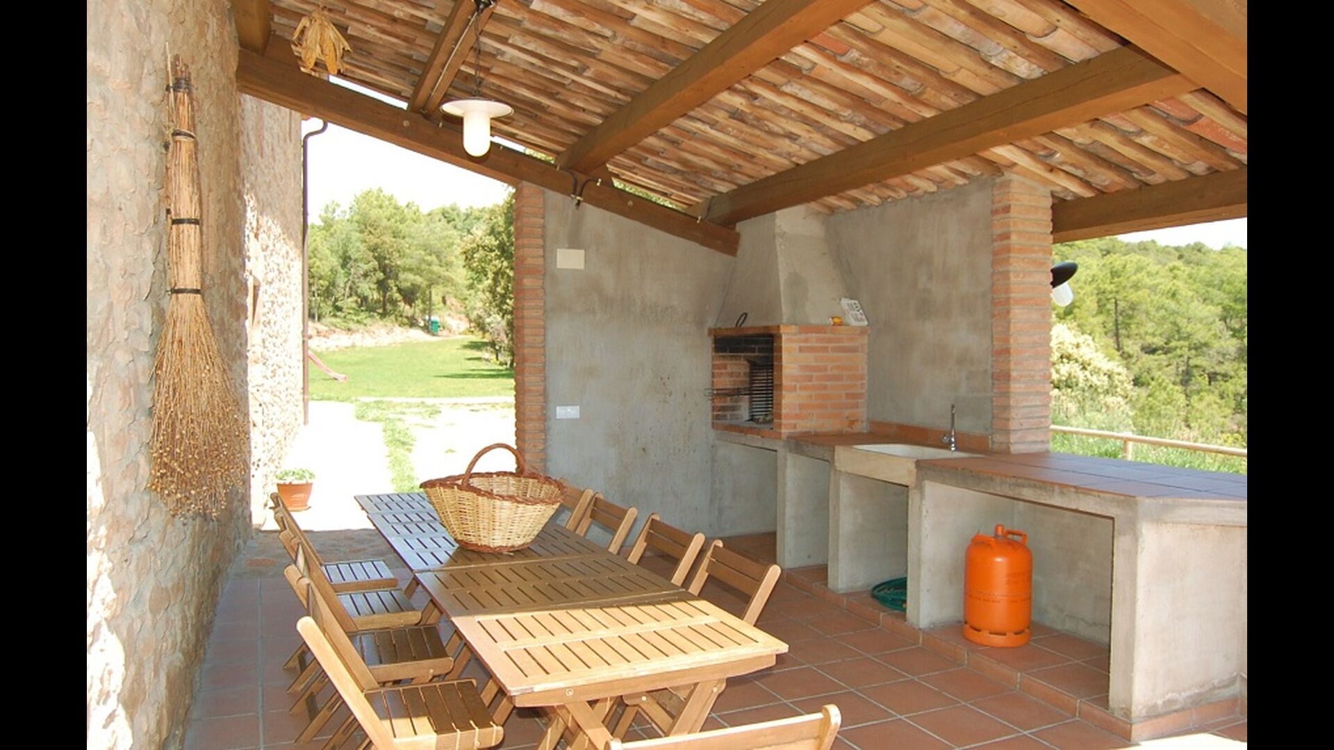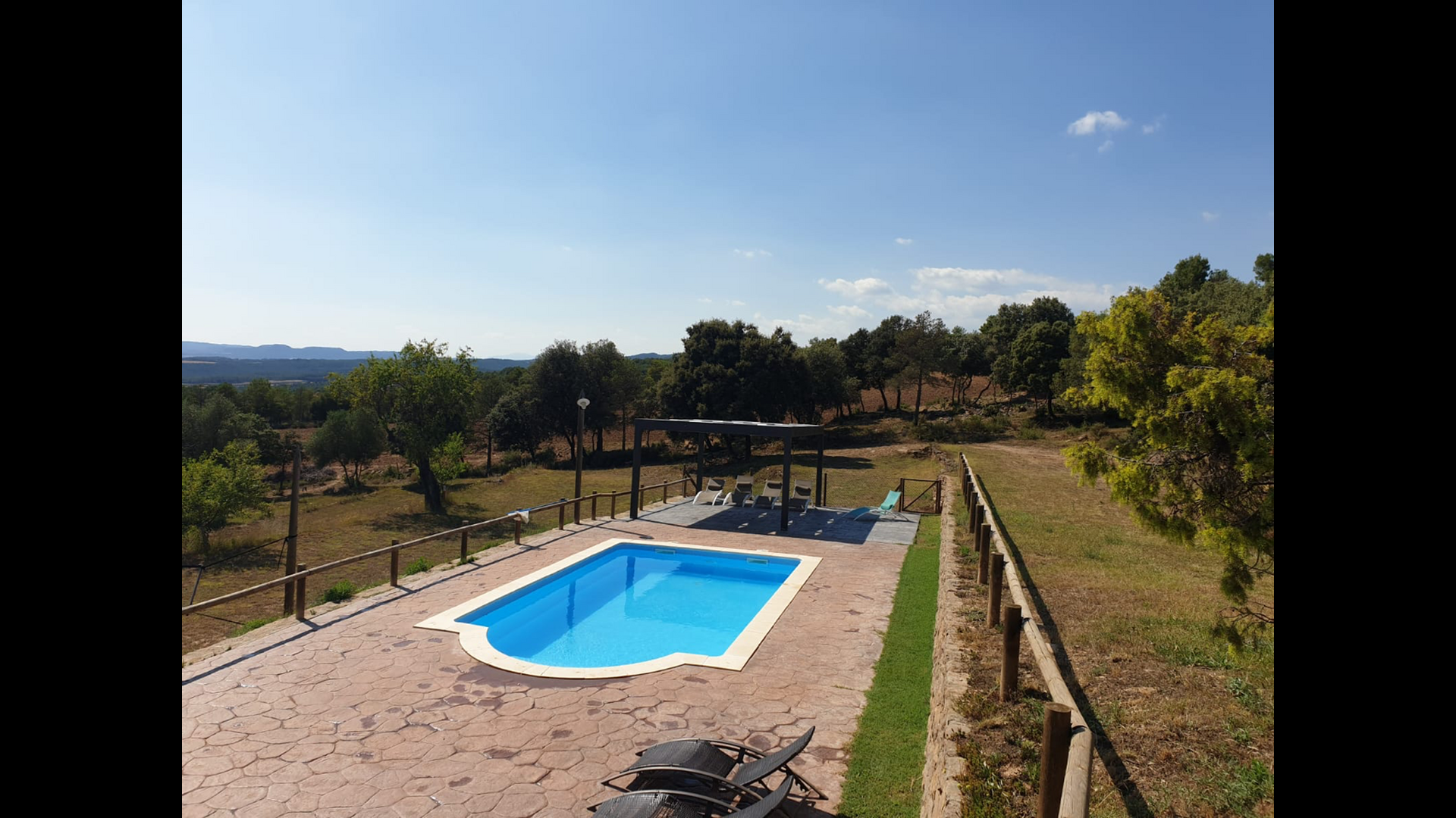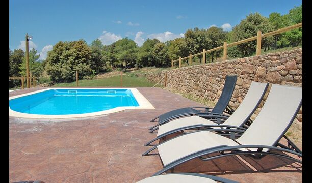 La casa está ubicada en la cima de una pequeña colina, haciendo que uno se sienta, que desde el jardín, casi puede ver el mundo entero y la paz aquí es perfecta para unas vacaciones, donde desea recargarse y relajarse (cuando no está en Recorrido por la región). En la propiedad hay una gran piscina vallada (lo cual es una ventaja si viajas con niños pequeños) y un gran jardín en la parte posterior de la casa con un área de juegos y espacio para juegos de pelota. La casa tiene una zona de barbacoa cubierta, que preferirá en esos días calurosos de verano o en las largas noches de verano. La terraza tiene barbacoa, cocina al aire libre y un cilindro de gas para la gran paella pan.