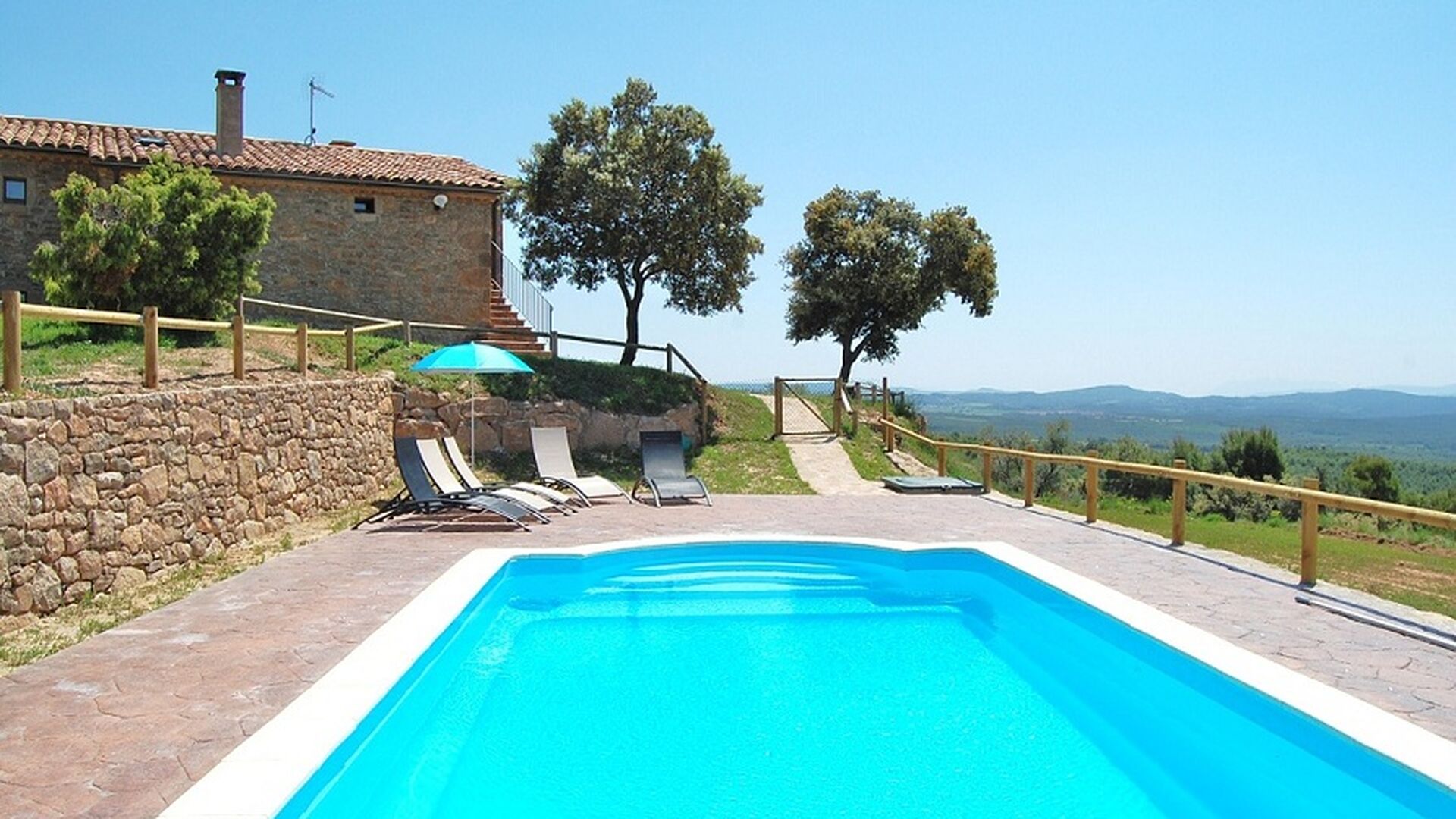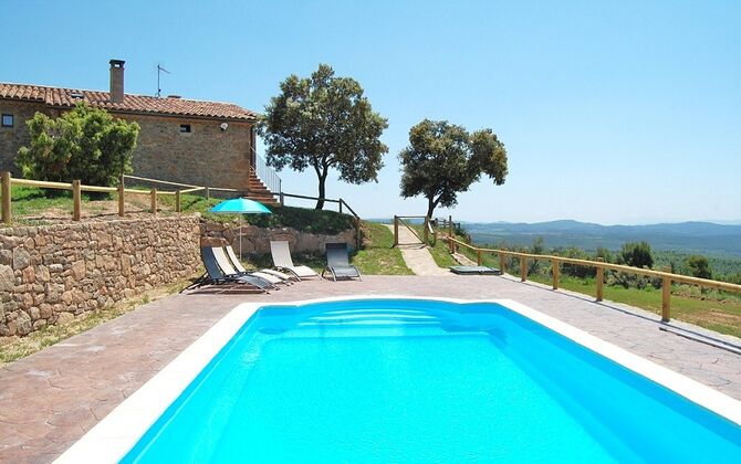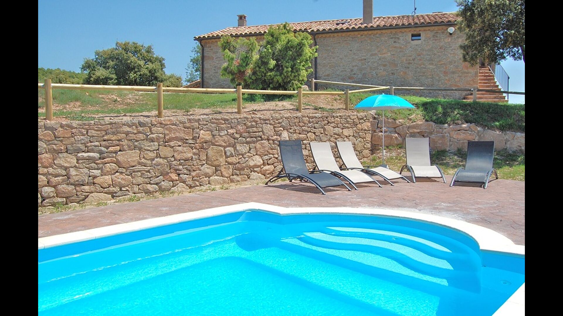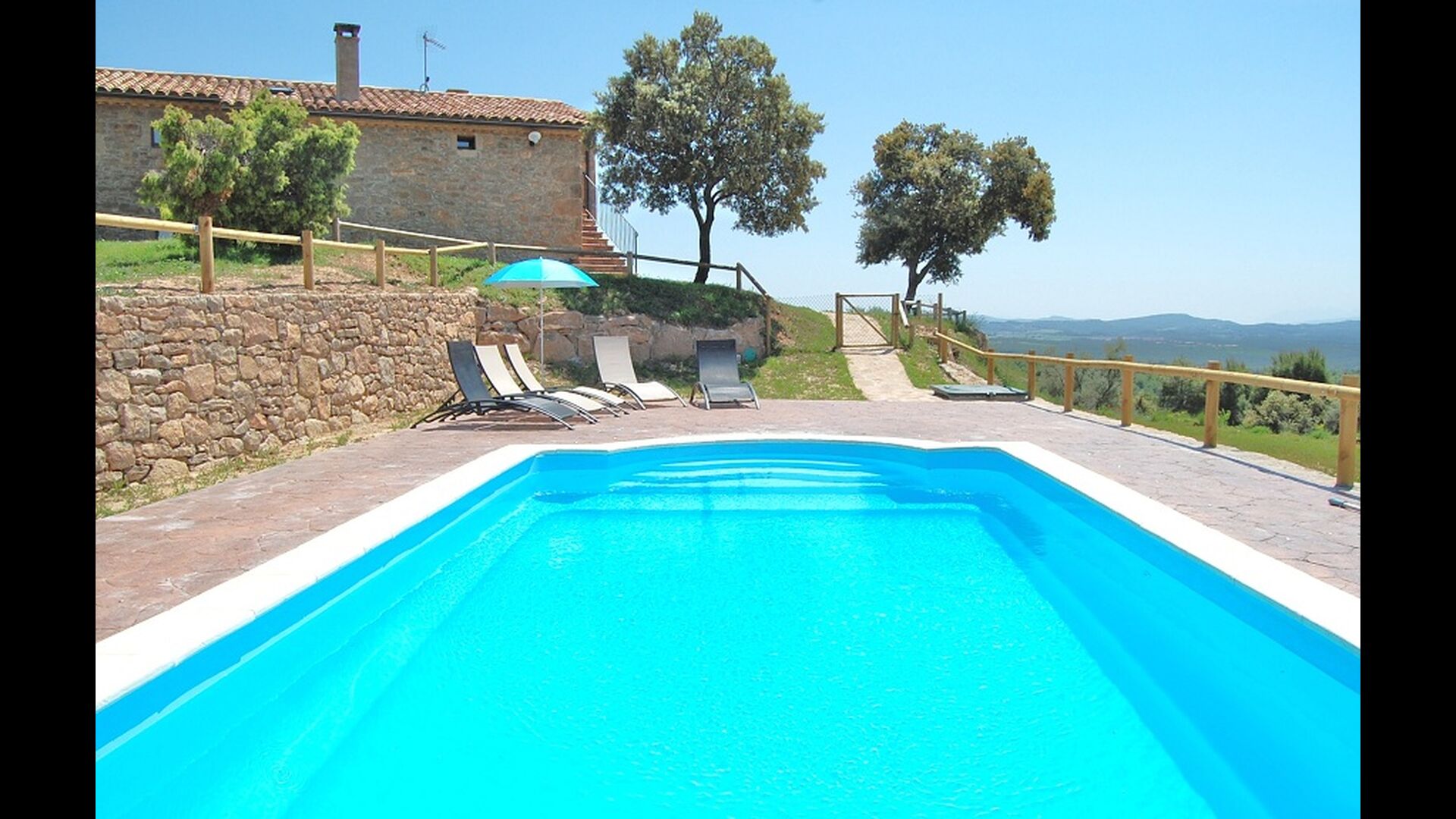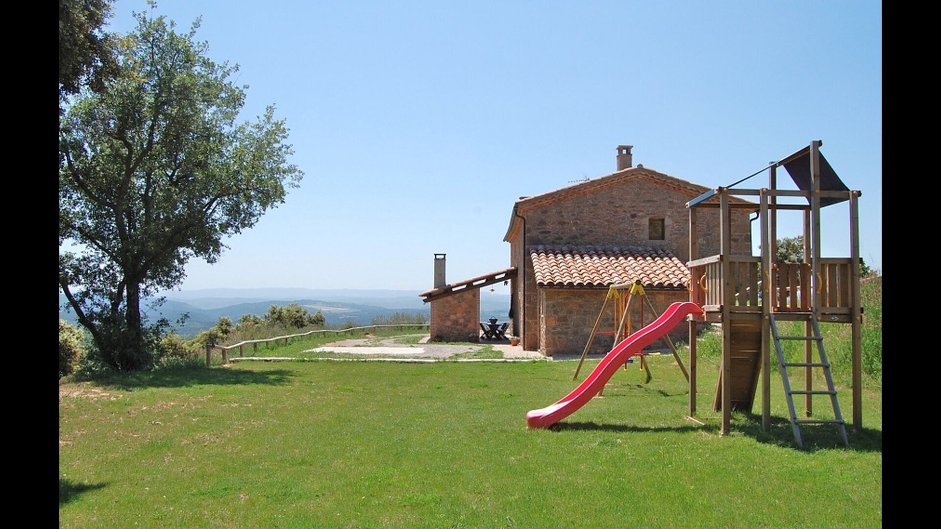 La casa está ubicada en la cima de una pequeña colina, haciendo que uno se sienta, que desde el jardín, casi puede ver el mundo entero y la paz aquí es perfecta para unas vacaciones, donde desea recargarse y relajarse (cuando no está en Recorrido por la región). En la propiedad hay una gran piscina vallada (lo cual es una ventaja si viajas con niños pequeños) y un gran jardín en la parte posterior de la casa con un área de juegos y espacio para juegos de pelota. La casa tiene una zona de barbacoa cubierta, que preferirá en esos días calurosos de verano o en las largas noches de verano. La terraza tiene barbacoa, cocina al aire libre y un cilindro de gas para la gran paella pan.