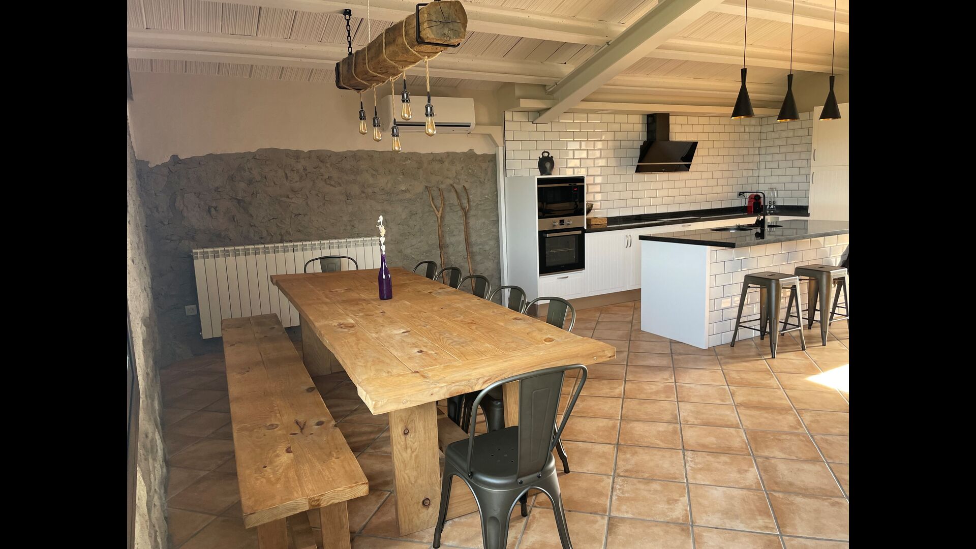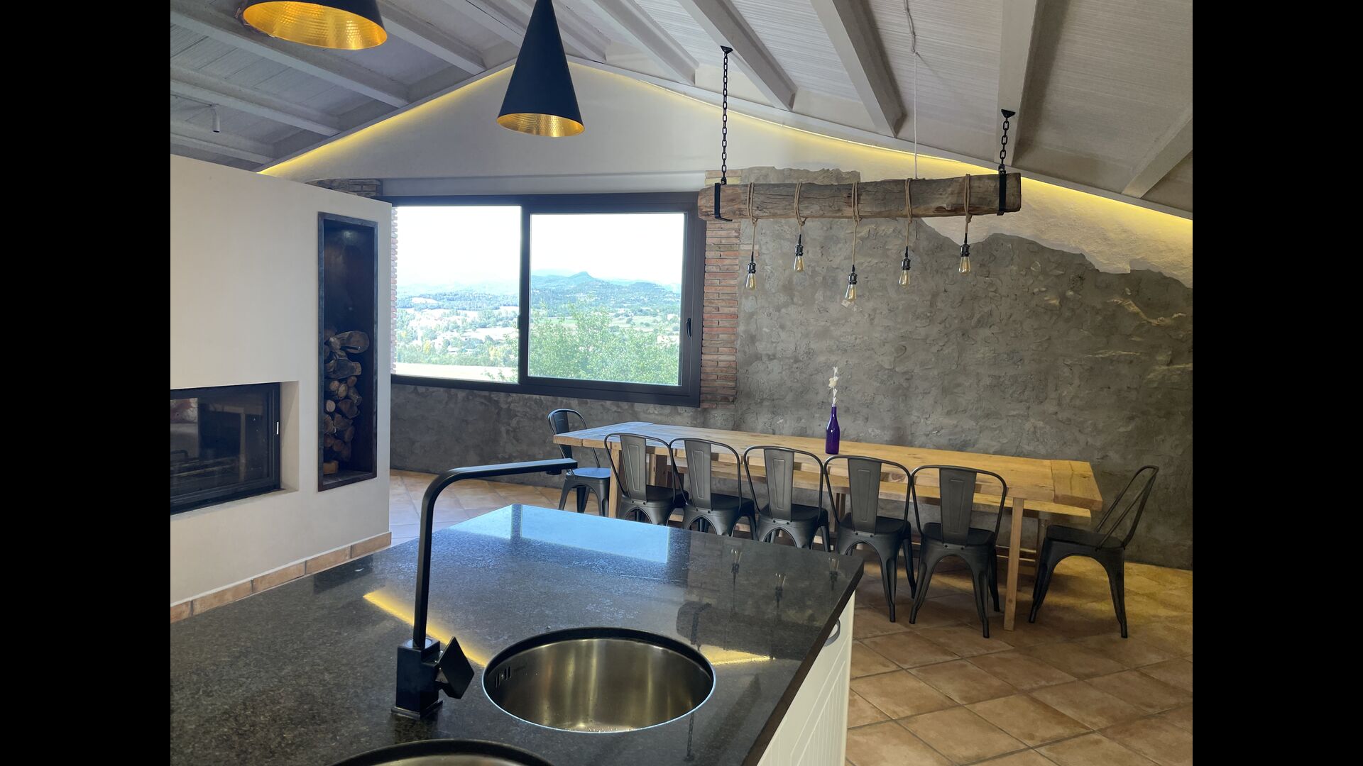 Des d'aquí hi ha accés directe al jardí i una terrassa aquells amb una taula gran per a l'exterior sopar . A l'esquerra també hi ha zona de barbacoa un anell; Podeu fer la brasa mentre gaudiu de la vista de la vall, i m & un anell; una copa de vi local.