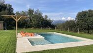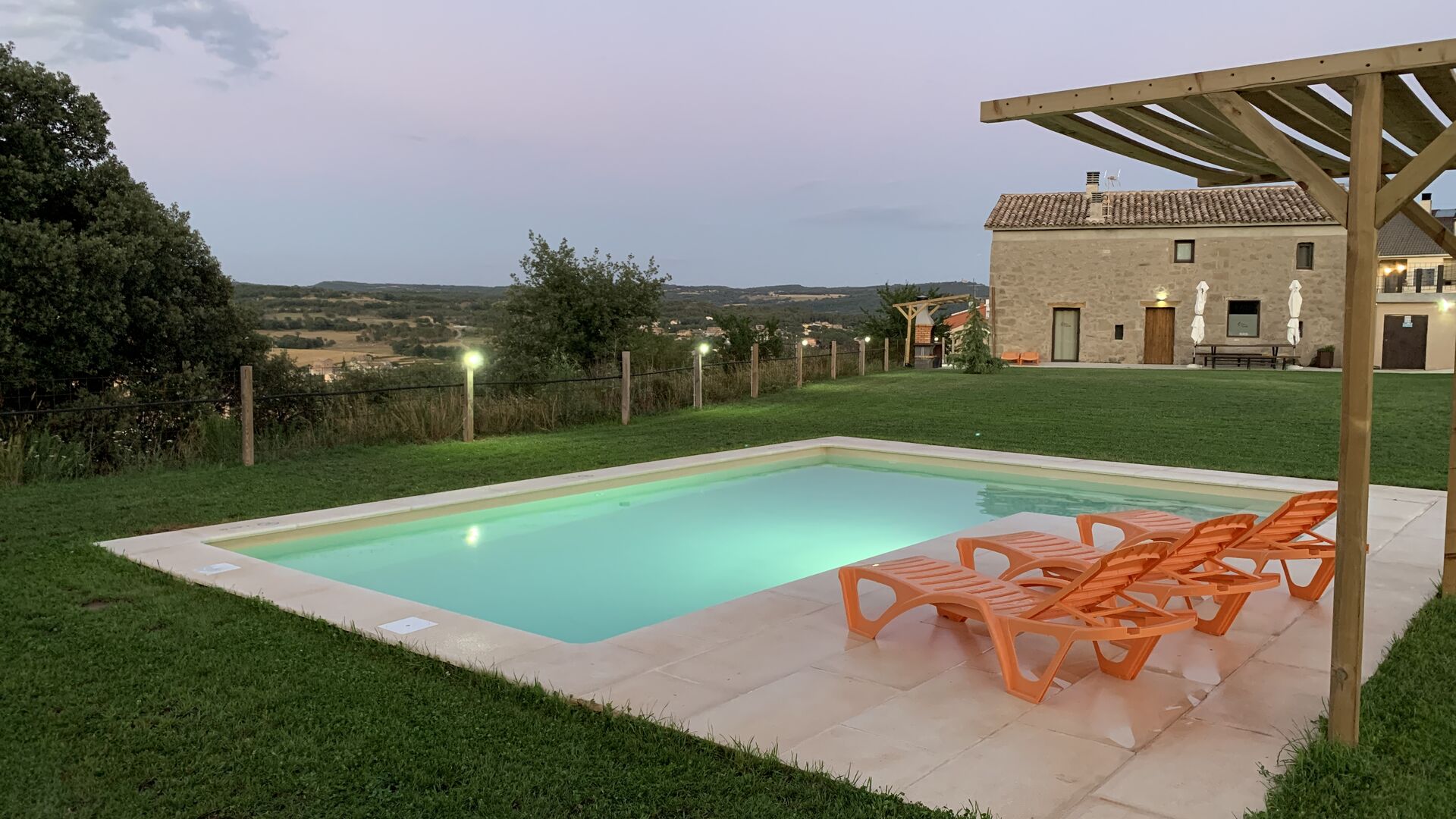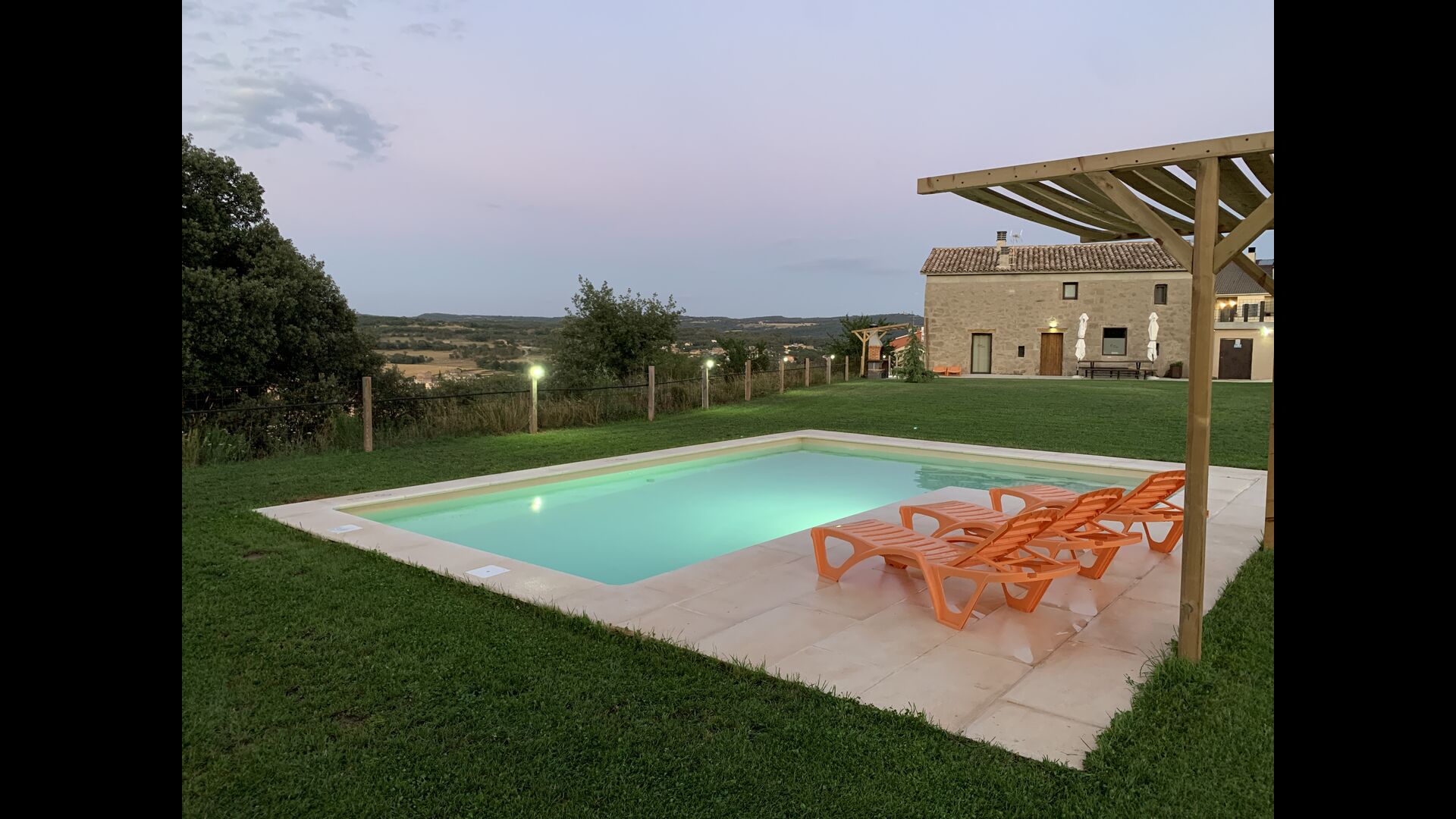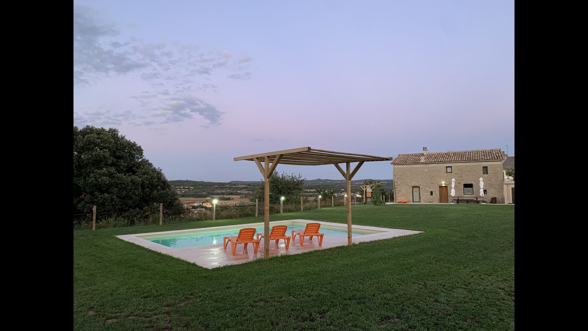 La piscina és de 8 x 4 metres i també té vistes al camp. I per als calorosos dies d'estiu, el Xavi i la Mabel han fet una coberta permanent, així que els que desitgeu una mica d'ombra teniu l'opció.També té una escala a un lateral,que la fa ideal per a nens més petits.