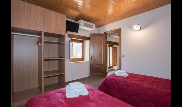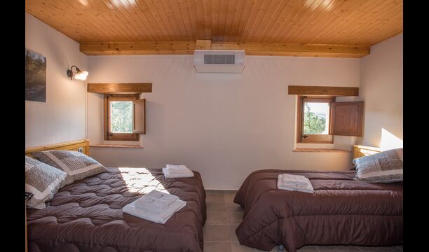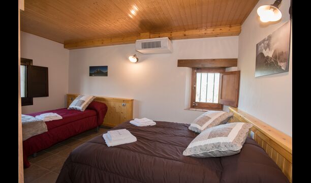 A la planta de dalt, es troben les 4 habitacions addicionals, que estan equipades per poder acollir 3 famílies ja que hi ha 2 habitacions triples i 1 habitació doble i, finalment, la quarta habitació s'ha convertit en una habitació infantil amb dues lliteres. També hi ha dos banys en aquesta planta, que en total són tres. Com que acostuma a fer una mica de calor, hi ha aire condicionat a aquesta habitació.