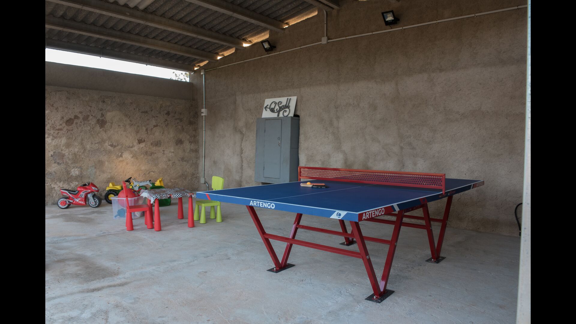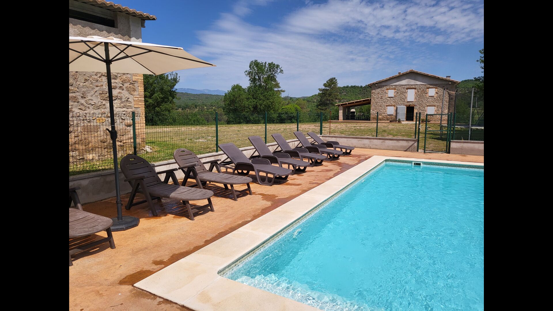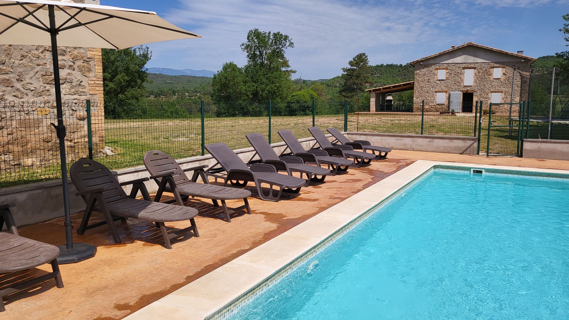 I si és un estiu sec, disposeu de la vostra piscina privada, sempre plena d'aigua, que mantindrà els nens ocupats juntament amb les nombroses activitats com tennis taula, llit elàstic, porteria de futbol i sorral, i us donarà una bona estona. merescut descans a l'ombra o al sol com preferiu amb una beguda freda de la nevera.