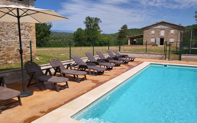 Allotja't en un entorn preciós sense veïns a la clàssica casa catalana de pedra calcària per a 12+2 persones. Gaudeix de les vistes de les muntanyes boscoses, o fes una petita caminada fins a la riera: el petit riu s'obre camí pel paisatge just a sota de la casa i, depenent del temps, fins i tot t'ofereix unes petites piscines precioses per nedar i també una petita piscina. cascada.
