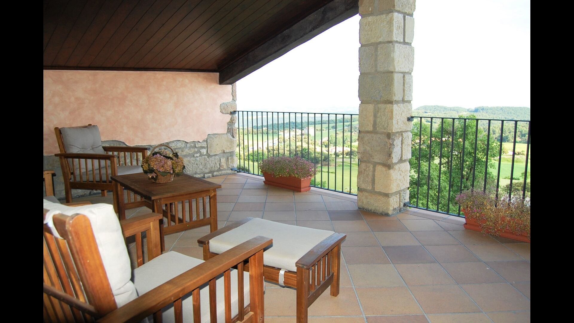 - SEGON PIS: sala d´estar, 4 habitacions amb bany privat, i eixida amb butaques des d'on es pot gaudir d'unes excel.lents vistes panoràmiques.