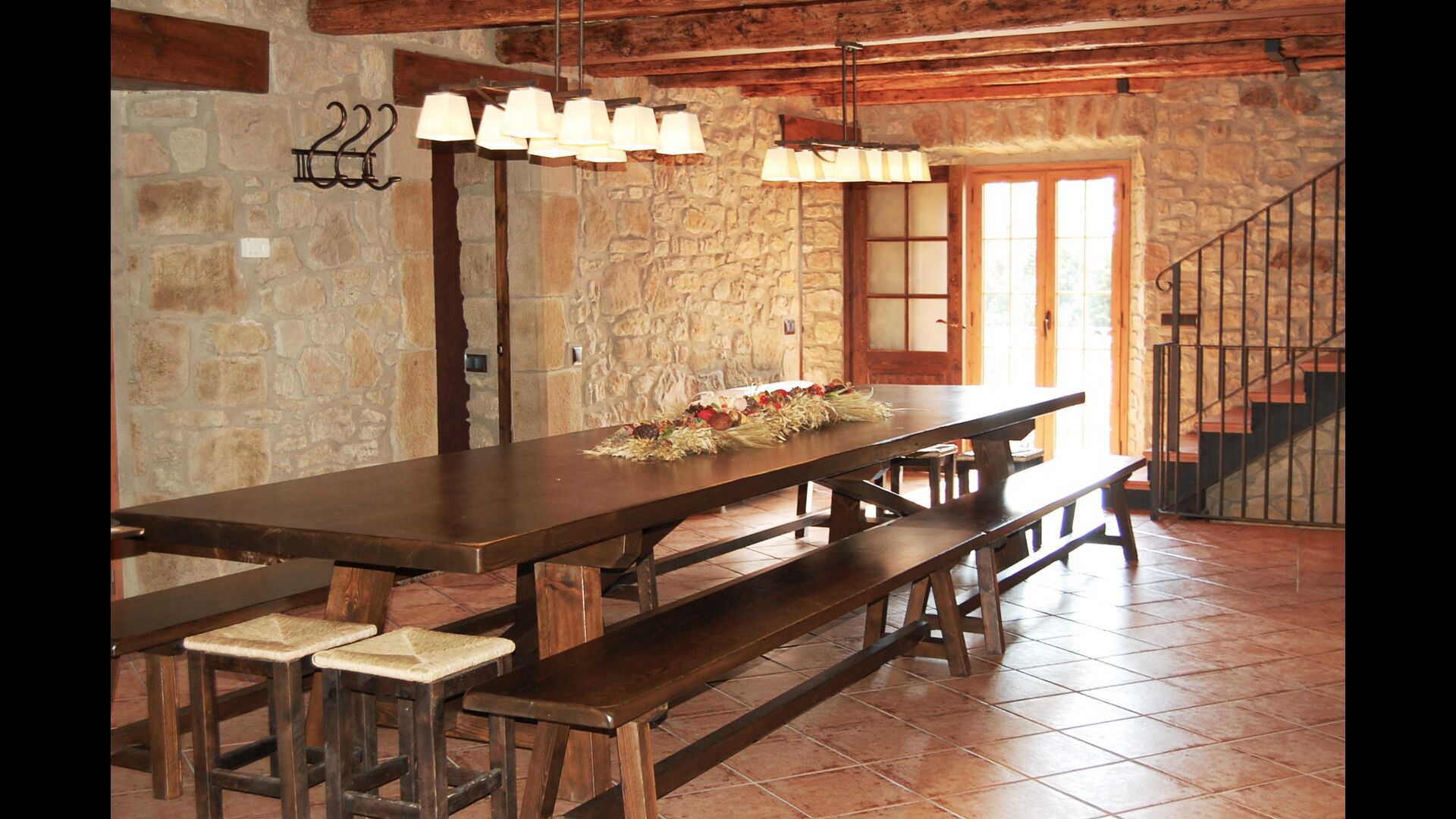- PLANTA BAIXA: sala de jocs, sala de forn de llenya, 2 habitacions amb bany privat, cuina equipada i menjador.