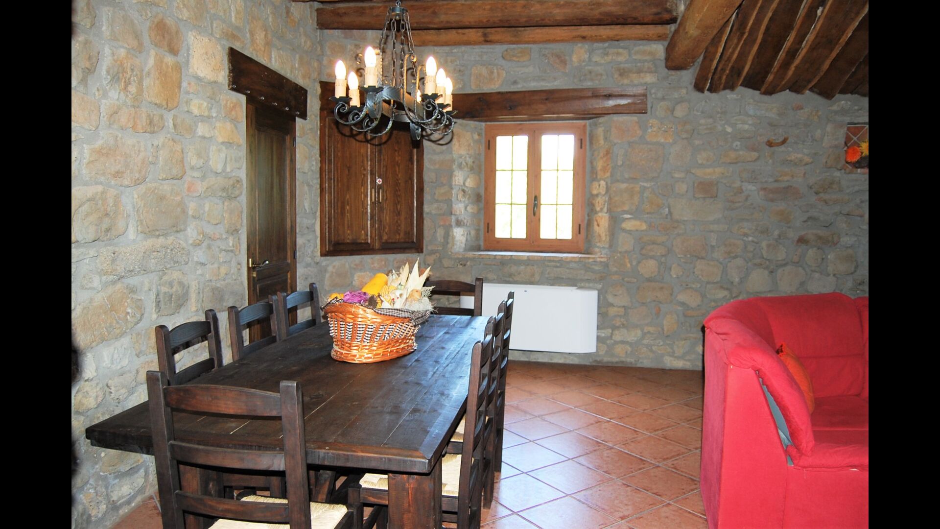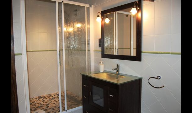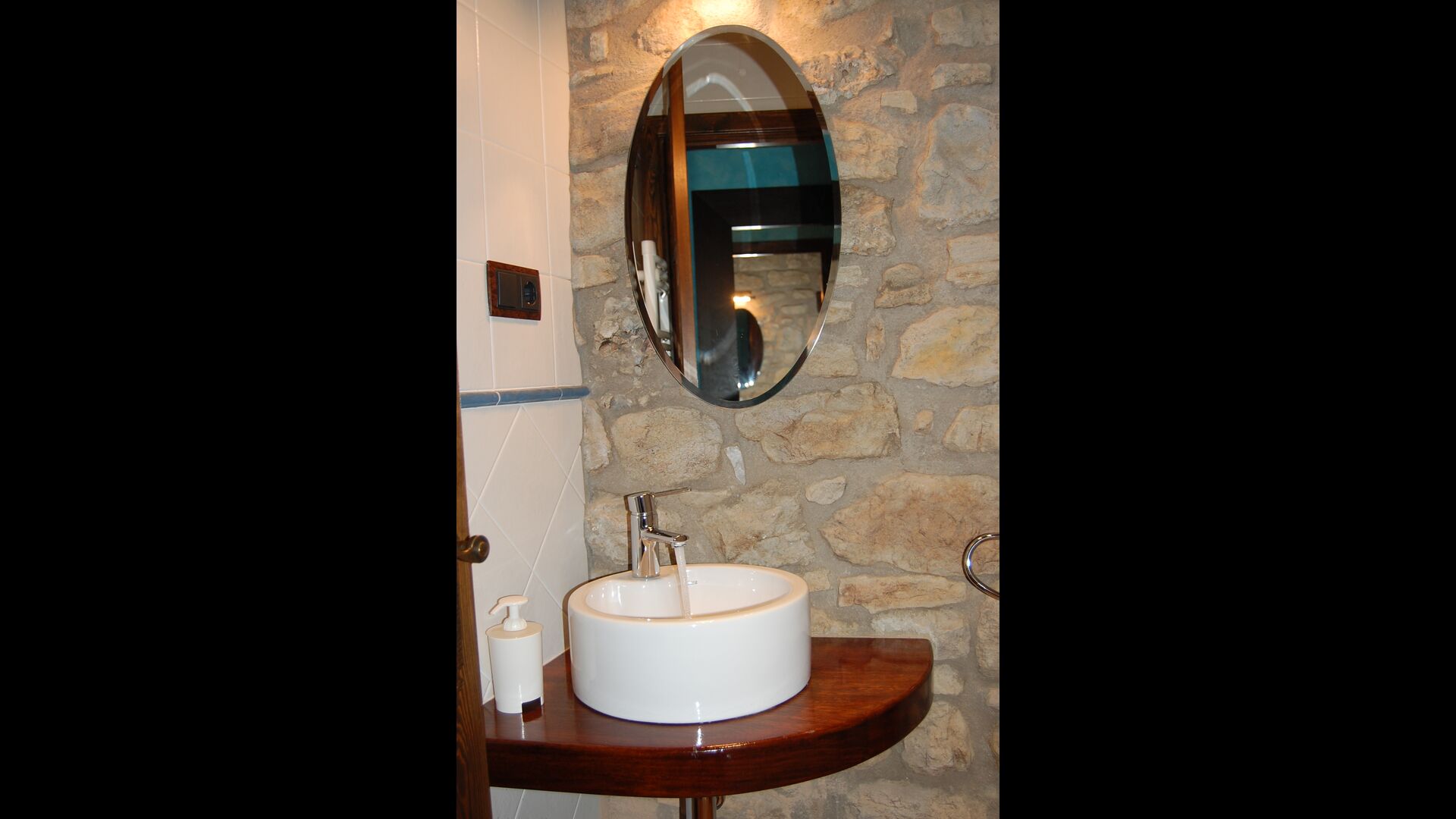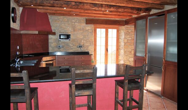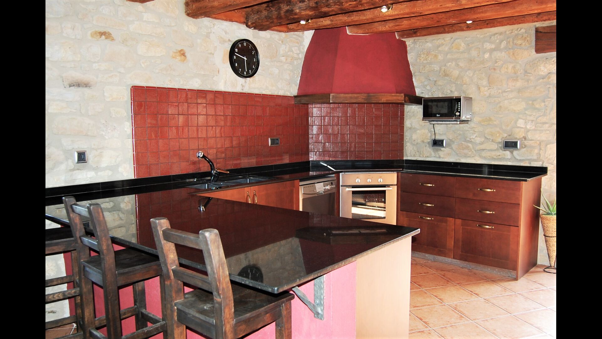 - PRIMER PIS: menjador-sala d´estar amb llar de foc, cuina equipada amb els electrodomèstics i utensilis necessaris (placa d’inducció, nevera, congelador, forn, microones, torradora, cafetera, etc.), bany comú, 2 habitacions amb bany privat, eixida i terrats.