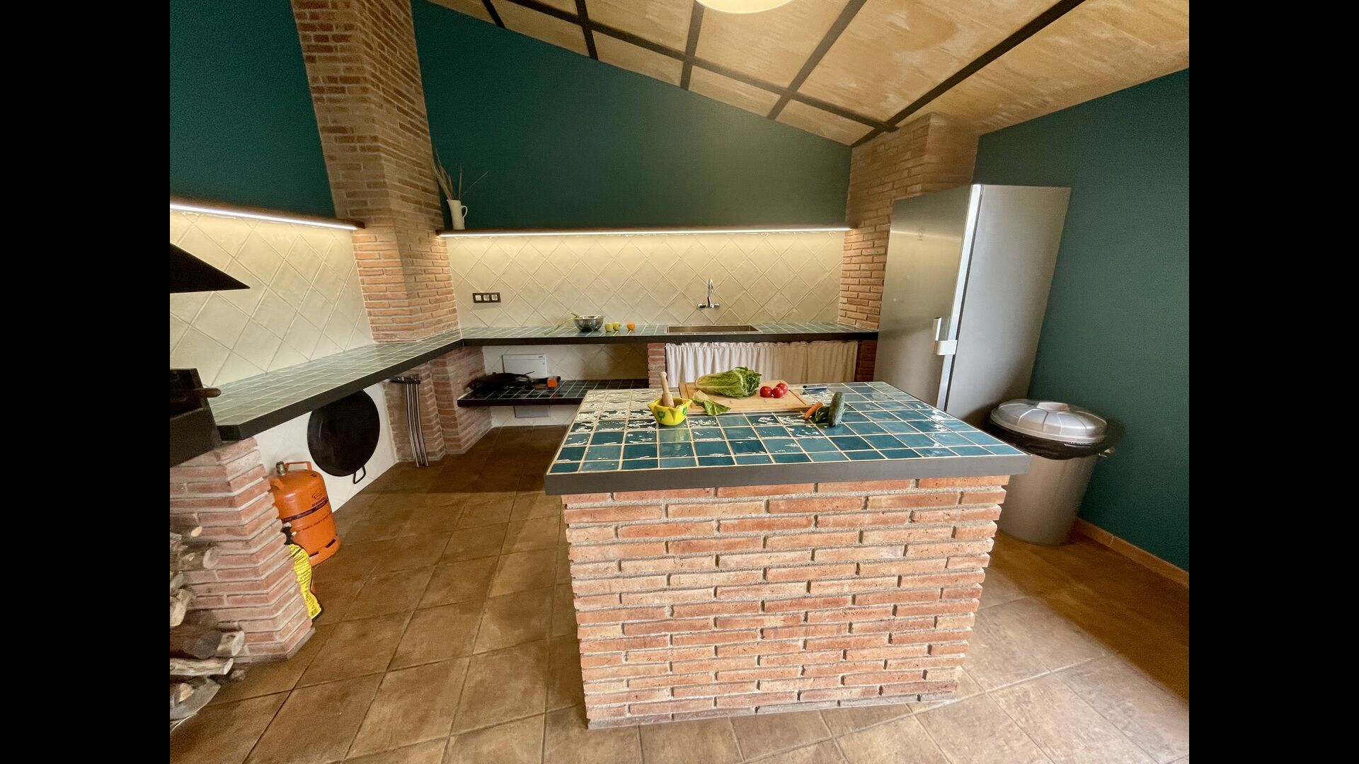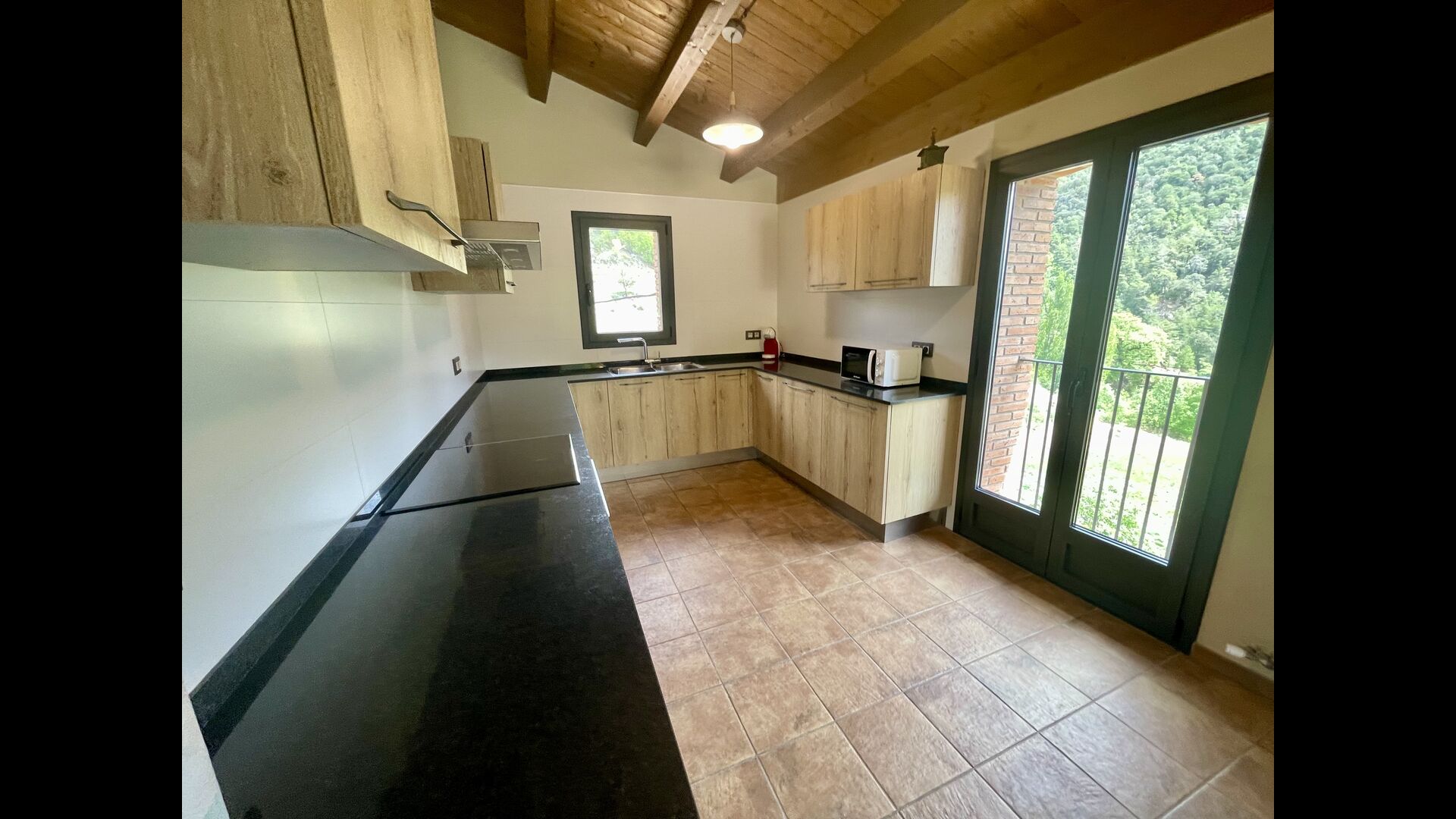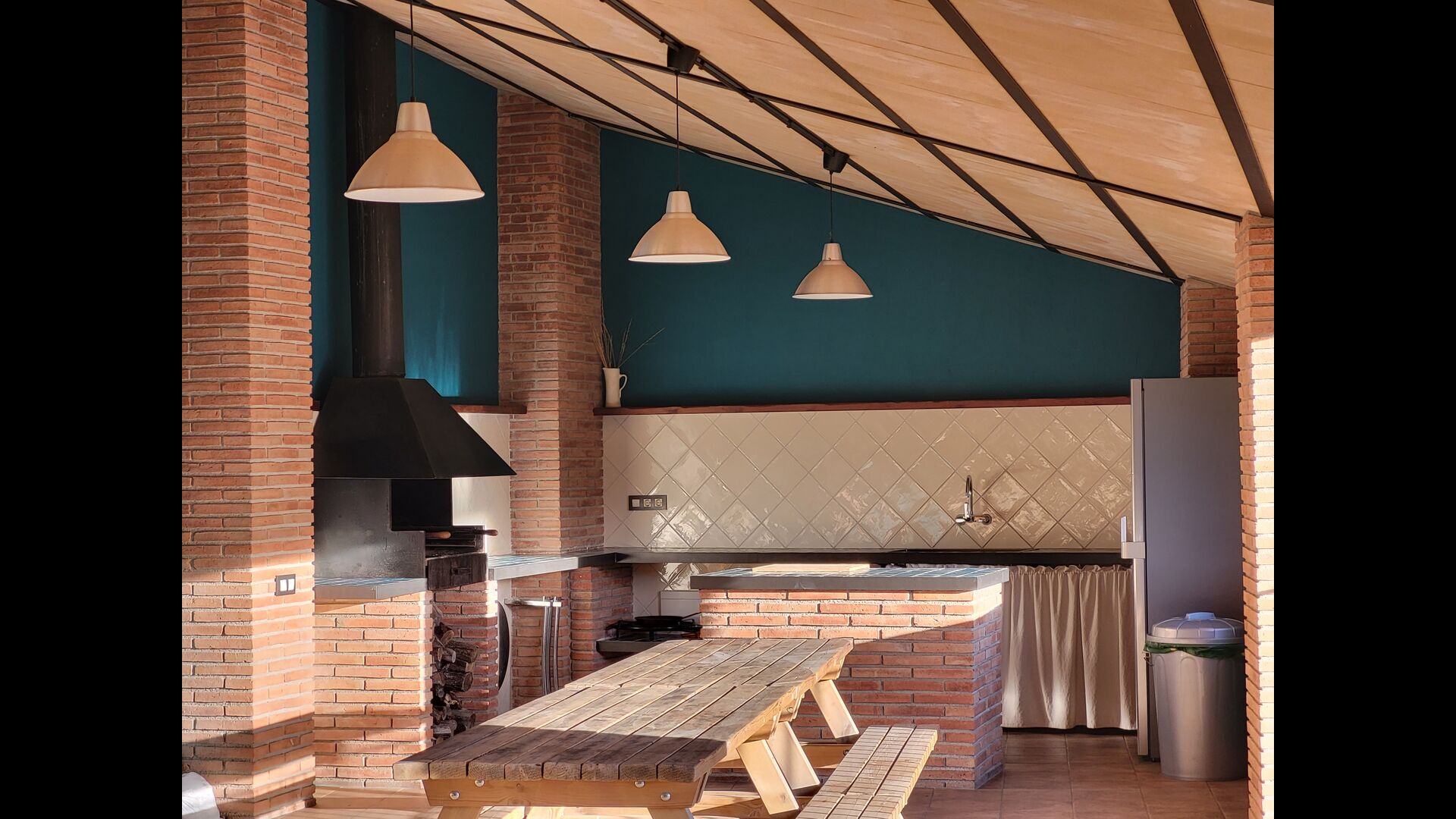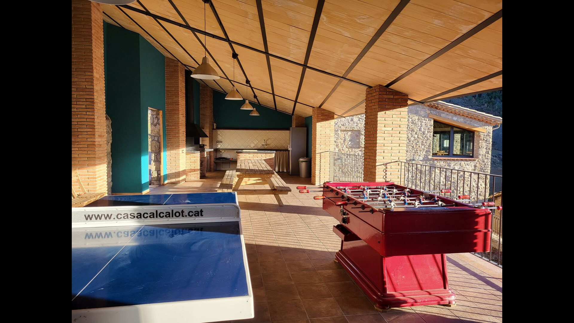 Hi ha una cuina-rebost amb tots els electrodomèstics necessaris, un preciósmenjador amb llar de foc, un acollidor saló amb un TV i 1 bany compartit. Finalment, un gran porxo, amb unagrill de barbacoa, taula amb bancs, taula de ping-pong, futbolí i una nevera completa la casa’ ;s esplendor, oferint-vos l'opció de passar-hi els vostres matins, tardes o vespres – per tu mateix o amb els altres.
