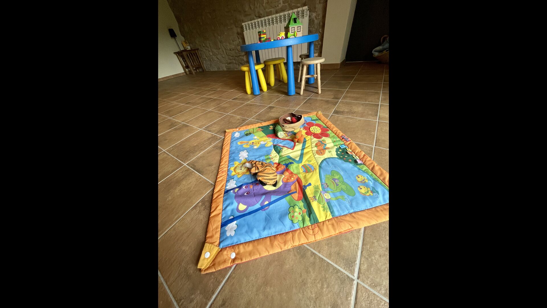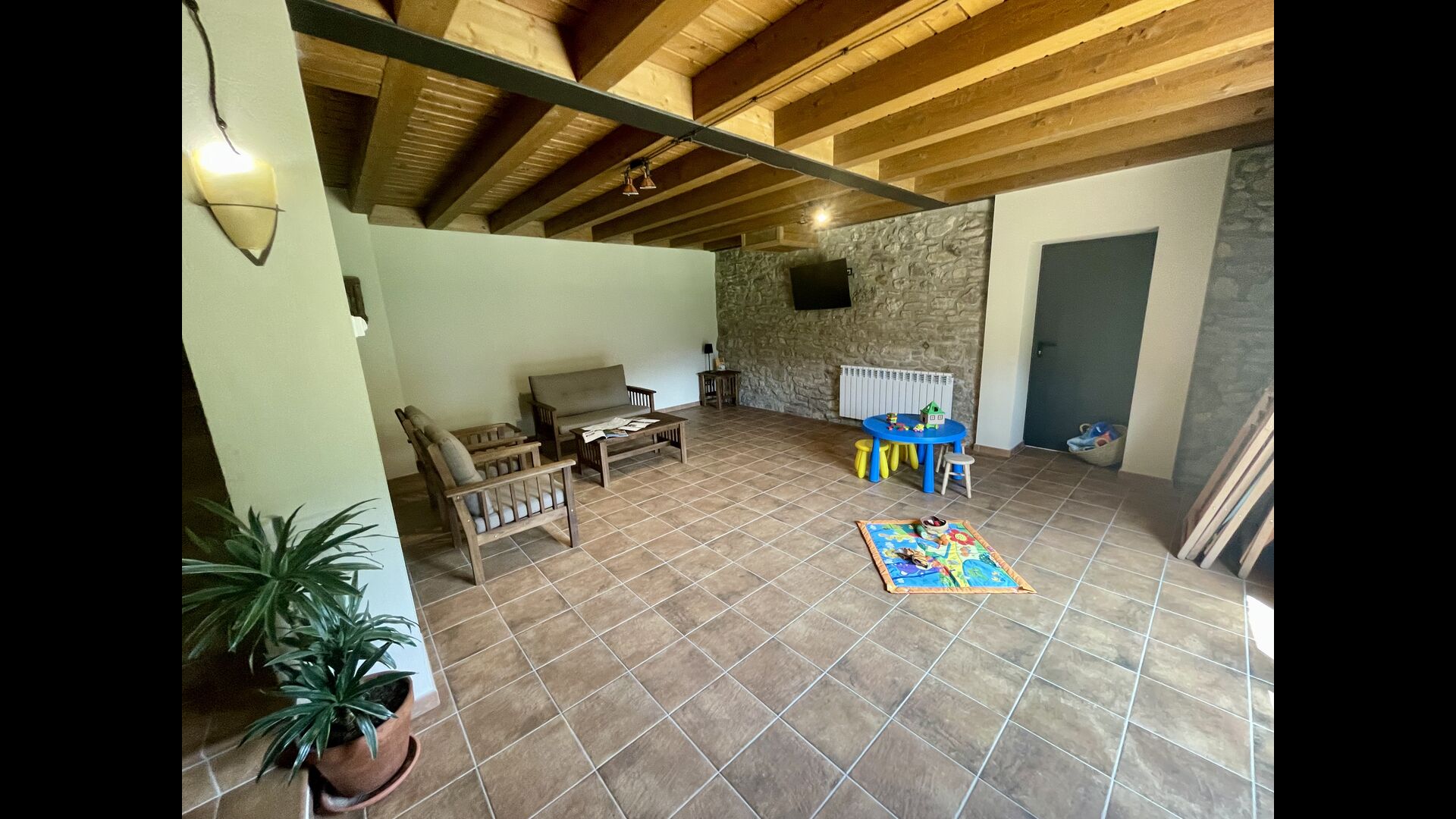 A la planta baixa hi trobareu l'entrada principal lasala d'estar amb TV, mobles infantils i1 habitació doble amb unbany.