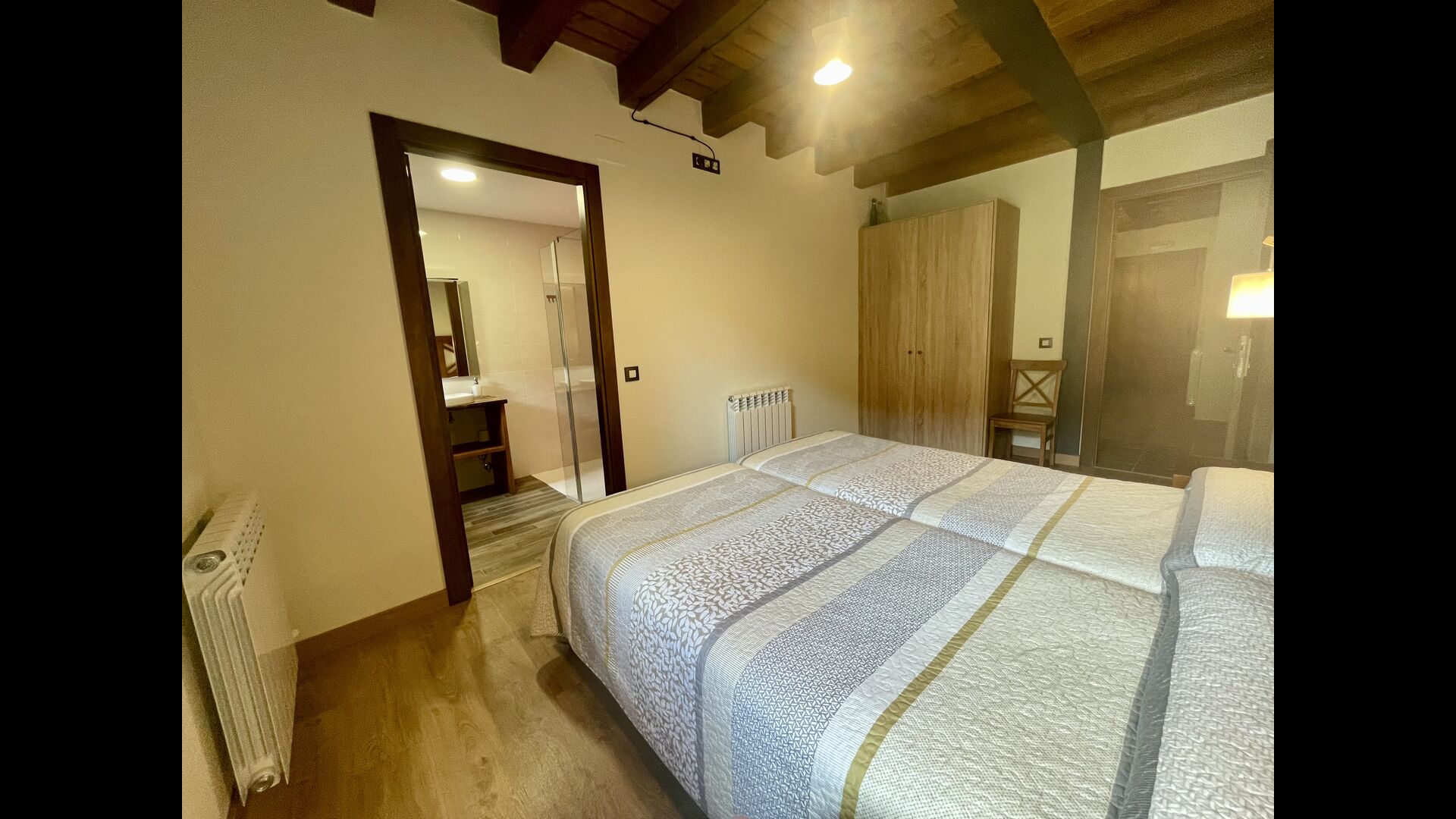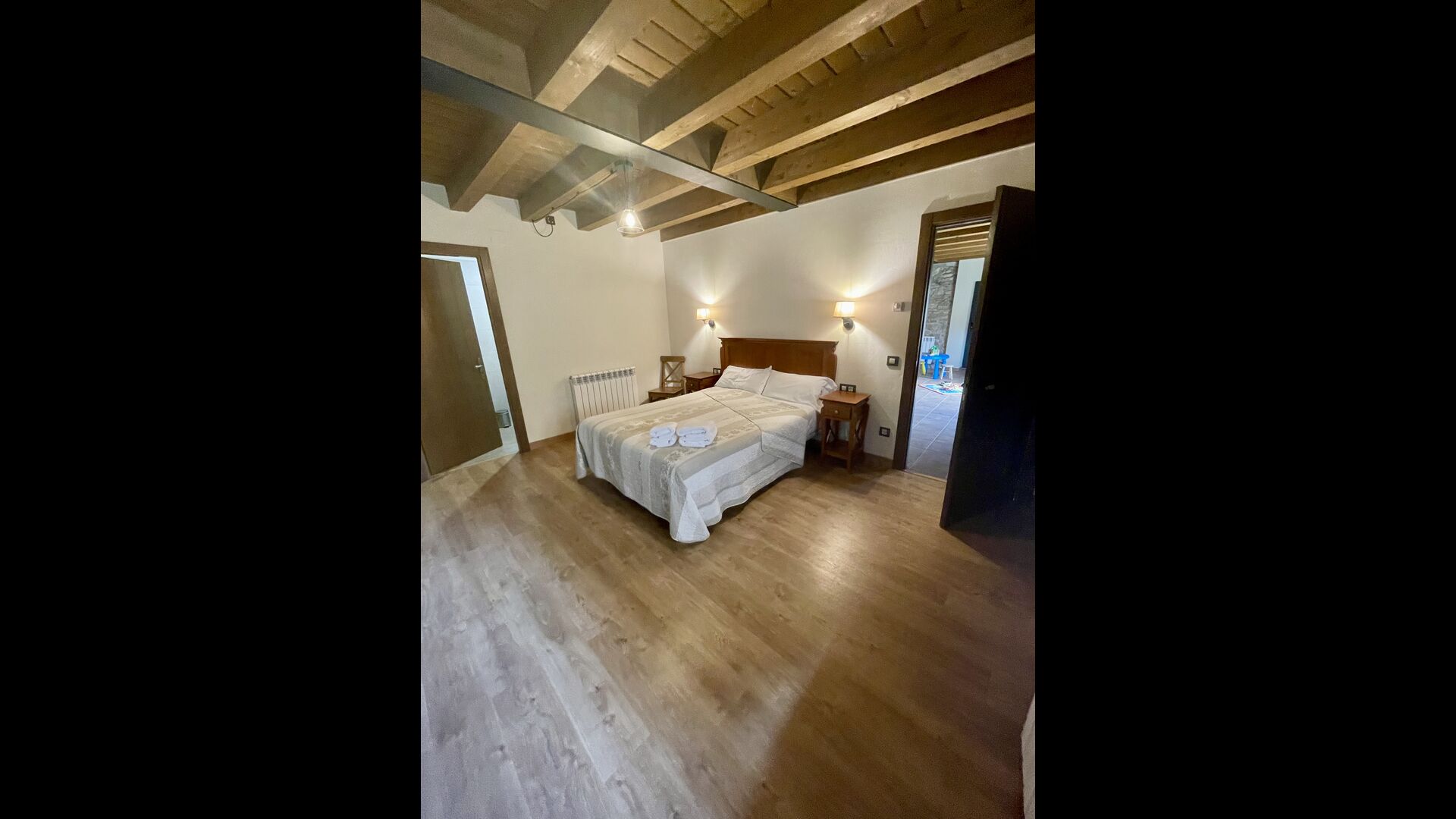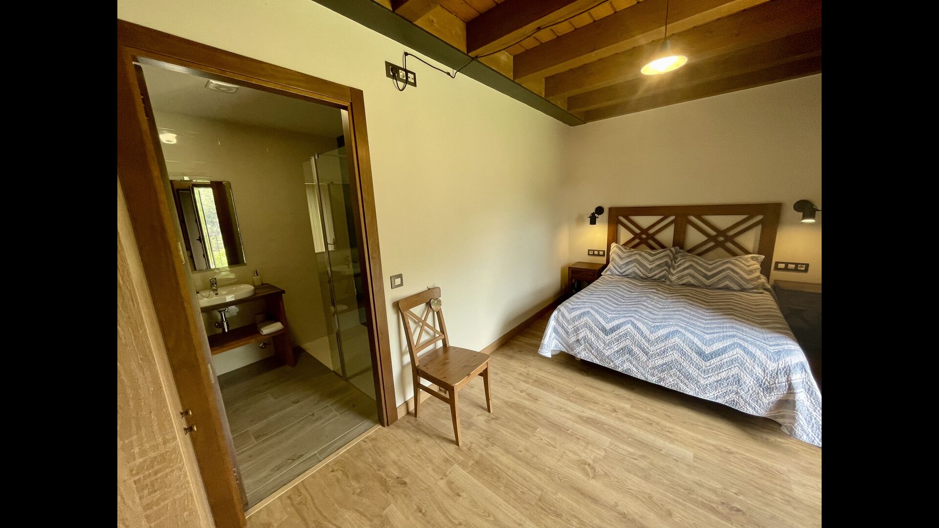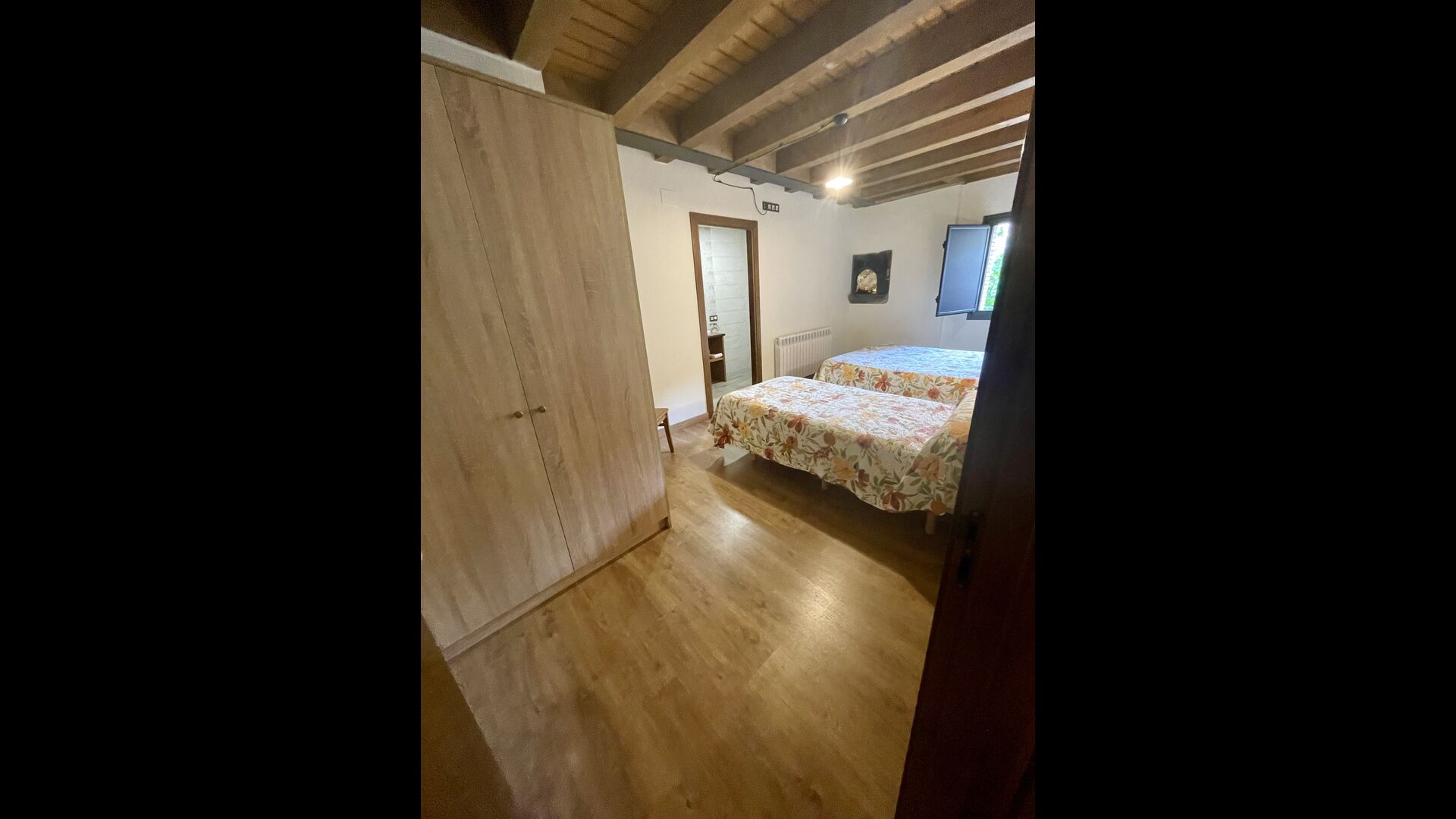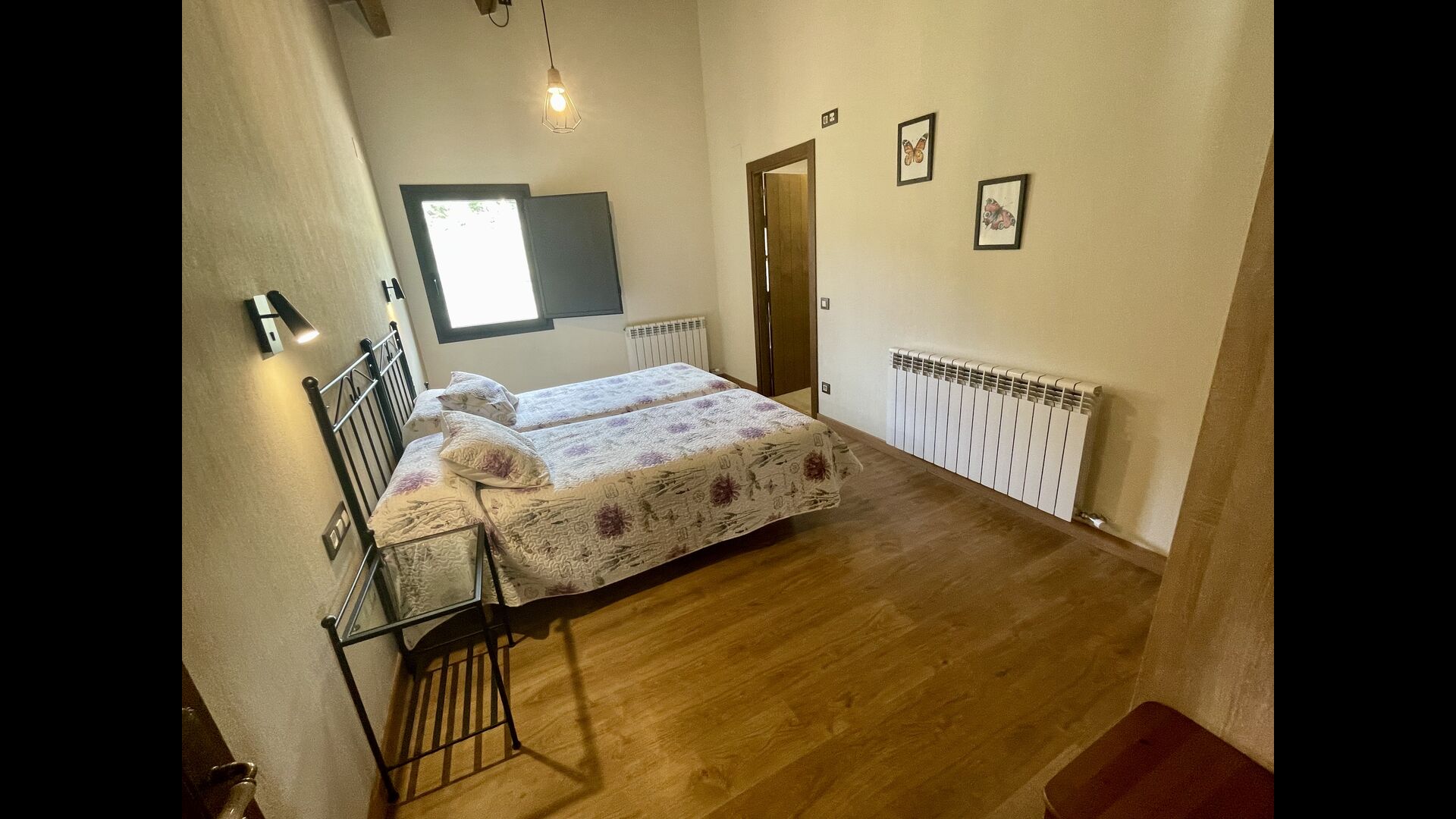 A la primera planta hi trobareu2 habitacions dobles amb els seus respectius banys, 1 habitació triple amb el seubany, i1 habitació de dos llits amb unbany.