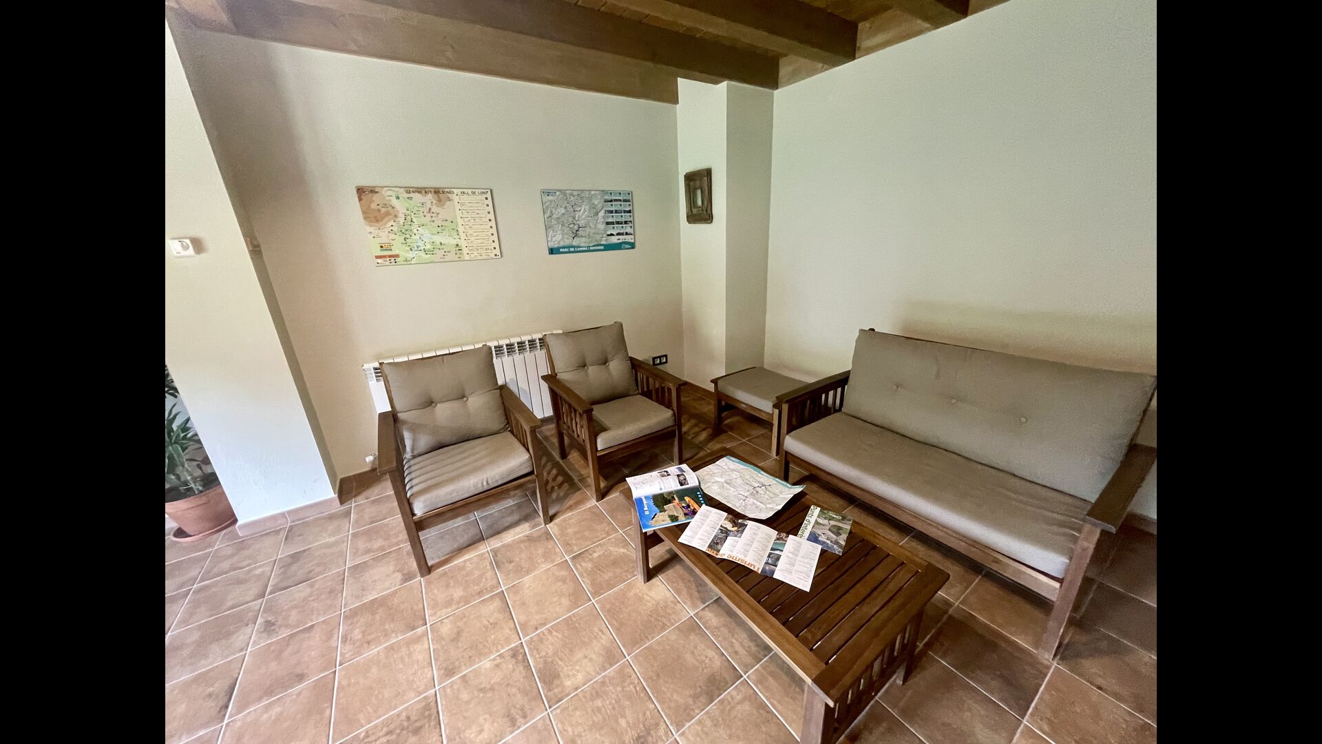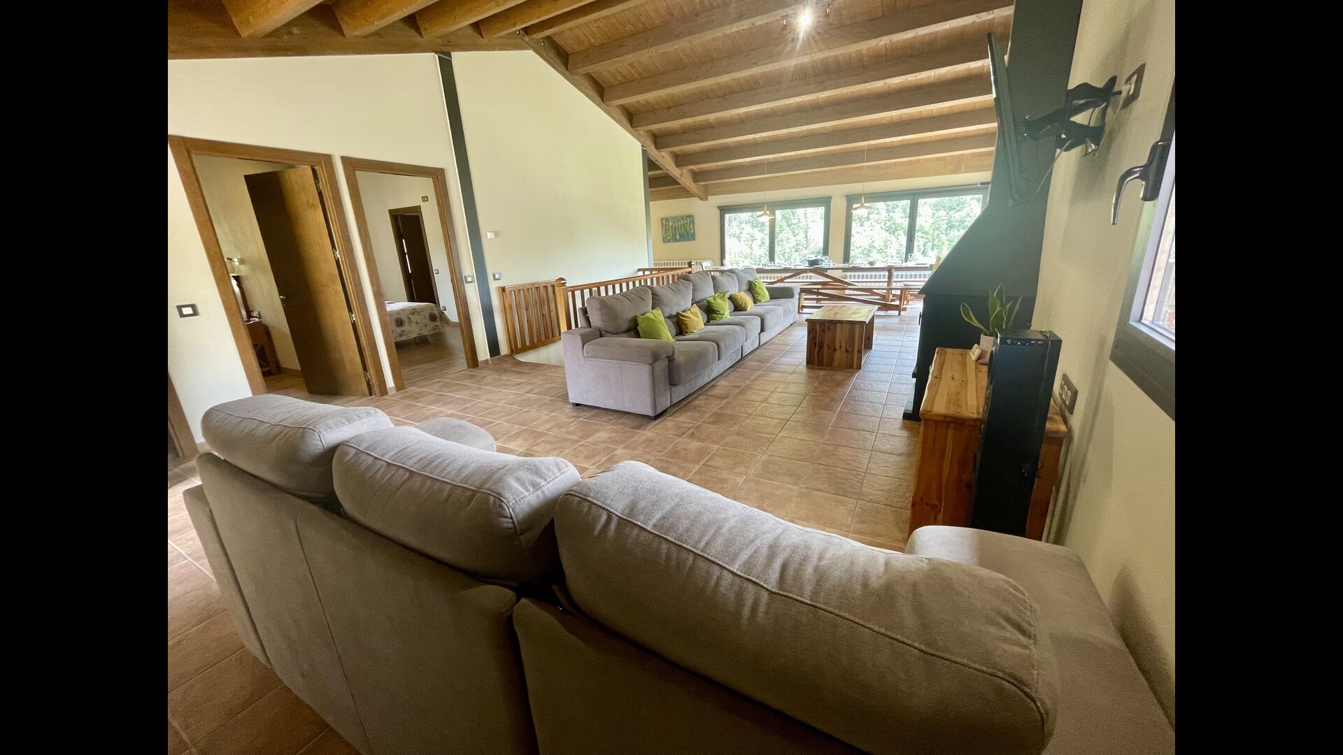 A la segona planta hi trobareu 1 habitació doble amb bany, 1 habitació amb dos llits amb el seu bany, 1 bany compartit, un menjador i una altra sala d'estar – i finalment, la cuina-rebost.