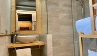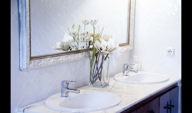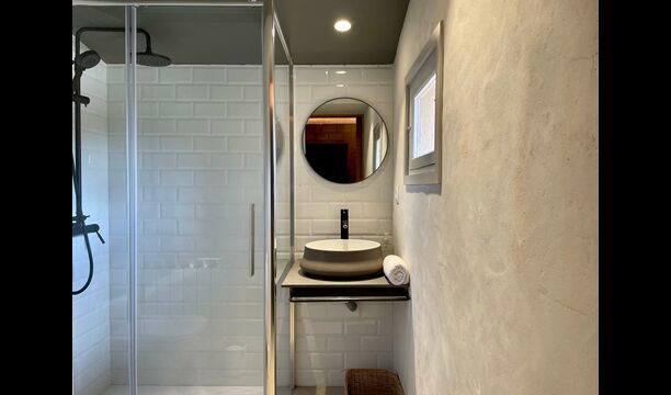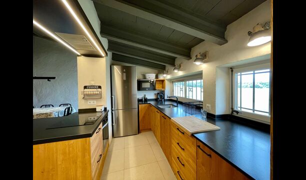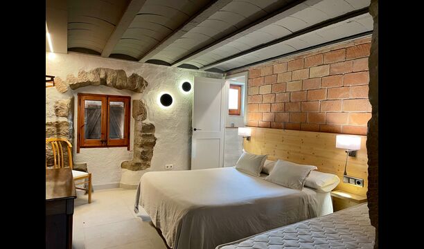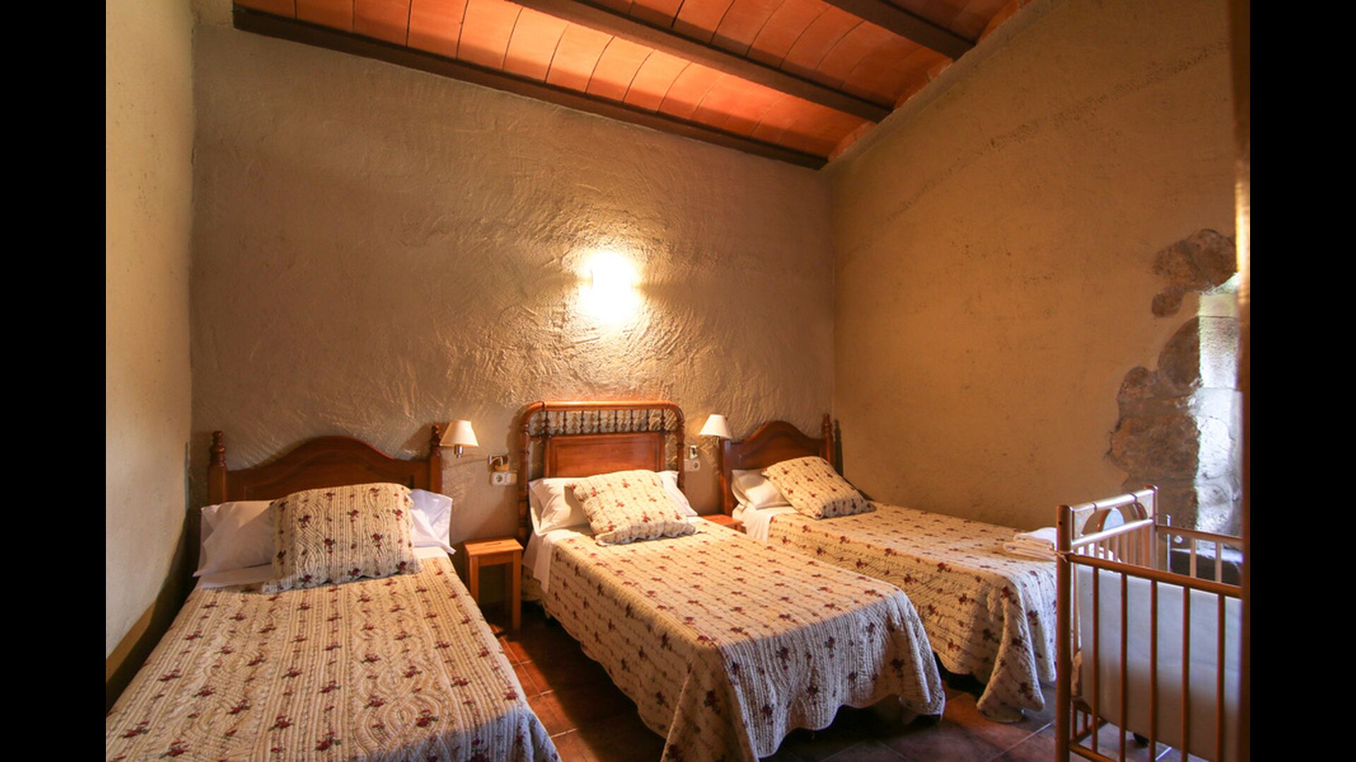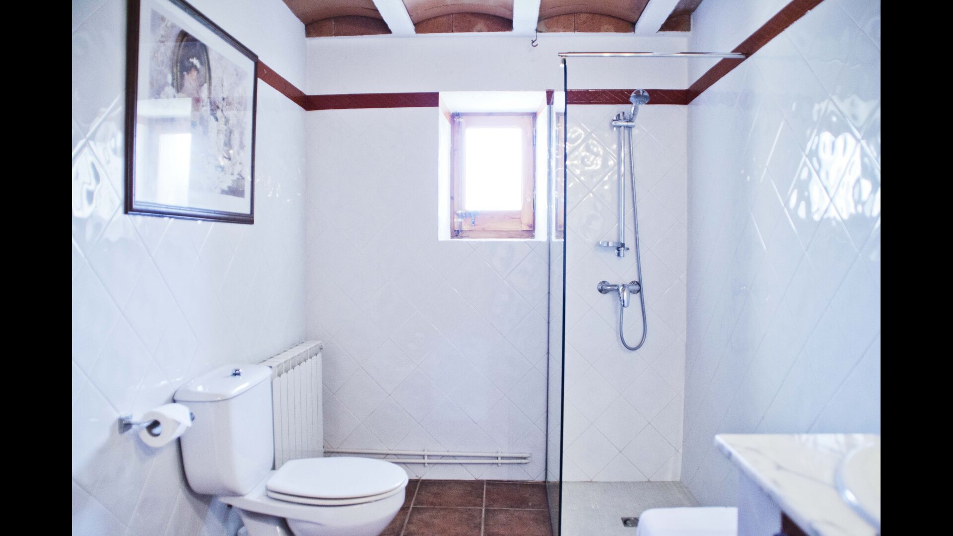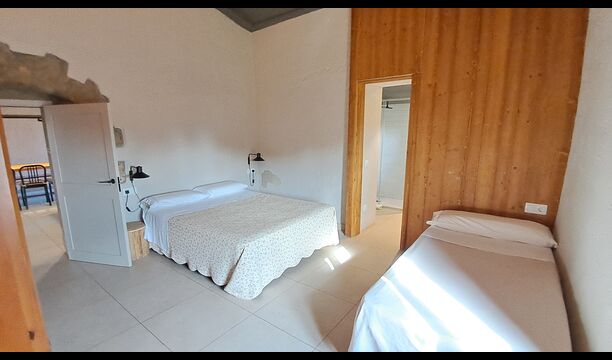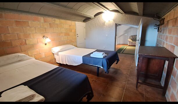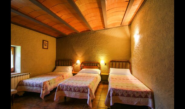 L'estil de construcció tradicional català de la casa la converteix en una casa de vacances ideal, ja que les parets mantenen la temperatura estable. Els 7 dormitoris són amplis i frescos, i els banys estan bellament decorats. Hi ha dos amb dutxa i dues amb banyera.