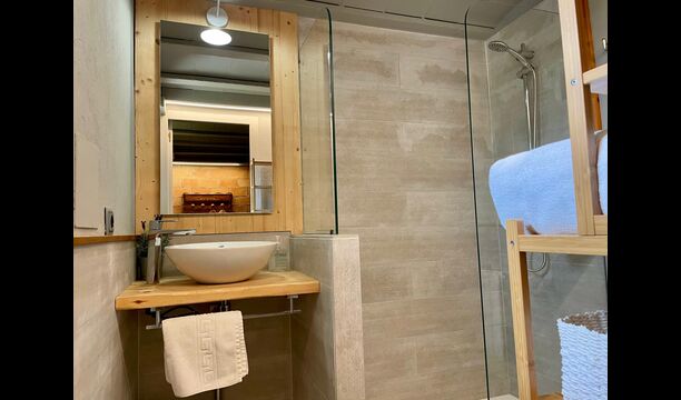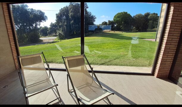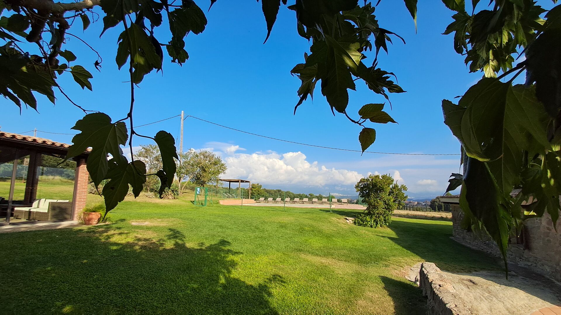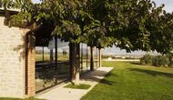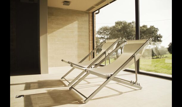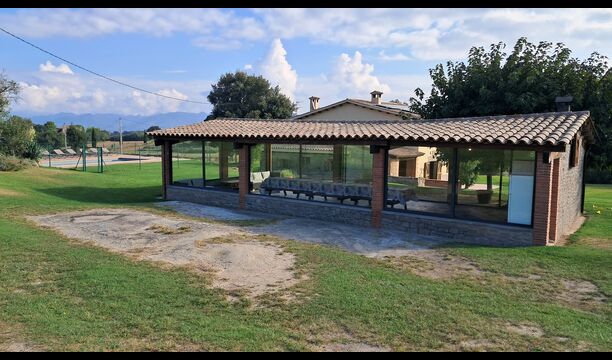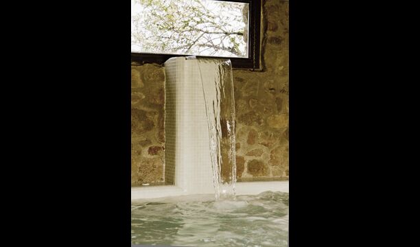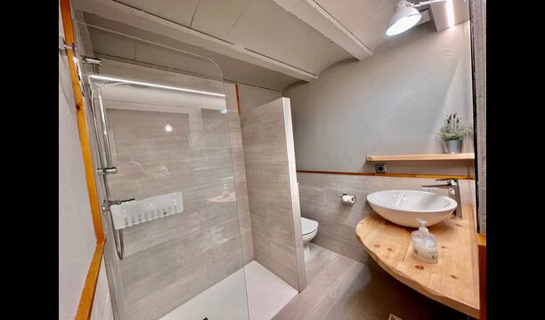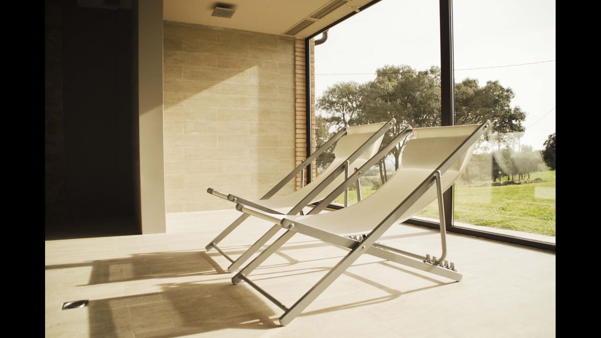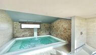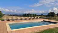 Al costat de la terrassa hi ha la piscina de 8 x 4 metres, la qual està tancada per a la protecció dels infants més petits. Des de la piscina té una vista panoràmica cap al poble i amb els Pirineus a el fons. En un edifici adjunt a la casa, ara hi ha un gran spa interior, que està inclòs en el preu i també pot ser utilitzat per nens acompanyats per adults.