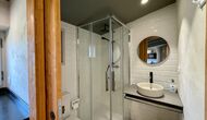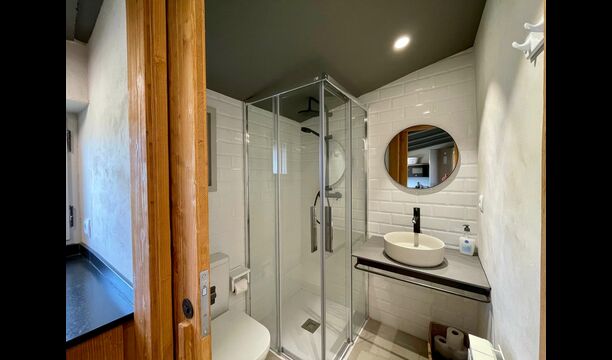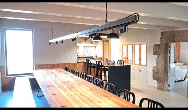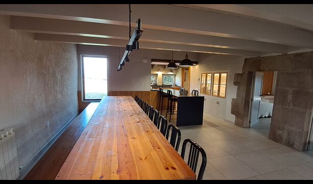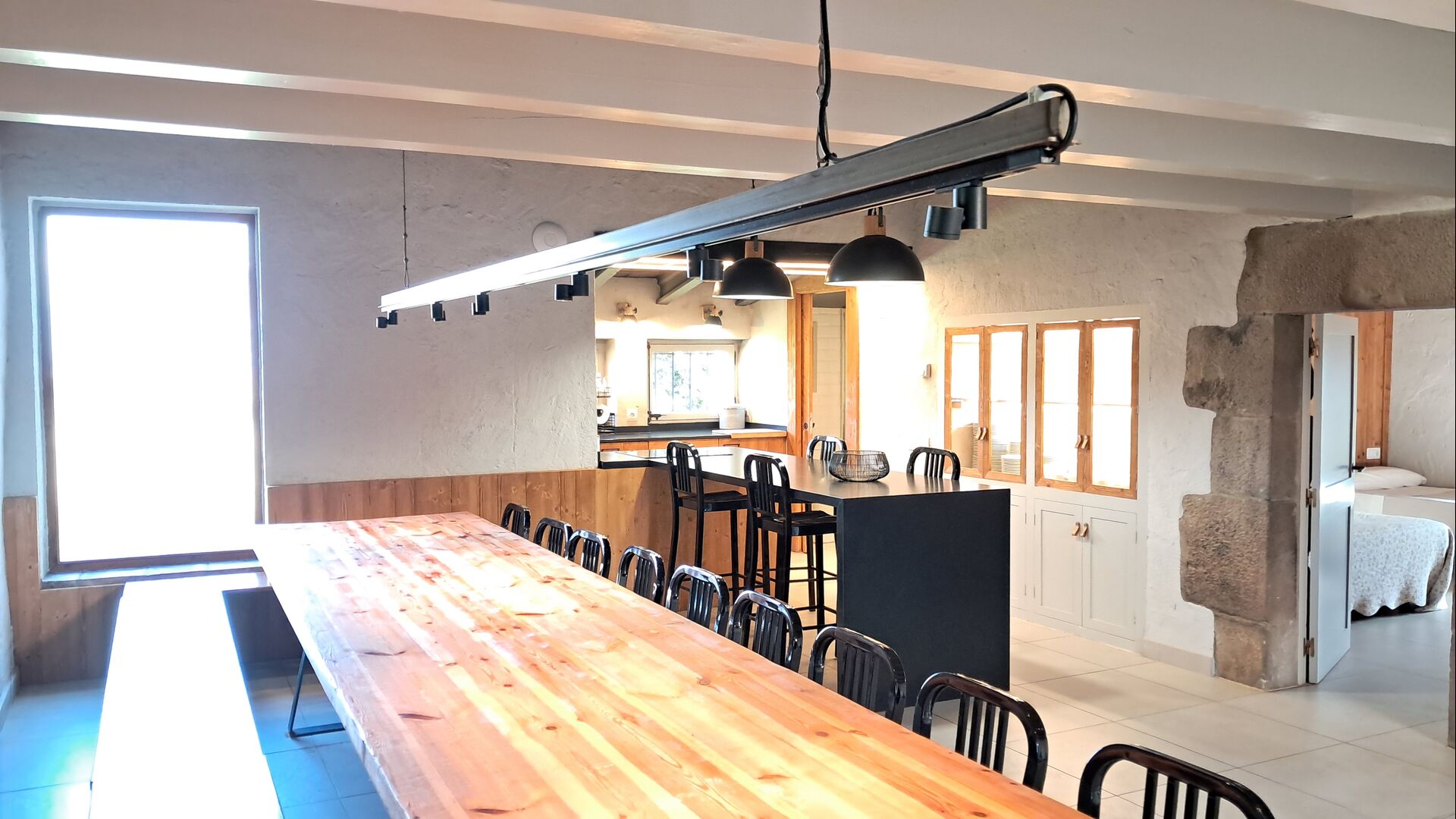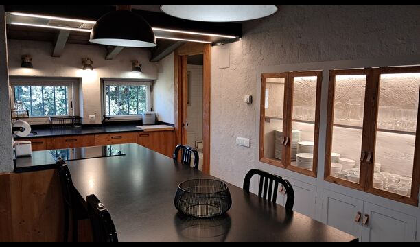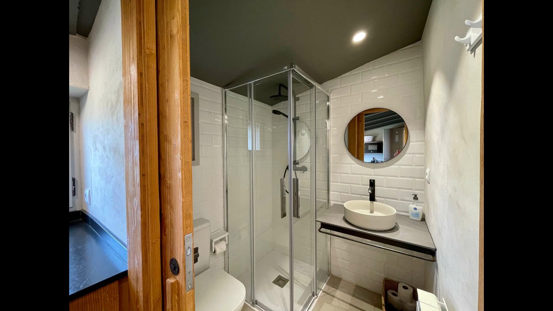 La casa té 3 pisos. La planta baixa té un acollidor saló amb sofàs. 2 habitacions dobles, 1 habitació triple amb tres llits individuals i 1 habitació doble amb dos llits individuals. Aquí també hi ha 2 banys, i un lavabo que va seguit d'l'accés a jacuzzi climatitzat. A la primera planta hi ha 3 habitacions dobles amb llit doble, dues d'elles amb un llit individual a l'habitació i 3 banys. Aquí també trobareu una cuina i una altra sala comuna amb llar de foc. En el segon i últim pis hi ha un altell on hi caben 5 llits extra i una petita habitació amb dos llits extra.