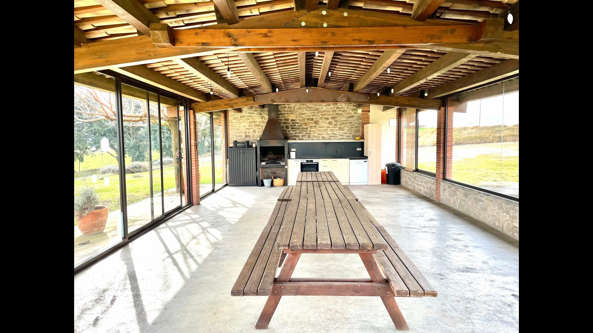 - Gran terrassa exterior coberta amb portes corredisses (barbacoa, nevera).