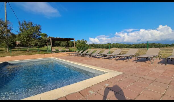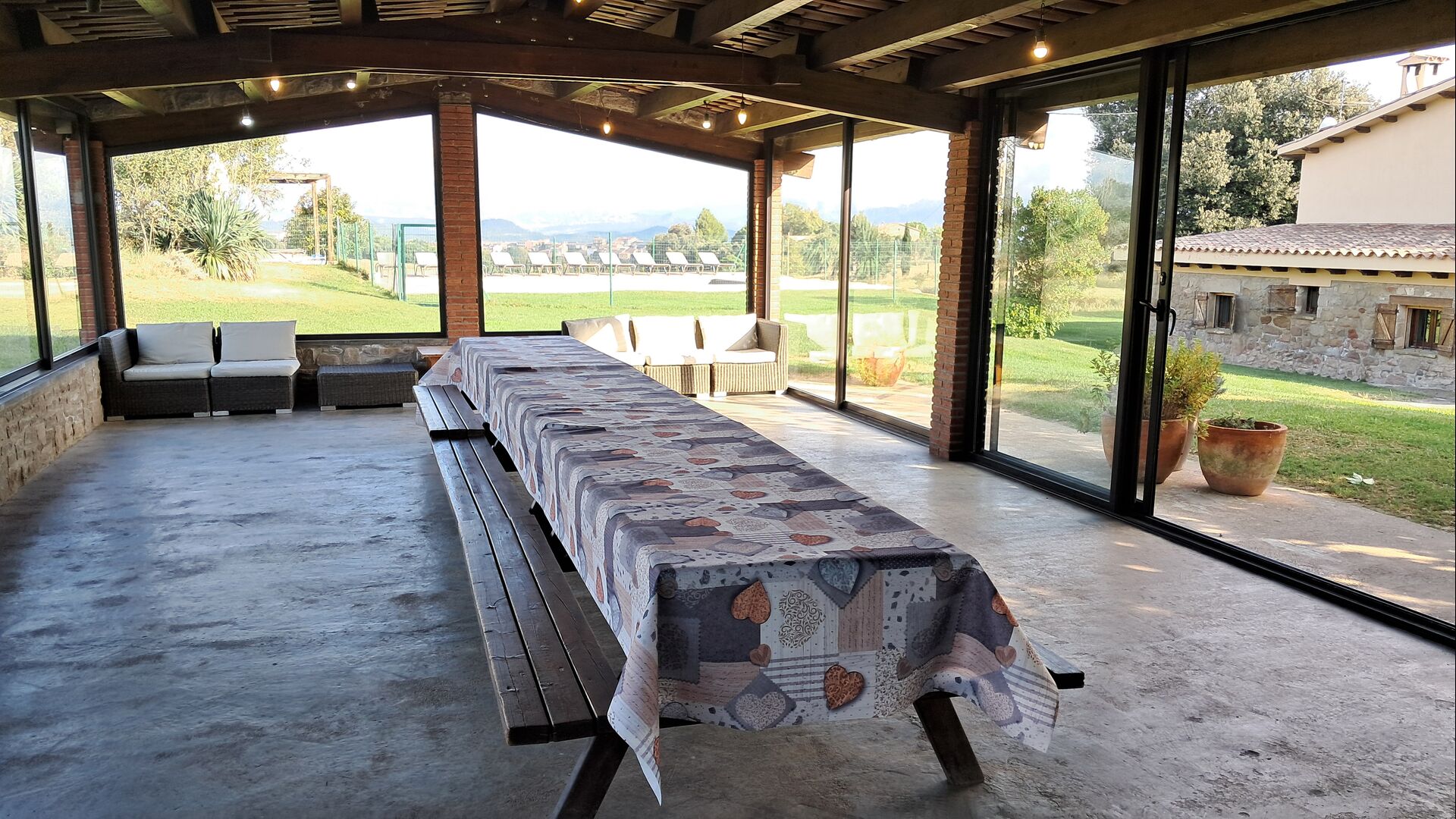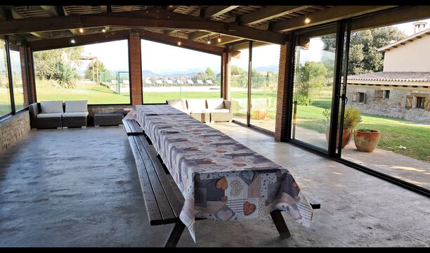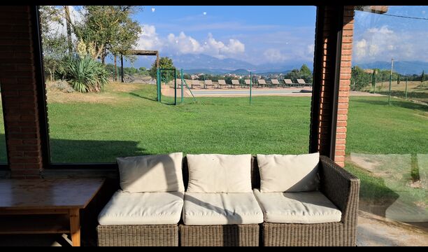 Gaudeixi de les seves vacances en un entorn bonic i tranquil amb la seva pròpia piscina, un gran jardí obert, una terrassa coberta ia poca distància d'un acollidor poble català, on els matiners poden obtenir els croissants al forn i l'adolescent pot utilitzar Internet al bar. a la plaça Al mercat setmanal es pot comprar la deliciosa cuina local, fruites i verdures.