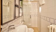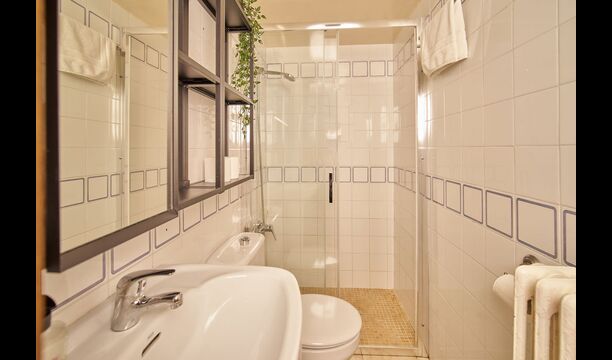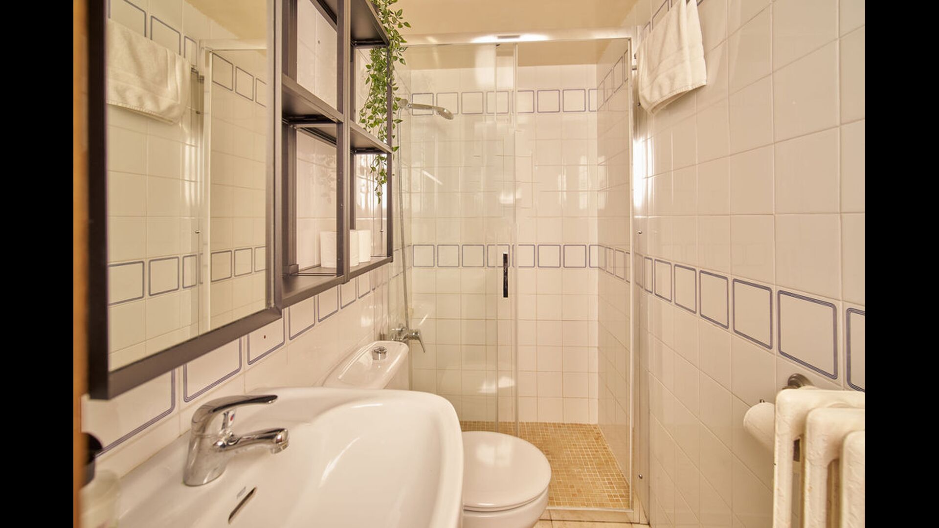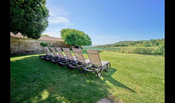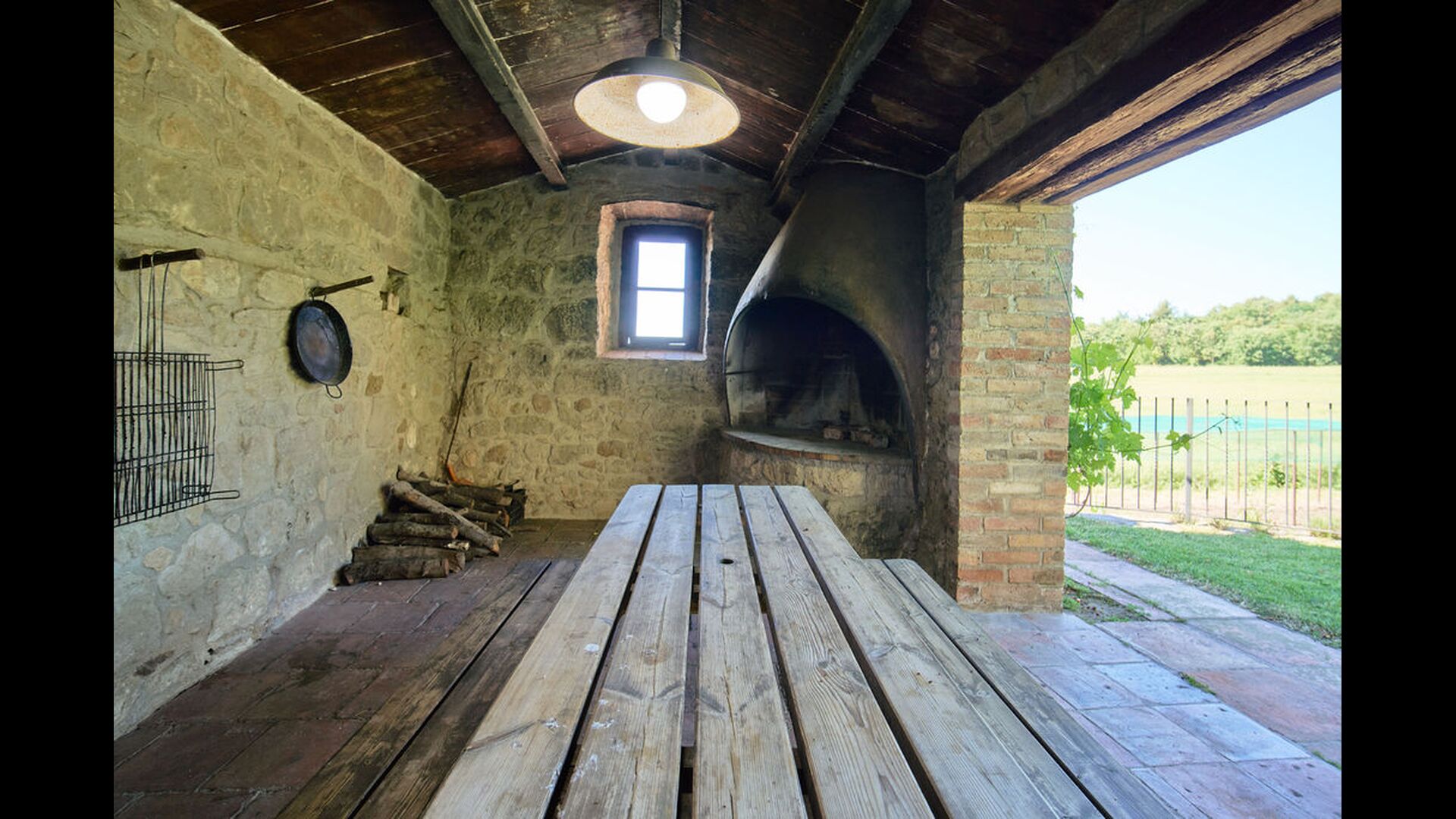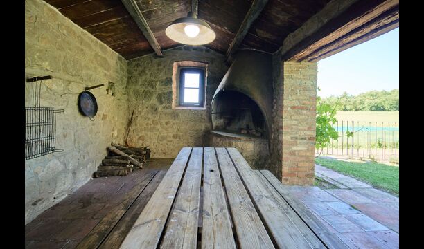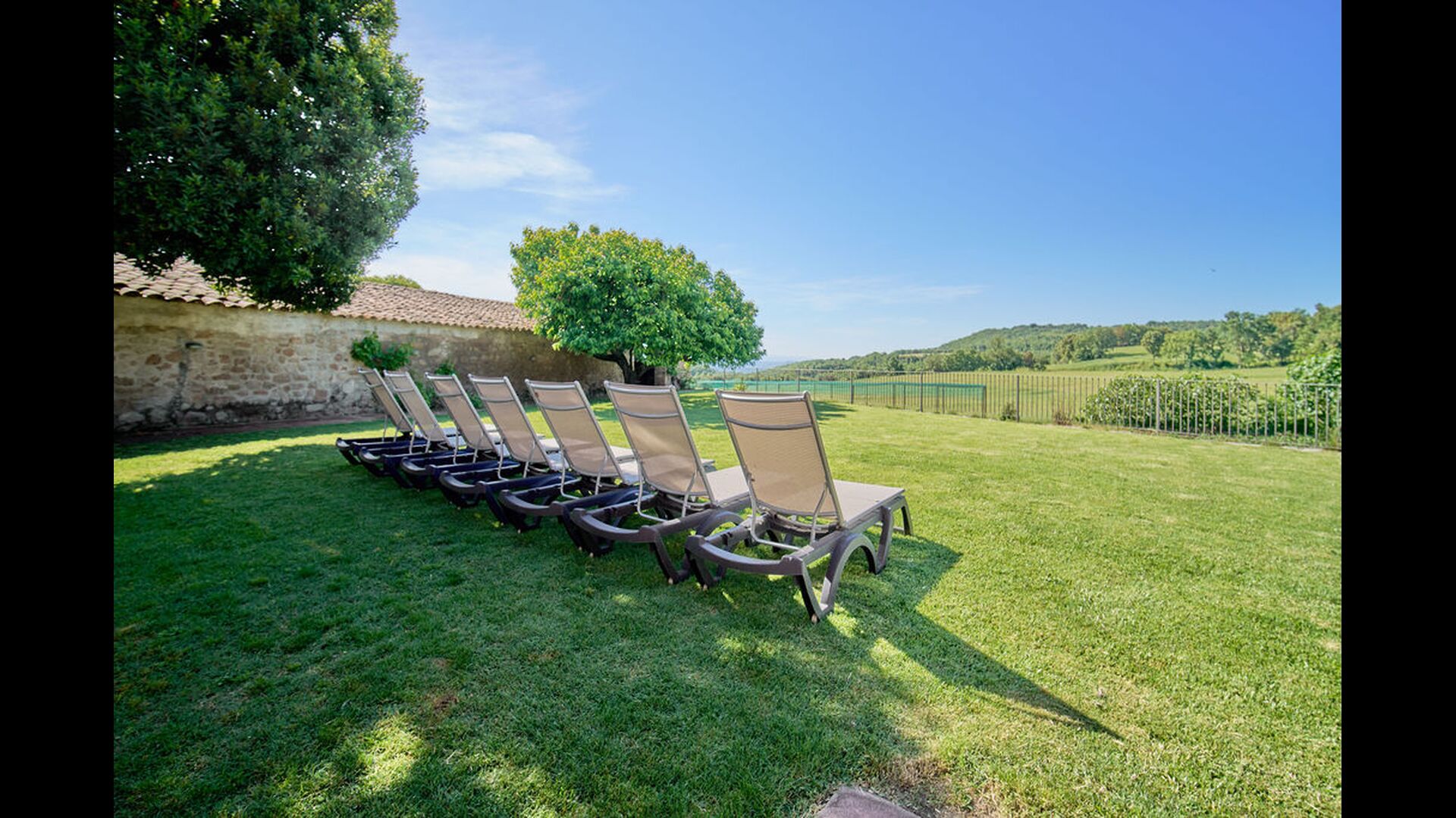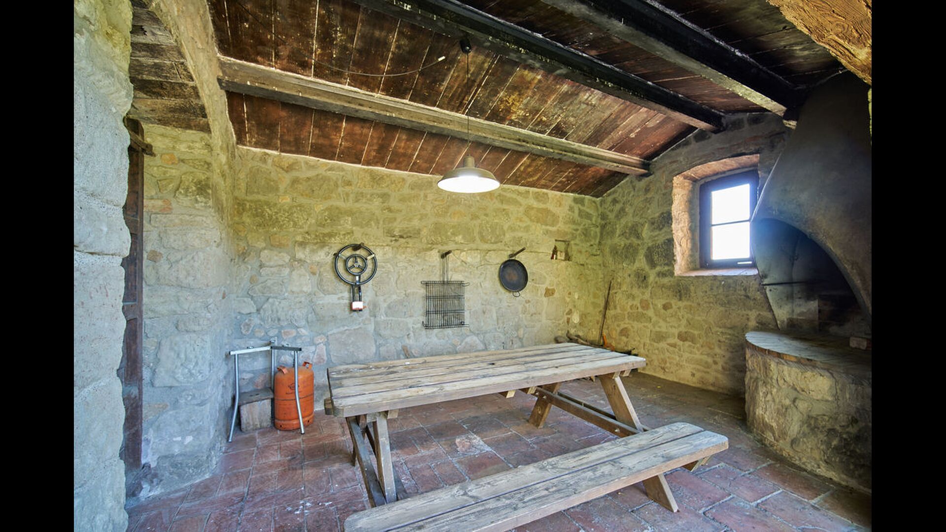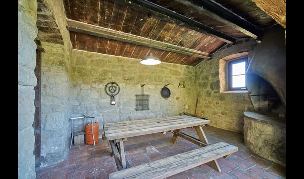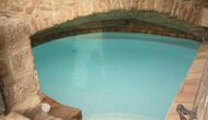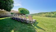 Desde la terraza, hay una escalera que baja al jardín amigable para los niños con columpios y espacio para juegos de pelota. La piscina, protegida con una cerca, está situada a pocos pasos hacia abajo, y está bellamente integrada en la roca natural, que siempre ha estado allí. Dése un chapuzón o siéntese en el banco submarino y disfrute del masaje con agua En el otro extremo del jardín, hay otra terraza cubierta con mesa y barbacoa.