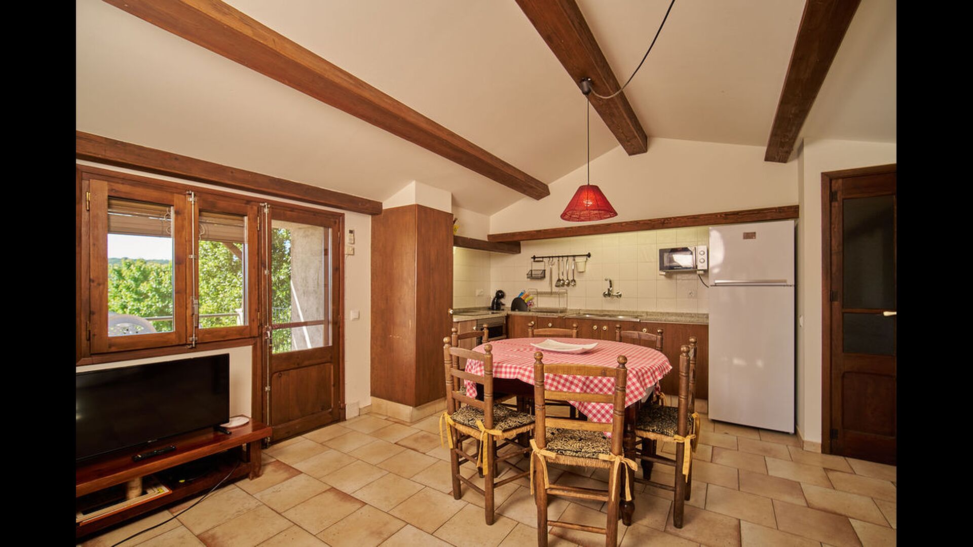 La casa tiene 3 habitaciones, dos con camas dobles y una con camas individuales. Además, hay un baño y en una de las habitaciones hay un aseo y un zinc. Además, hay una cocina / sala común con estufa, congelador / nevera, mesa de comedor y un rincón de sofá con TV. La casa tiene aire acondicionado. El wifi de los propietarios puede ser capturado algunos lugares en el jardín y en la terraza.