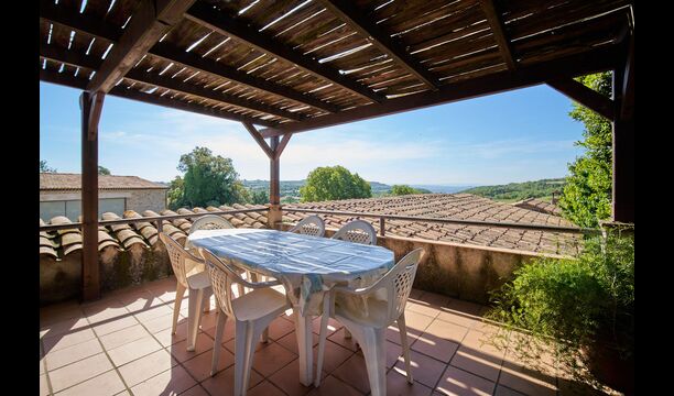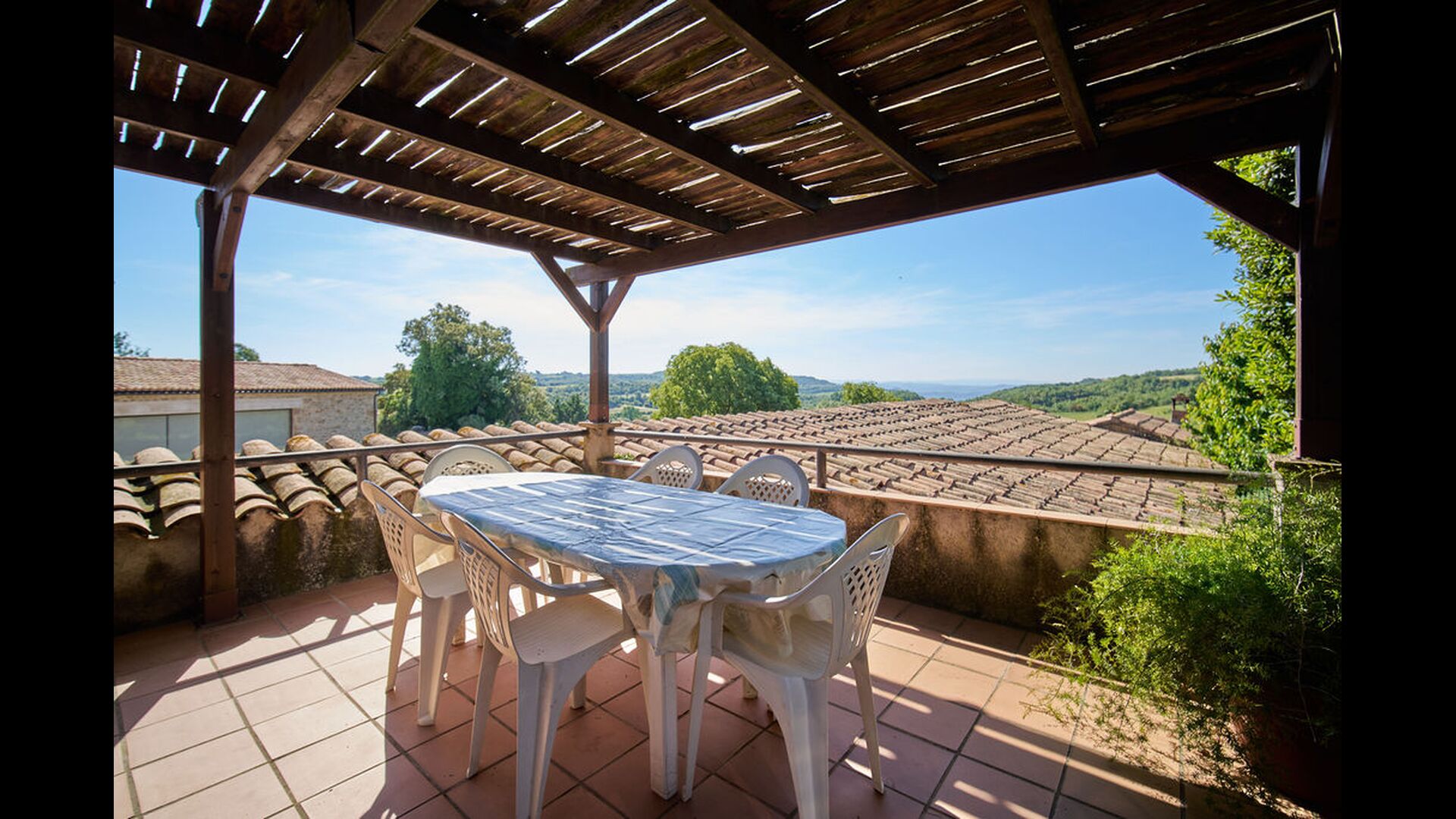 Desde la cocina, tiene acceso directo a la terraza cubierta del piso 1. con una vista fantástica sobre el paisaje; El lugar perfecto para disfrutar de tus comidas.