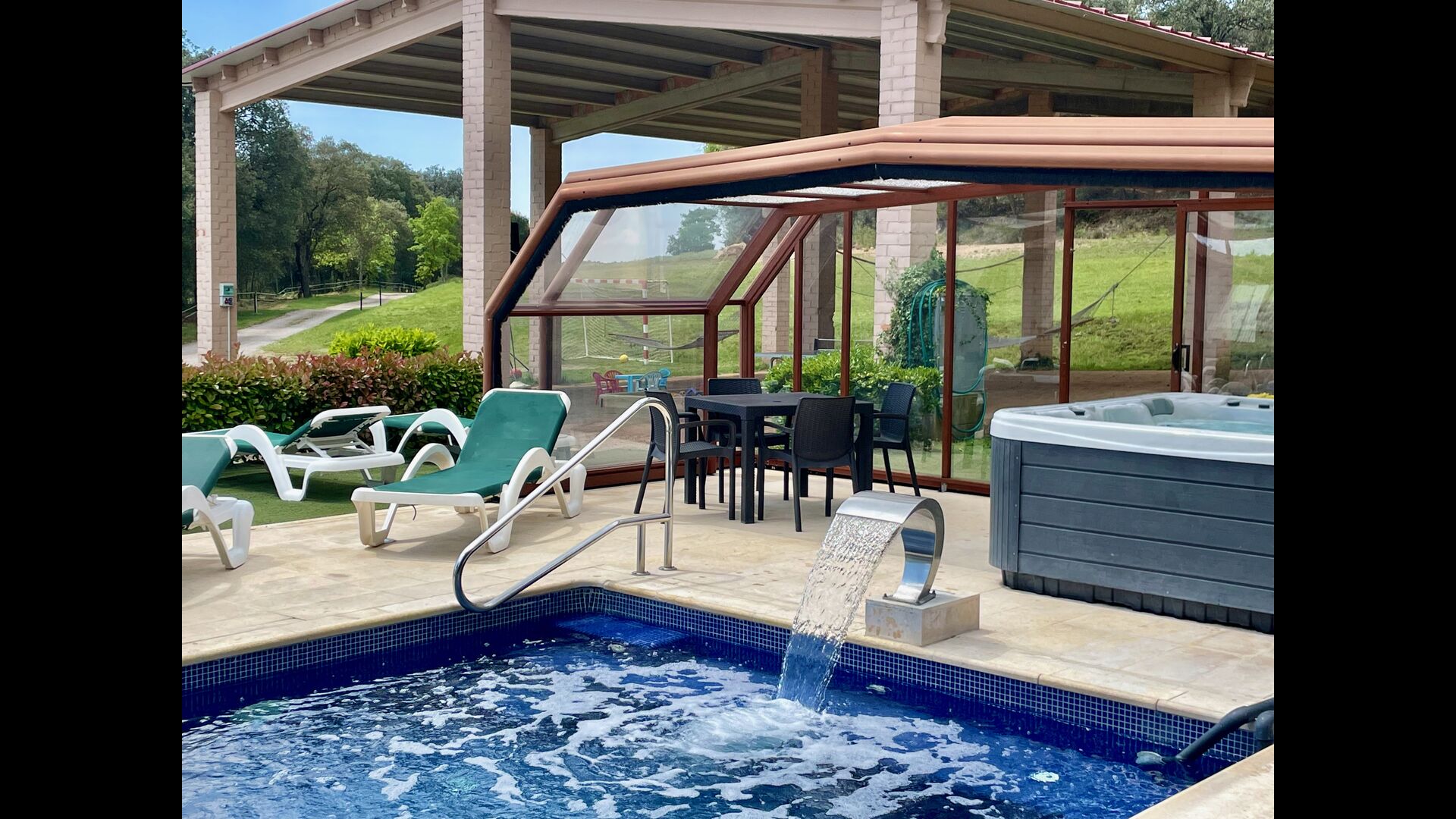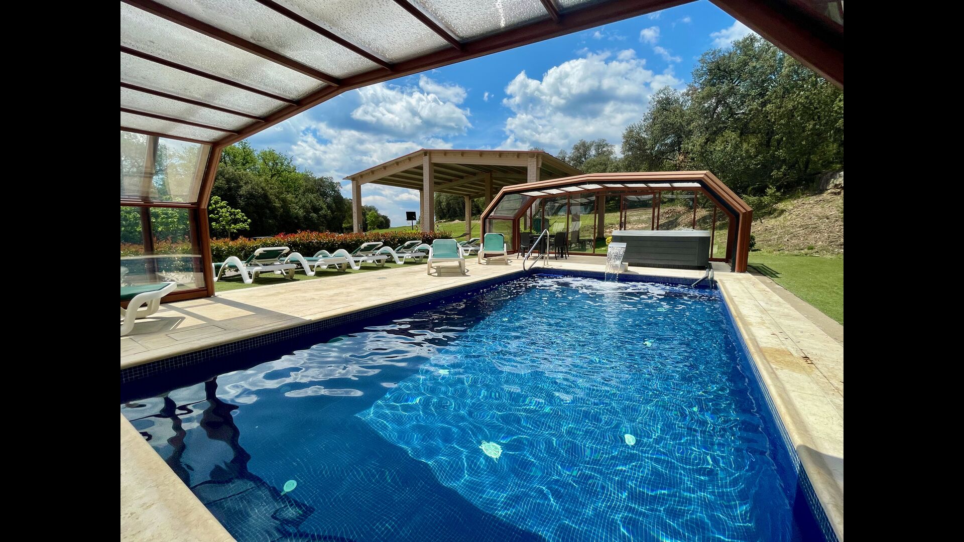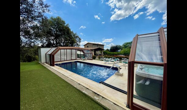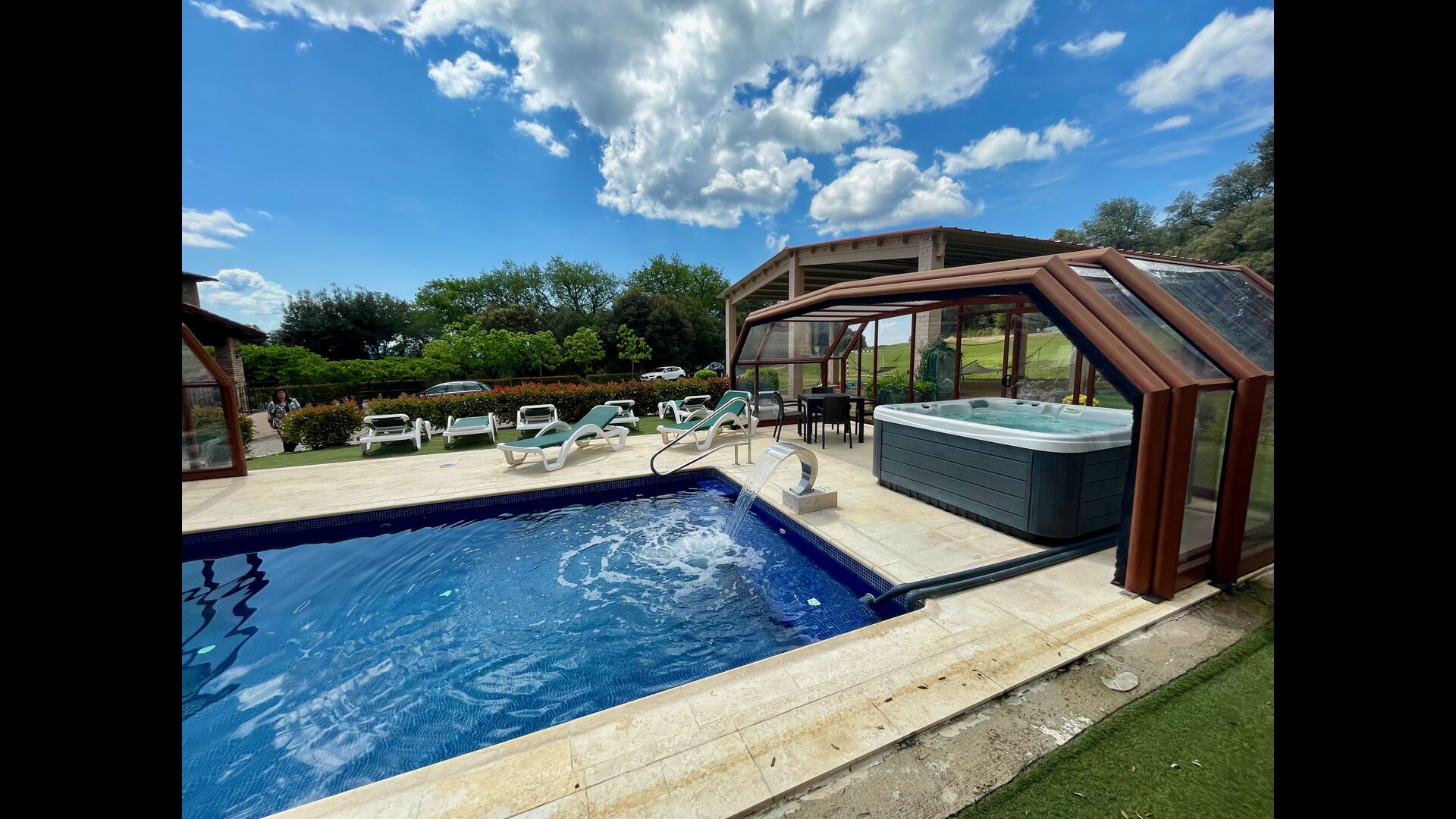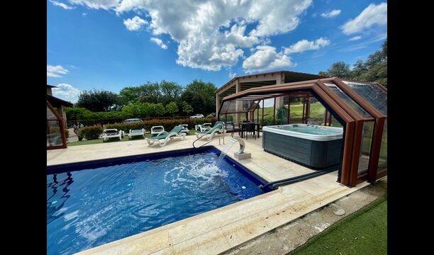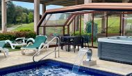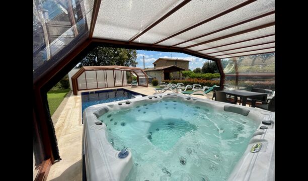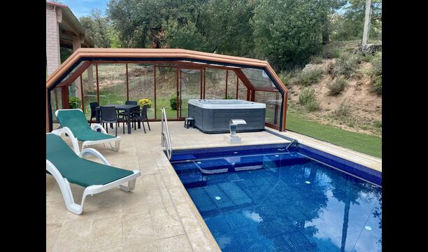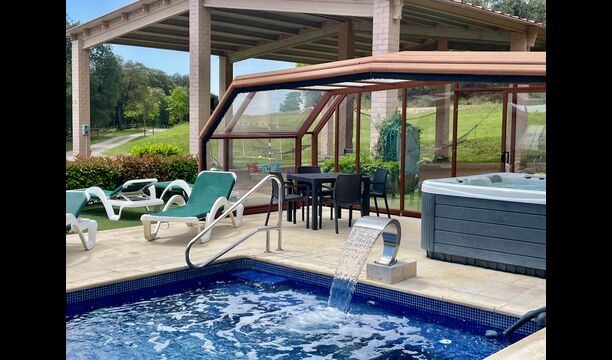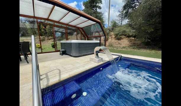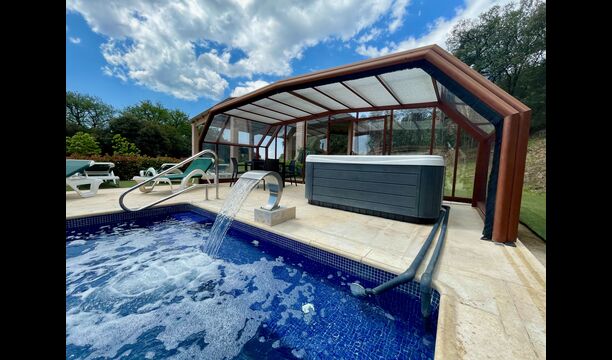 • Lovely heated pool area with Jacuzzi which can be all uncovered in the Summertime