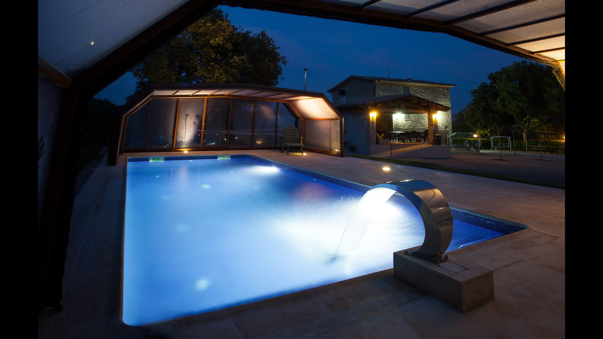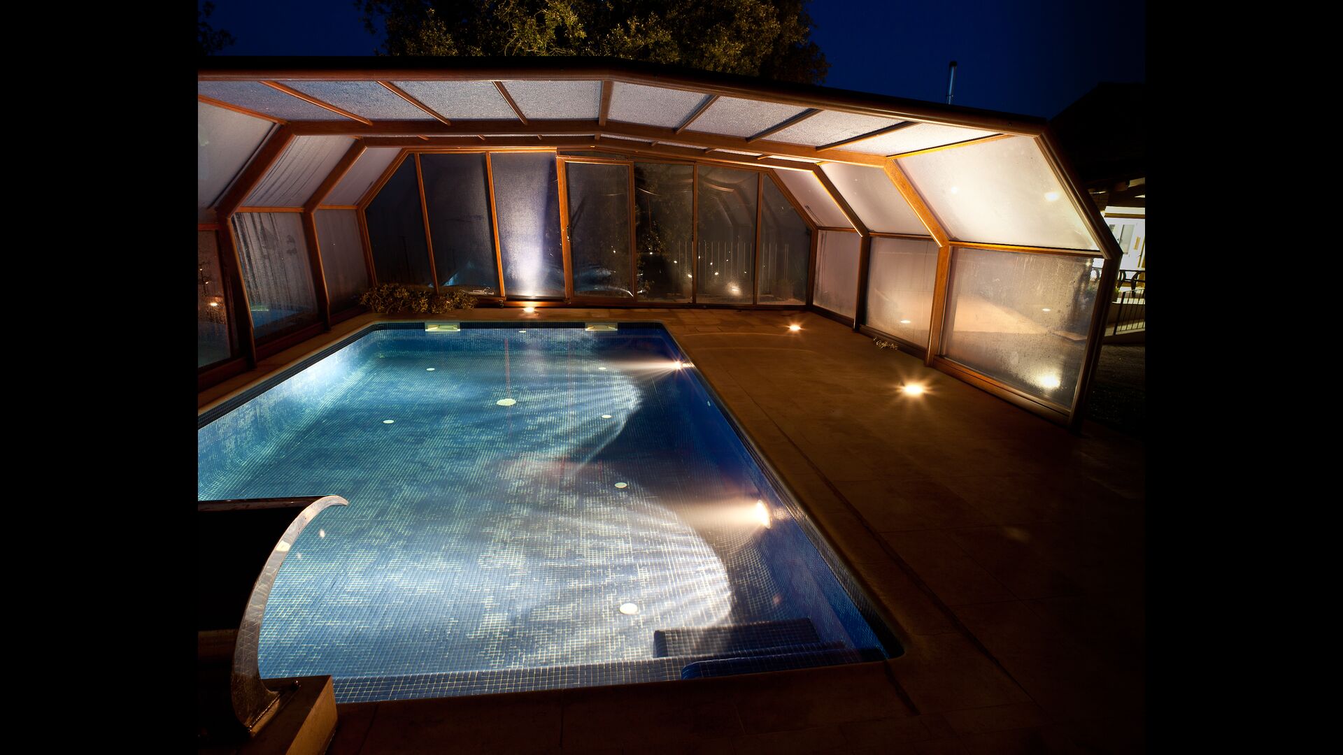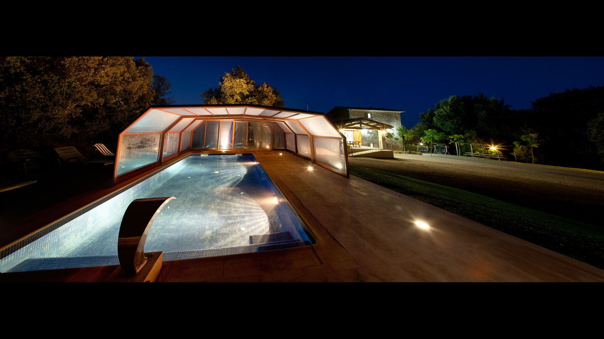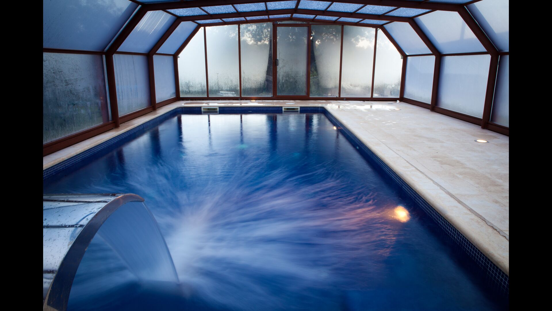 • Lovely heated pool area with Jacuzzi which can be all uncovered in the Summertime