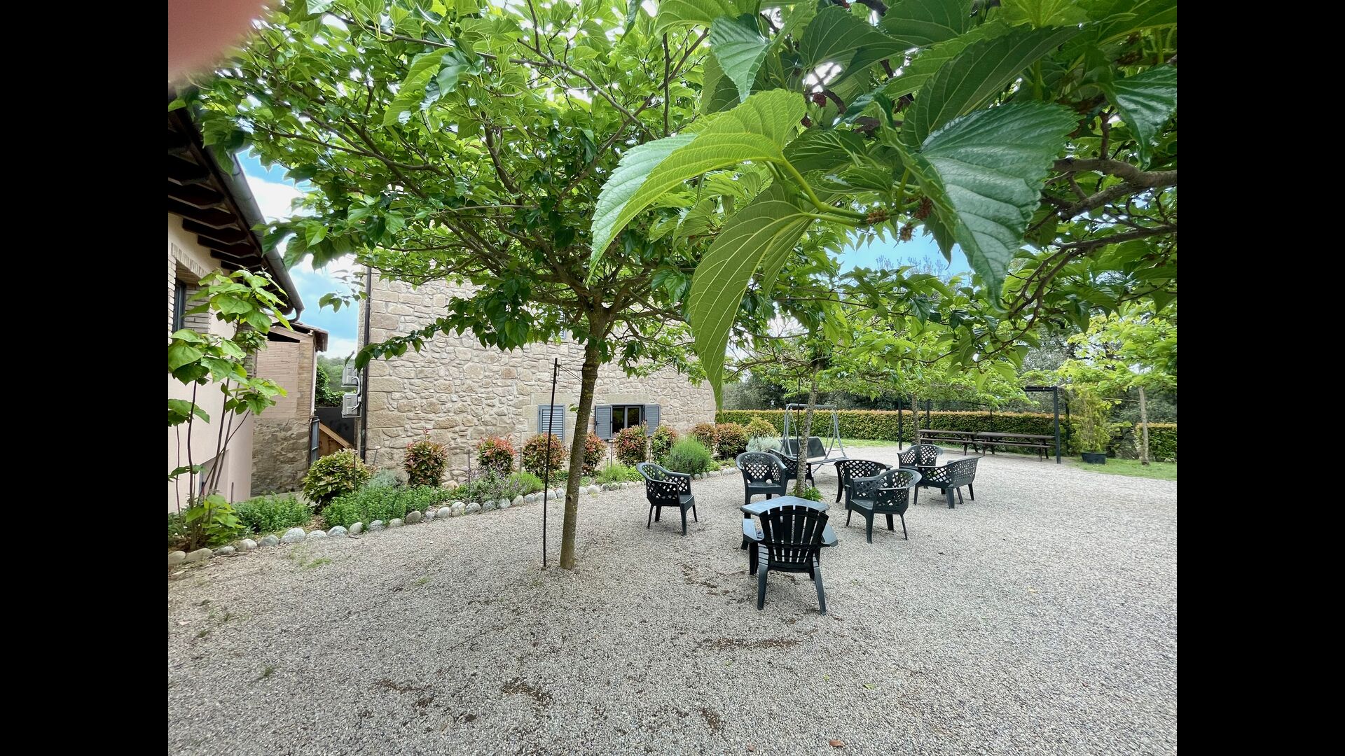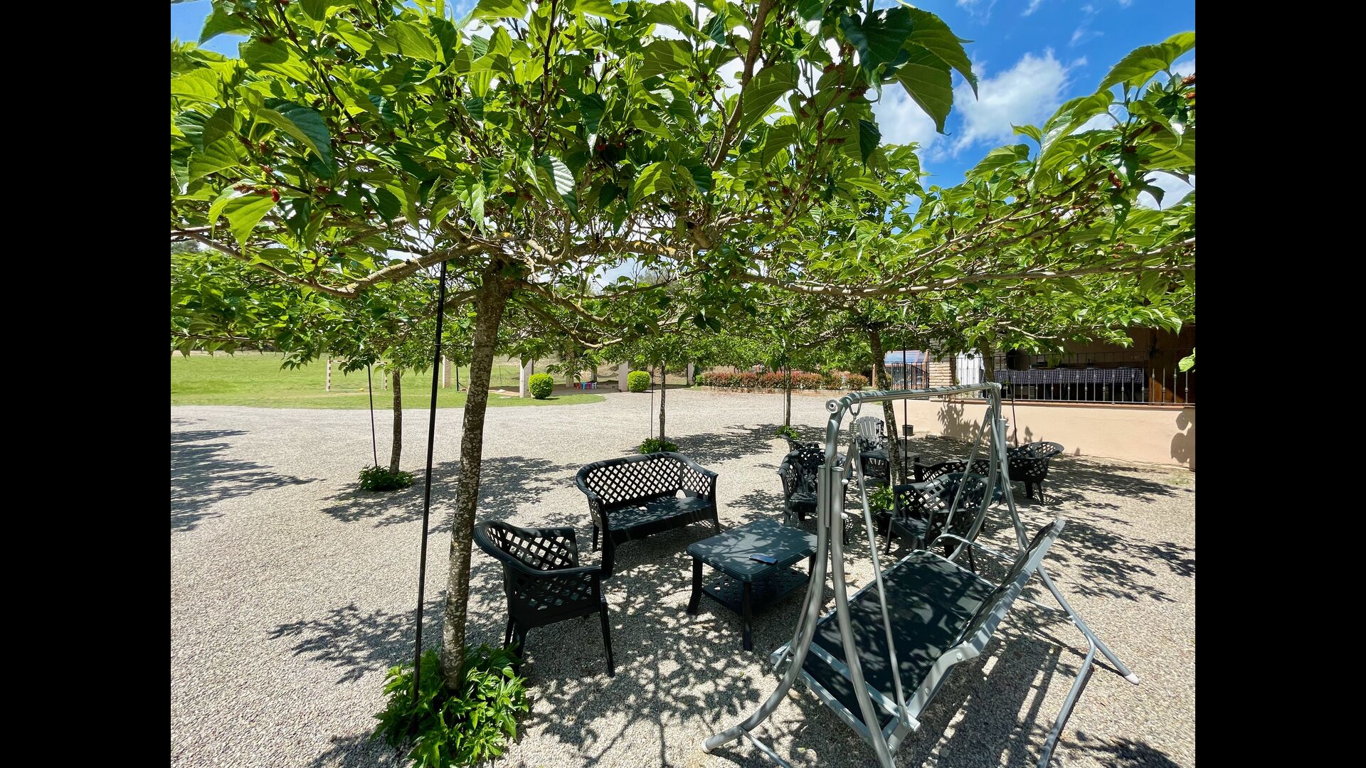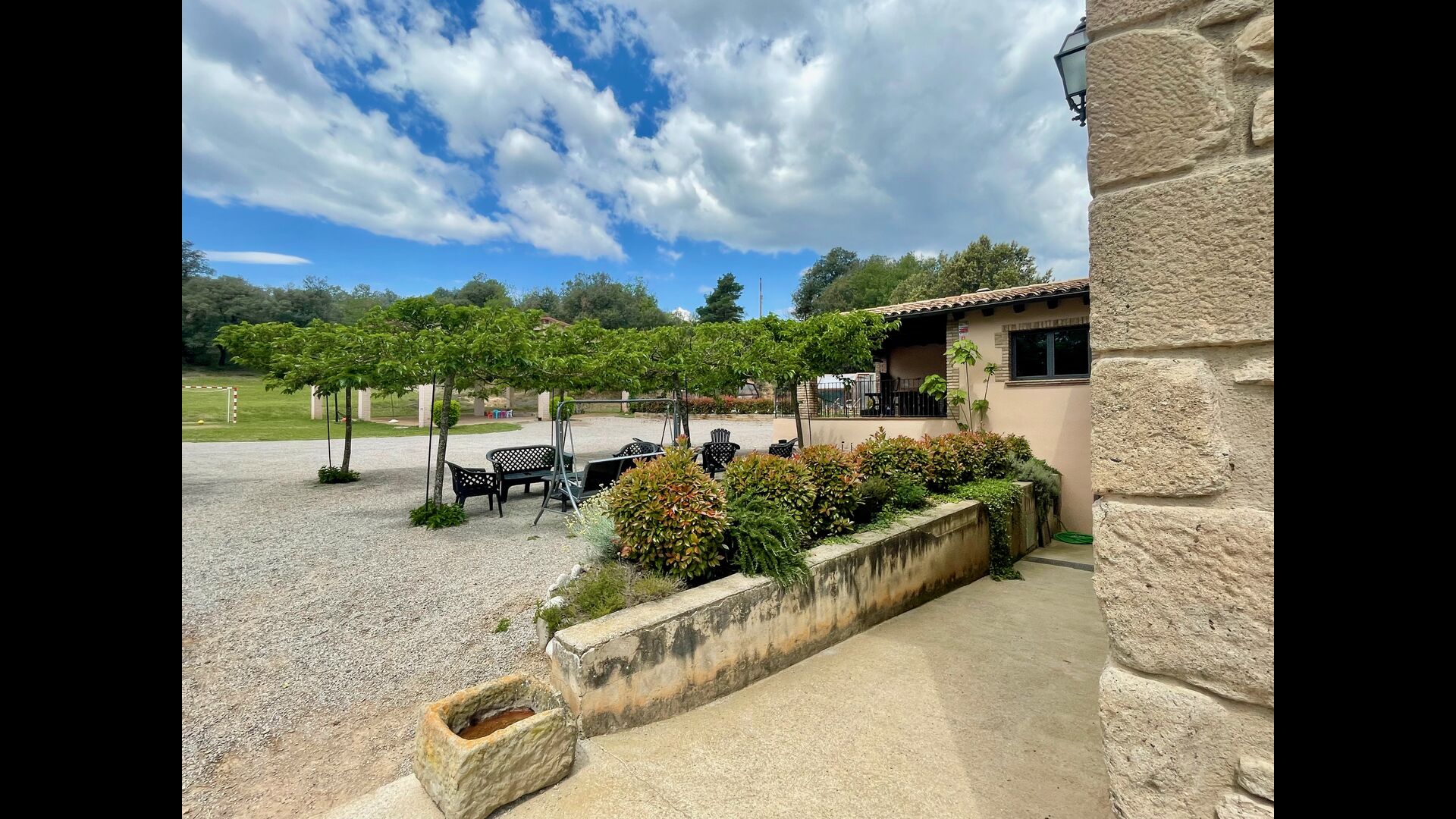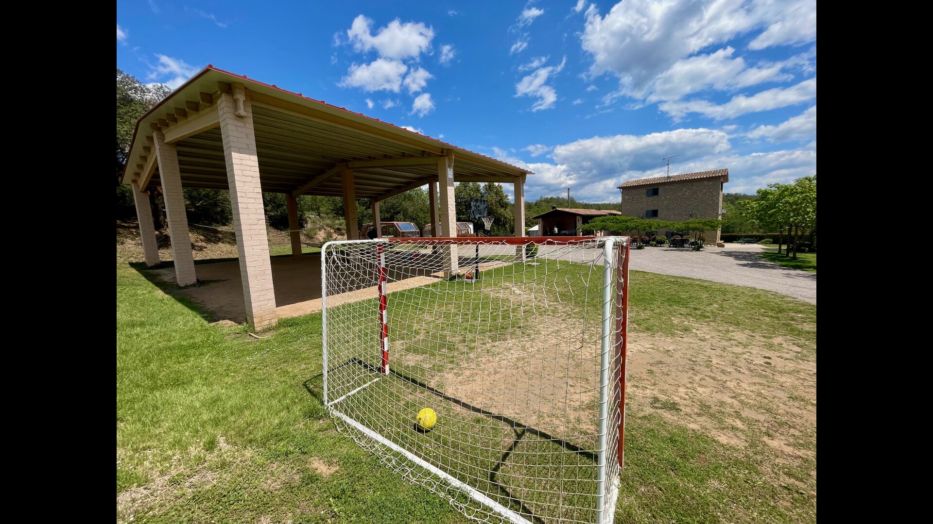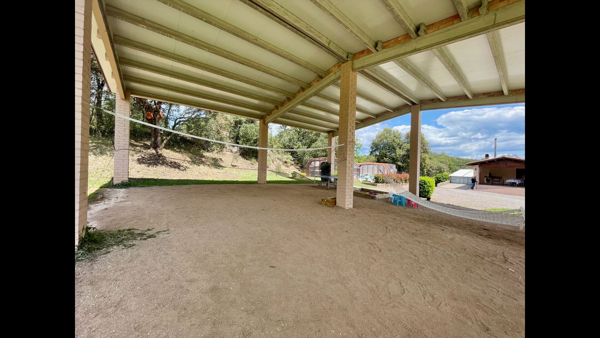 Apart from this terrace there is another patio area and hammocks on the back of the house where you can really enjoy the view. The garden also has a covered basketball court. The pool house is a real relaxation area where you can relax in the Jacuzzi and the kids will love the large fountain in the pool, which creates a little "waterfall" in the pool. For your convenience, there is now also showers and toilet next to the pool area.