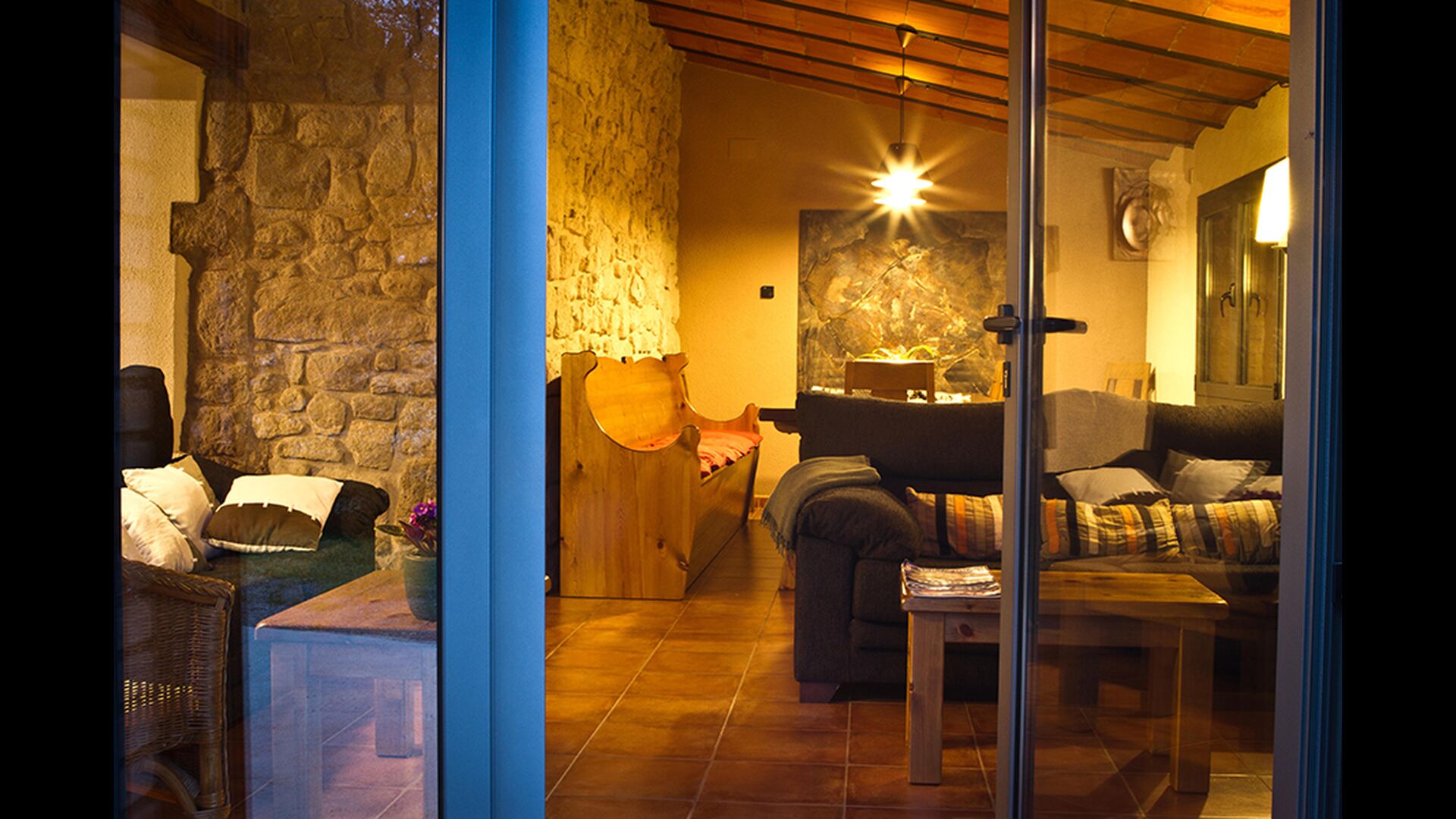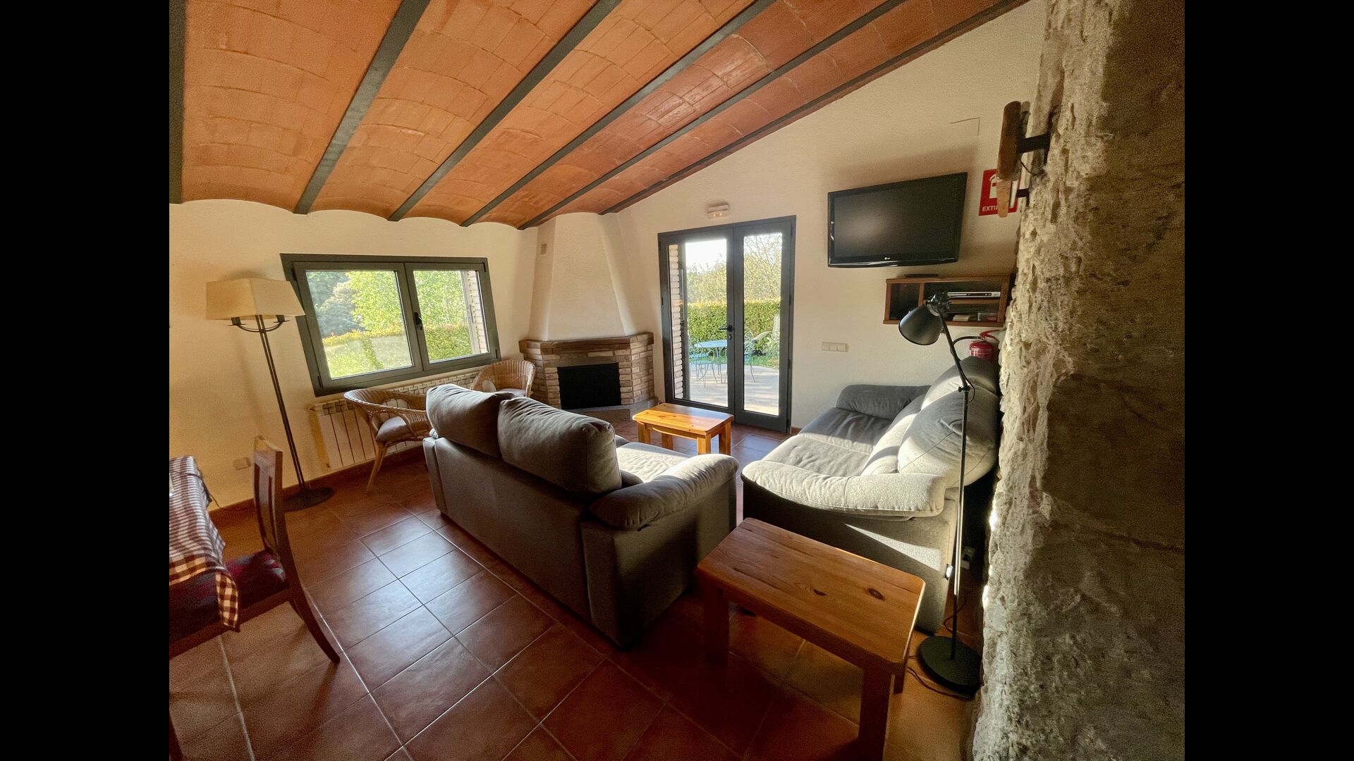 There are 3 floors in Casa Cugulado. The lower floor has a large kitchen which is equipped and fitted to the large family. It has for example two dishwasher machines, an extra-large oven and there are two refrigerators, and another at the terrace where you can choose to store beverages or meat to grill. At the ground floor is also an open common room with lounge and dining area and there are also toilet so you do not have to go up in the rooms. The living room has also a patio door to the back of the house where there is a fabulous view over the beautiful landscape.