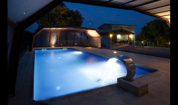 The holiday home is 350m2 spacious house with 7 nicely decorated and large bedrooms, all with en suite bathroom. It has a large garden, a lovely covered terrace and a heated swimming pool that can be open in the summer and covered if you want - here is also a Jacuzzi.