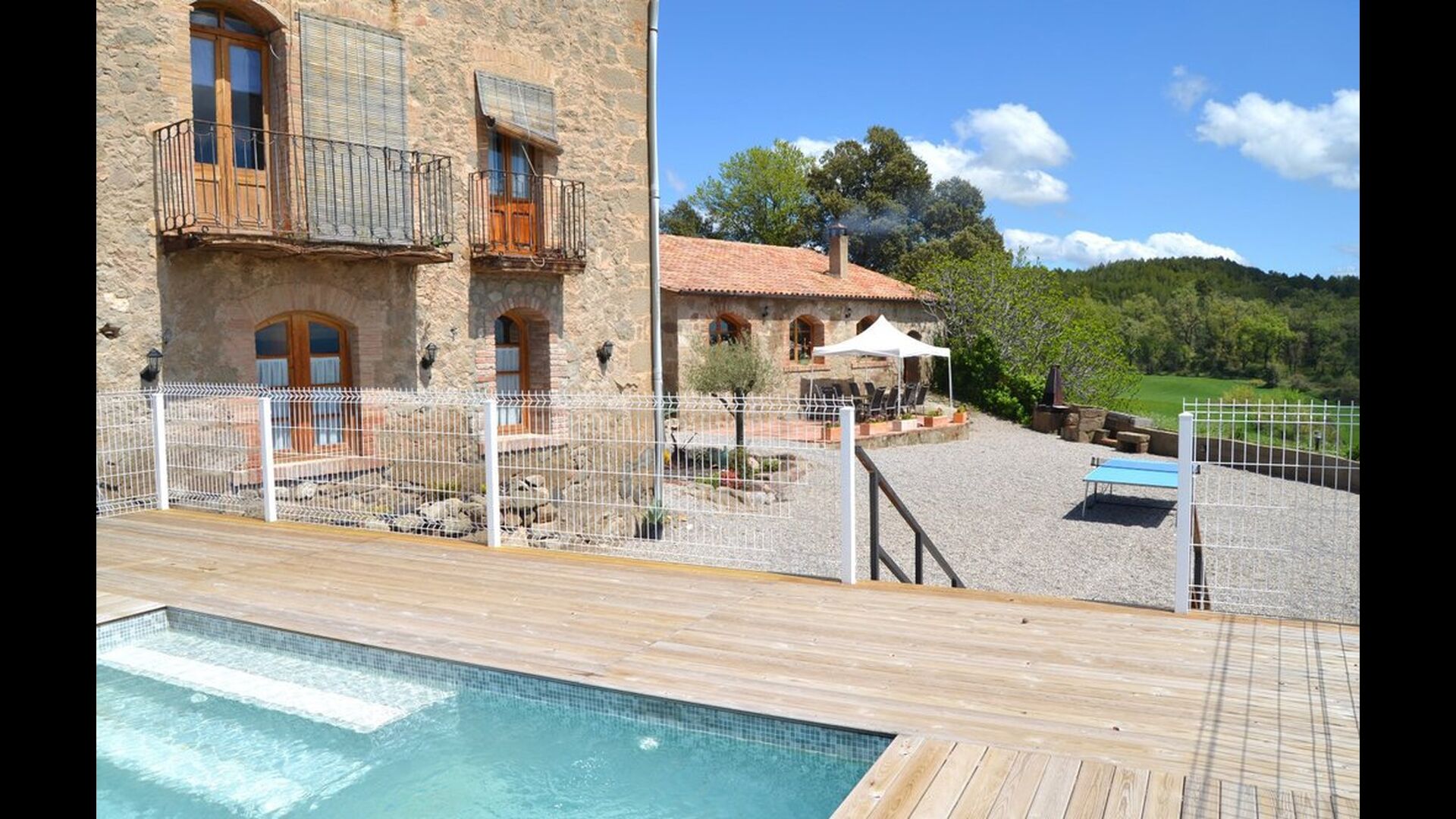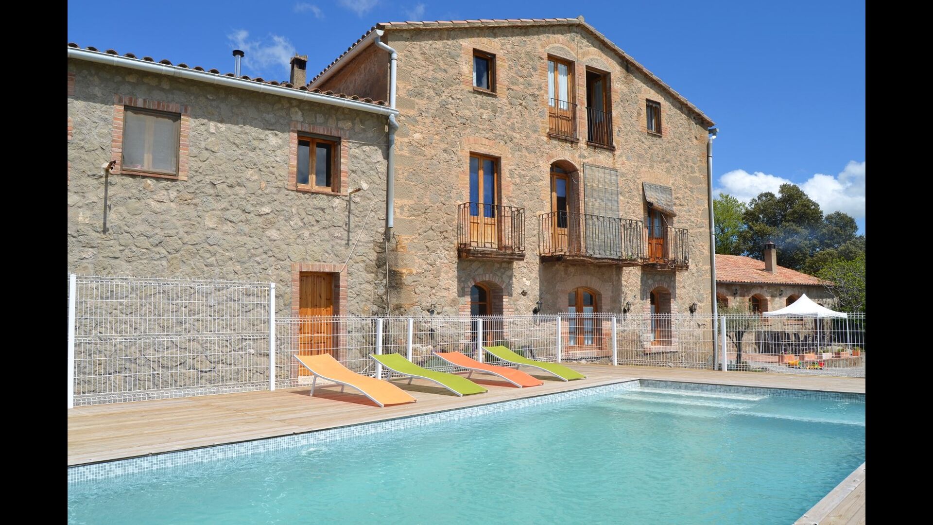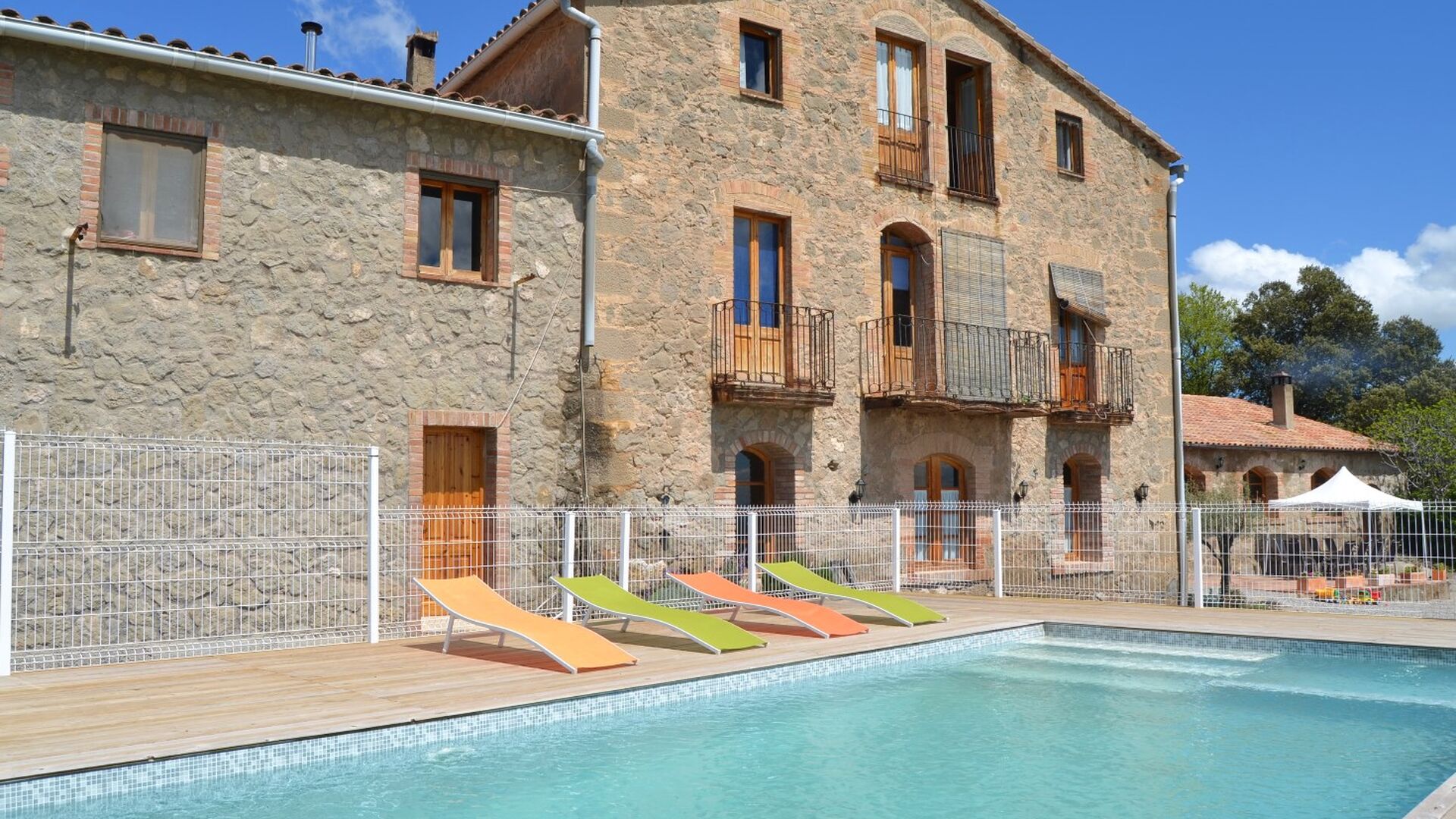 Casa Fabregás és una gran casa de pedra calcària catalana, situada amb una espléndida vista de la vall des de la terrassa, l'&rea de la piscina i des de moltes de les habitacions.