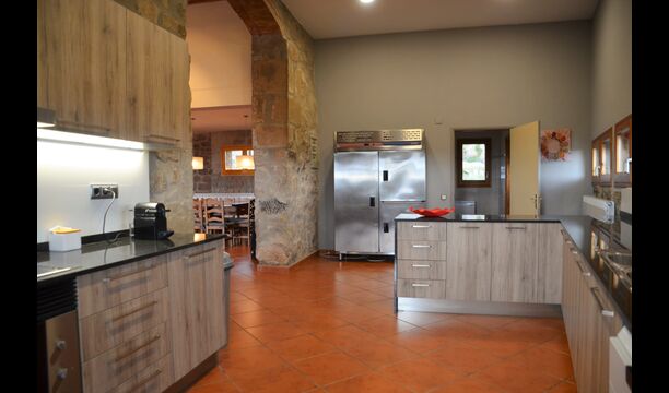 • Gran saló amb sofás, taula de menjador llarga, nevera addicional, etc.