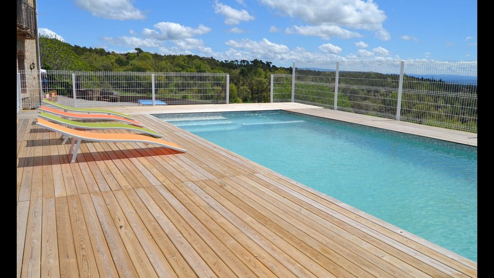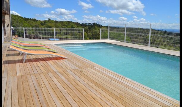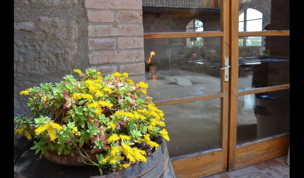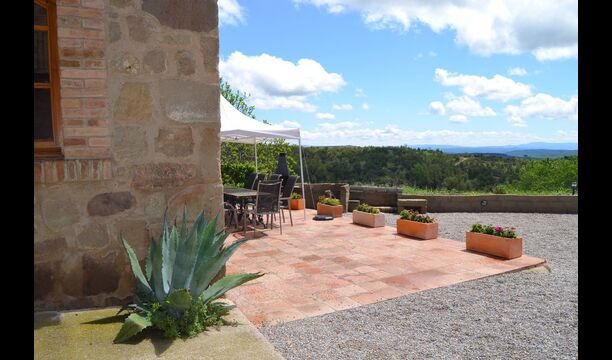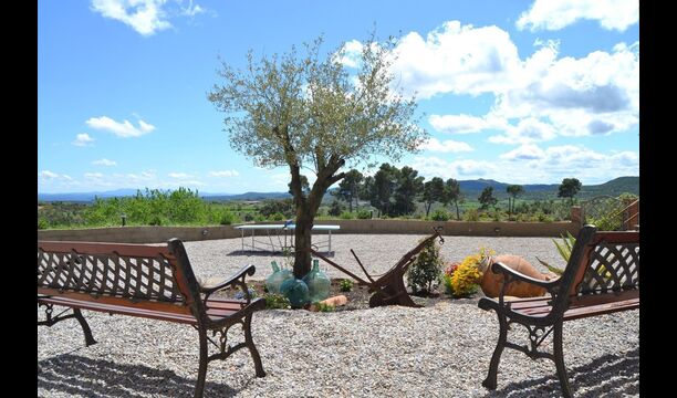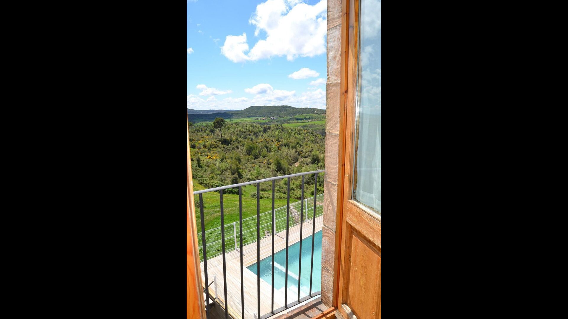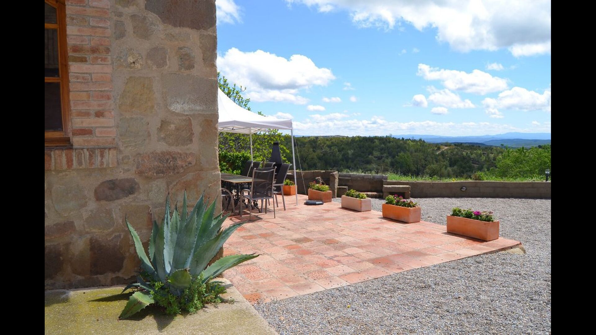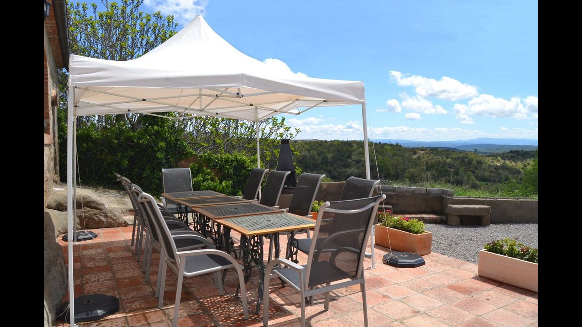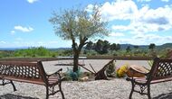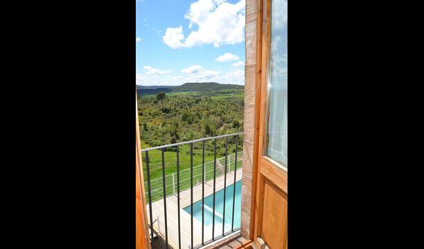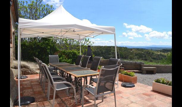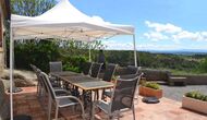 Fora d'aquest sal&ocute;, hi ha una terrassa molt bonica amb para-sols, on es pot menjar a l'aire lliure i gaudir del capvespre sobre la vall amb una tassa de café o una copa de vi o cava. També hi ha accés directe a la zona de la piscina molt bonica amb piscina i gandules i la mateixa excel·lent vista. La piscina est&ag; tancada per protegir els nens petits.