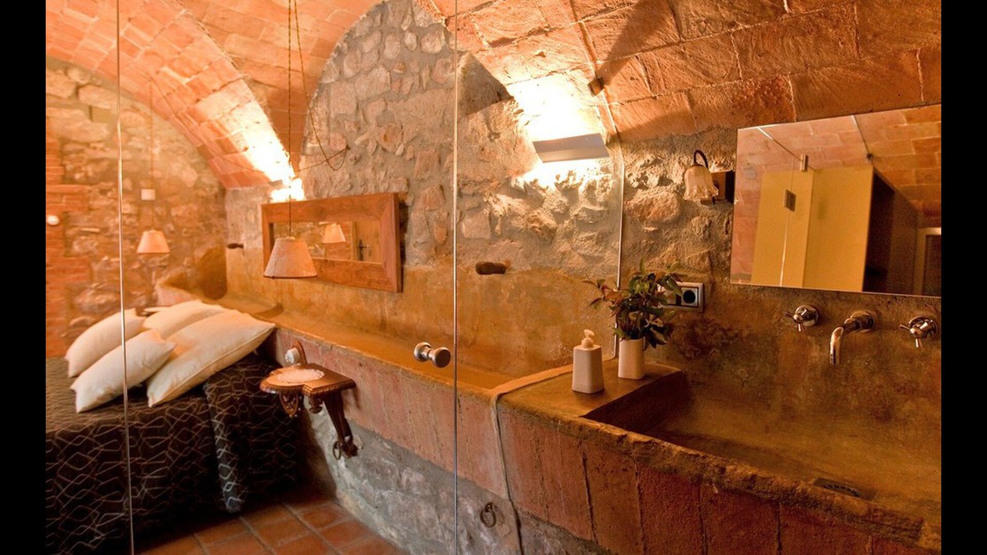 Entres a la planta baixa de la casa per una bonica entrada. Previament, aquesta zona era on hi havia hagut els animals, però aquesta area és ara un increible camí transformat en dues suits amb llit doble i bany privat, tot amb un disseny d'interior modern. A la planta baixa, també hi ha una sala amb una taula de ping-pong.