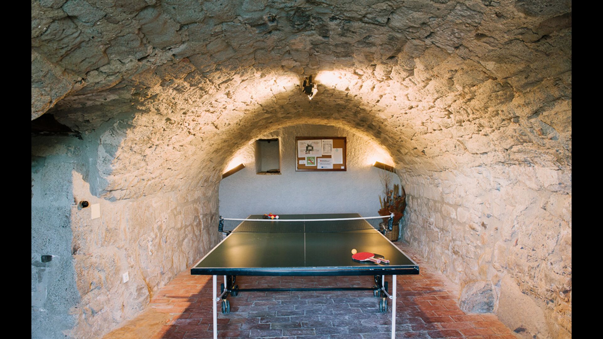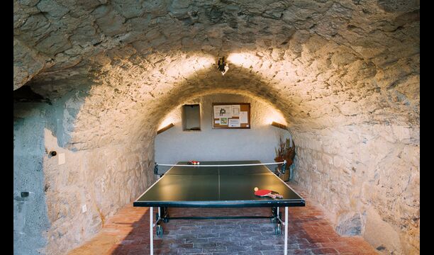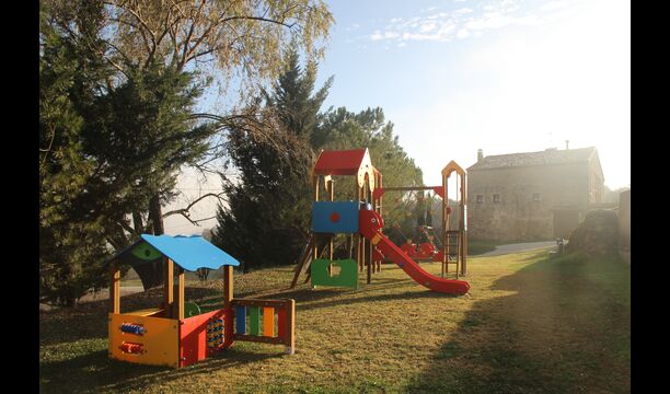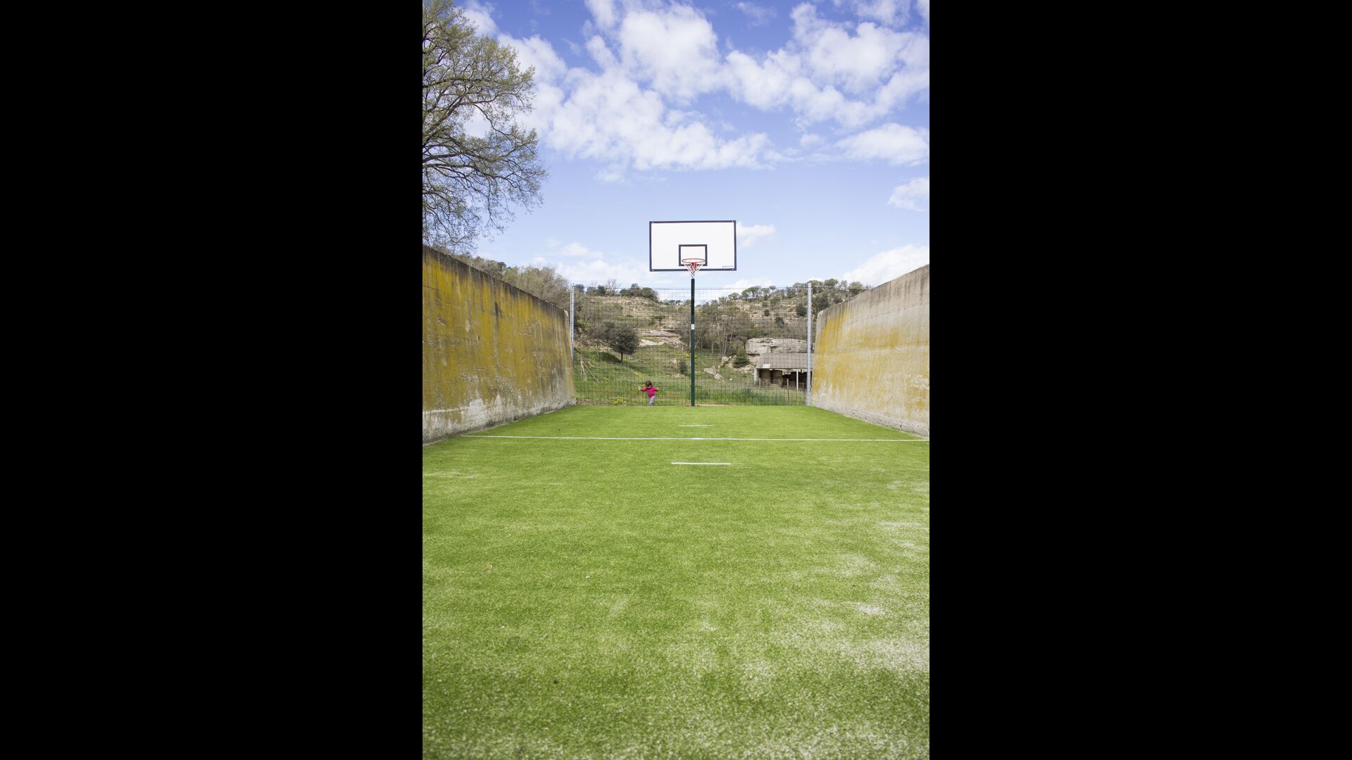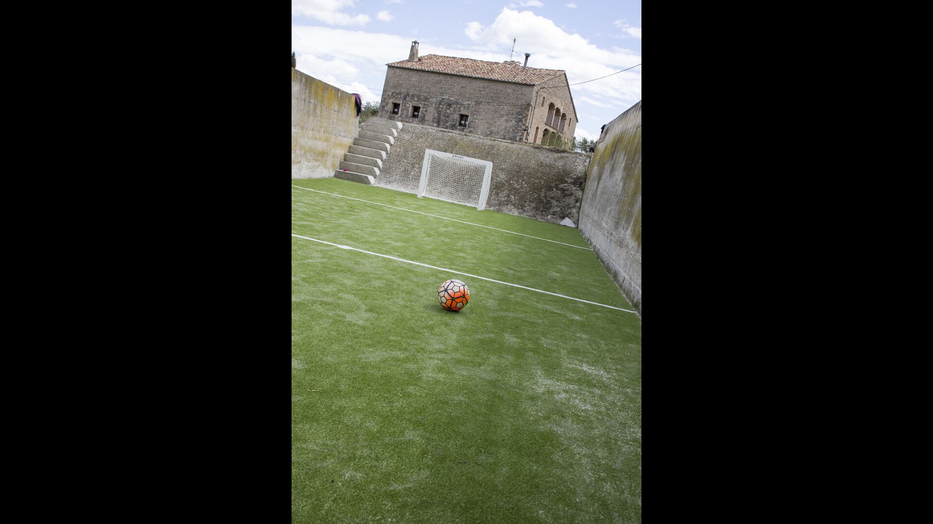 Per l'altra banda de la casa on hi ha el pàrquing dels cotxes, ells han redissenyat dos recintes anteriors, prèviament utilitzats per a l'emmagatzematge d'aliments per als animals, amb una mini-pista de bàsquet i un futbito. A més a més, per l'entreteniment de les famílies, ells tenen fites d'una cursa d'orientació al voltant de la propietat, per tant pots fer una mica d'exercici i divertir-te si tu vols. L'Anna us explicarà com fer-ho quan arribeu.