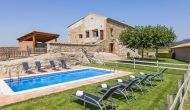 Casa Pau es una casa de vacaciones bastante única, ya que está construida sobre una roca gigantesca que se eleva en el paisaje y crea una expresión única. La casa es una casa de piedra catalana tradicional de 550 m2 dividida en 3 plantas. La casa tiene capacidad para 17 (+3) invitados y está ubicada entre los campos y prados de los Pirineos catalanes, que se alzan en el fondo.