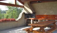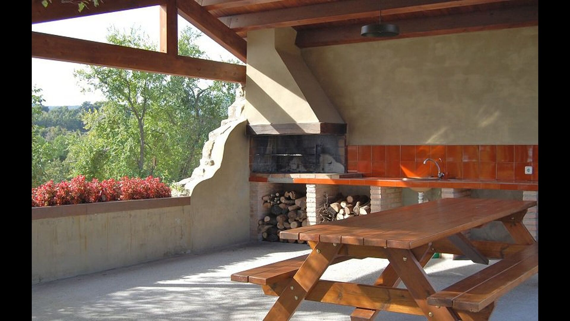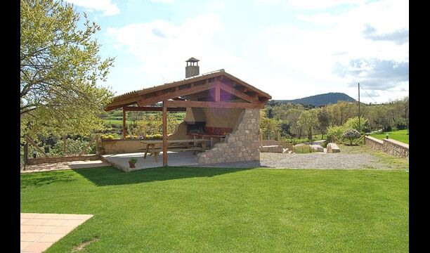 At the other end of the garden there is a covered terrace, which will be the holiday's natural meeting point. This is a perfect place to spend the evening when there is a BBQ, outdoor kitchen and dining table and table tennis. From the garden and the house there is a breathtaking view over the beautiful Catalonian mountains in one direction. In the other direction, one level below the house, there is a big field for the owners' cows with an open stable, where they can hide in bad weather.
