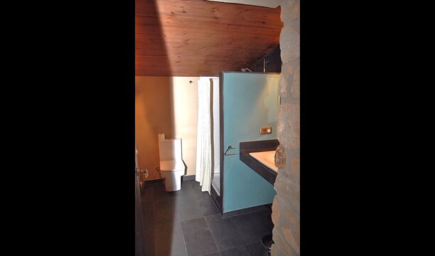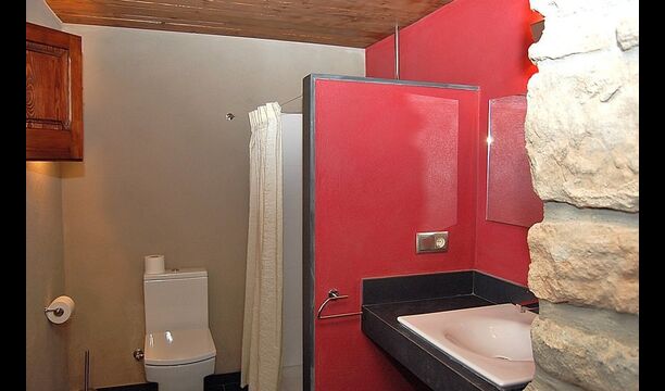 The ground floor has a large double room with a modern en suite bathroom. There is also a lounge with a cozy sitting area with flat screen TV, which is a great place for indoor relaxation. This room has many small Catalan details, which reminds you of the fact that you are on vacation, and which make you automatically relax even more.