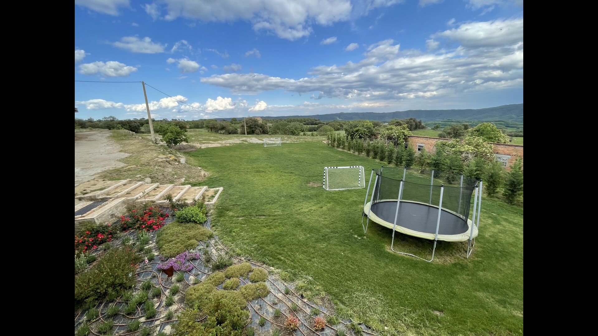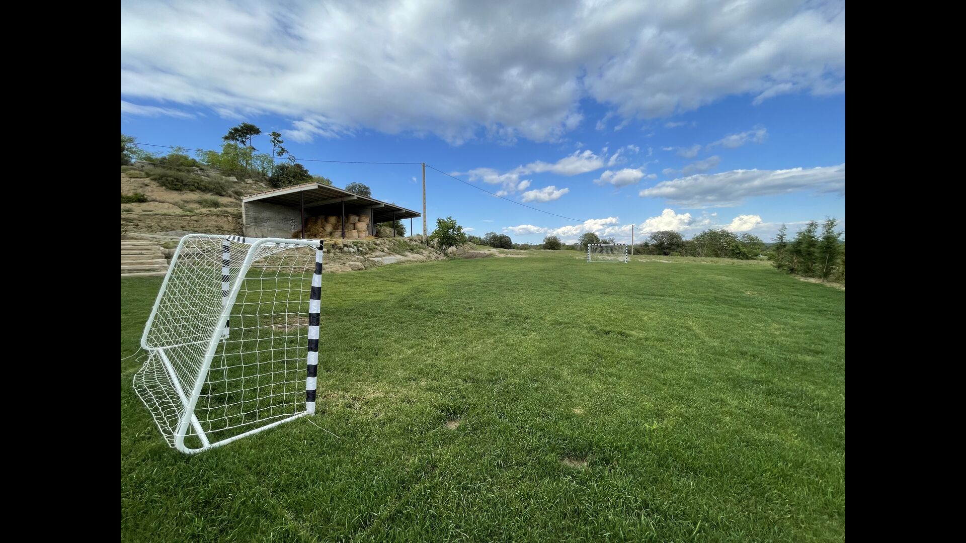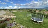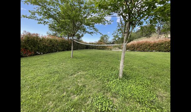 El jardí té un trampolí, perfecte perquè els nens hi rebotin. Els pares poden observar els nens jugant a través de les finestres de la piscina coberta i del menjador/sala d'estar i la terrassa del Porxo. Just al costat del trampolí, hi ha una zona per jugar a futbol, que arriba amb dos gols. A més, el jardí té una xarxa de voleibol i hi ha una taula de ping-pong que també podeu utilitzar.