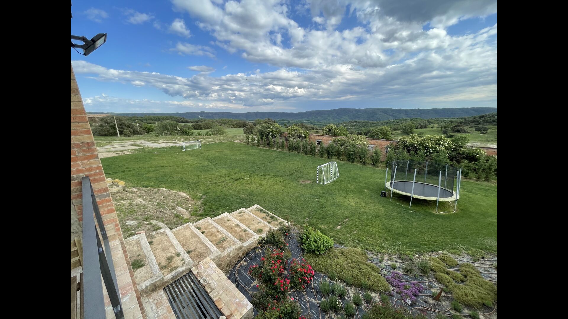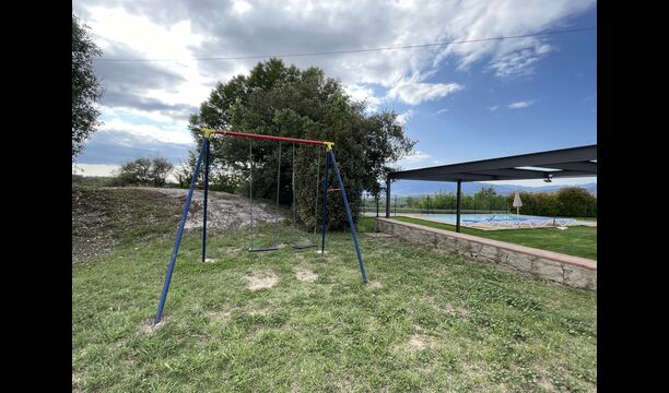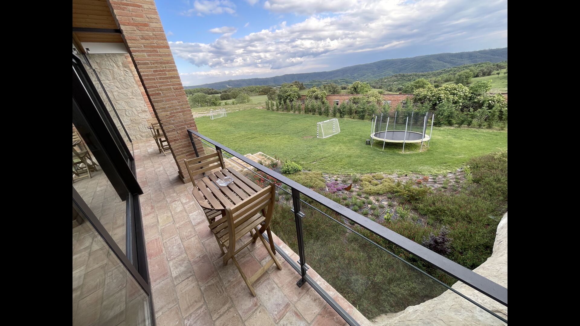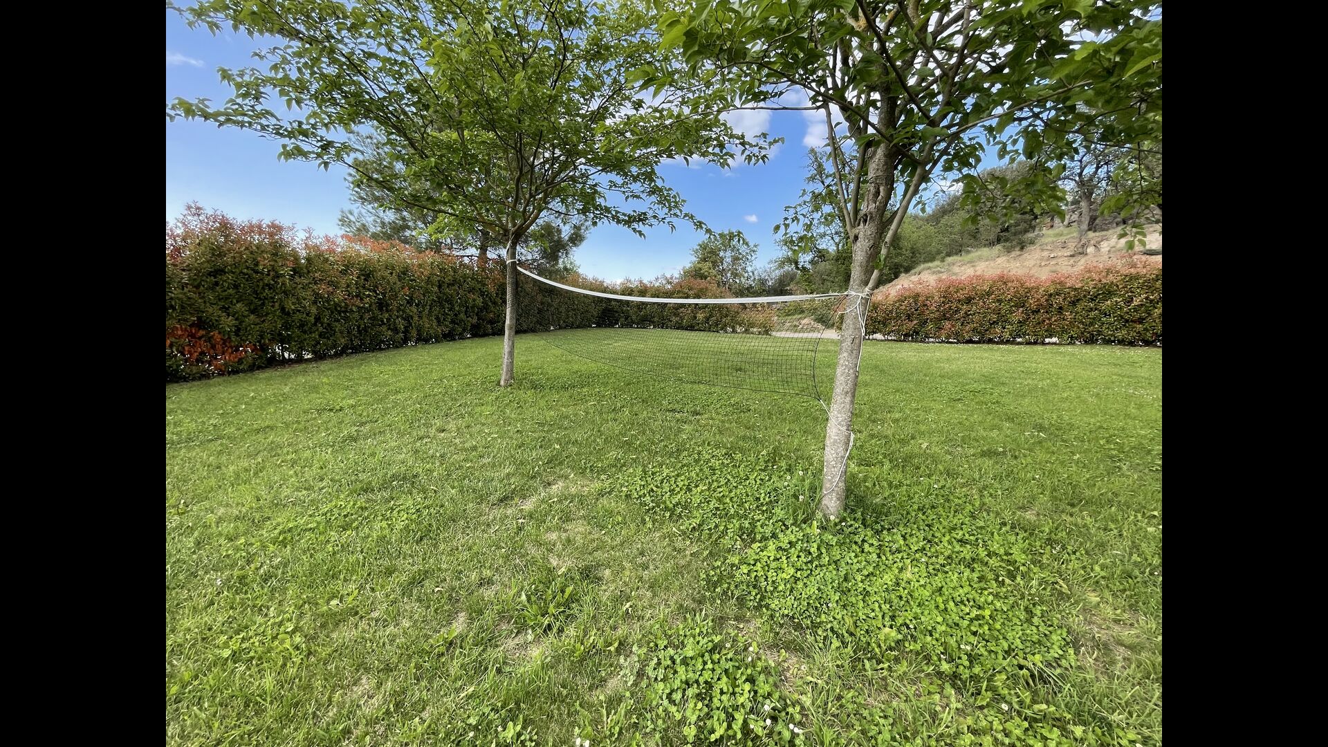 El jardí té un trampolí, perfecte perquè els nens hi rebotin. Els pares poden observar els nens jugant a través de les finestres de la piscina coberta i del menjador/sala d'estar i la terrassa del Porxo. Just al costat del trampolí, hi ha una zona per jugar a futbol, que arriba amb dos gols. A més, el jardí té una xarxa de voleibol i hi ha una taula de ping-pong que també podeu utilitzar.