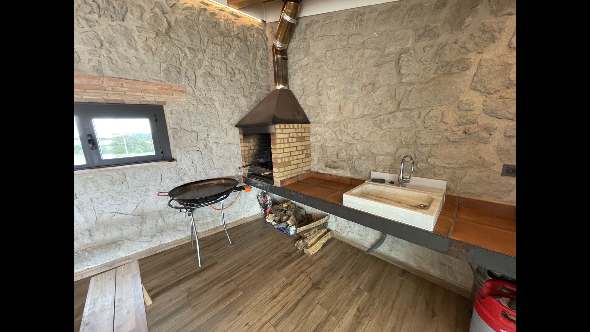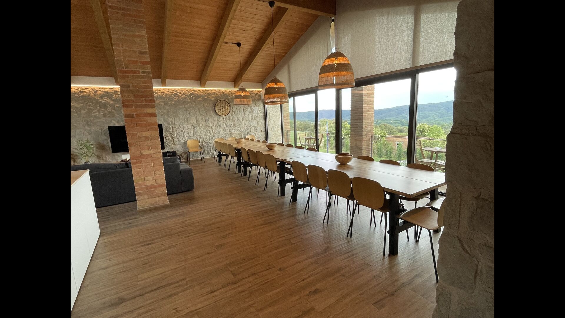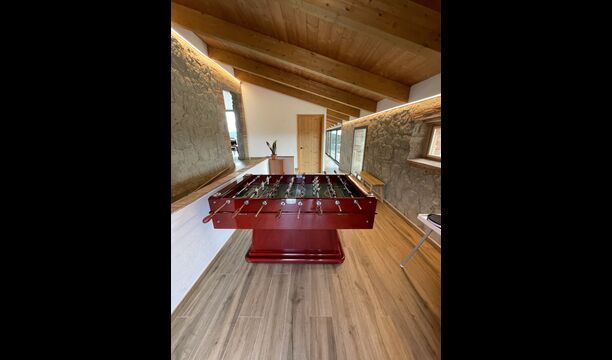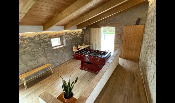 Casa Salvet és una propietat de vacances catalanade primera, bonica, espaiosa i ric en activitats de la millor qualitat< /strong>. Capaç d'acollir fins a 30 persones, la propietat consta d'una meravellosa casa renovada que conserva el seu encant clàssic, alhora que està plena de instal·lacions i luxesd'una casa de vacances moderna. Juntament amb la casa mateixa, té un jardí massiu amb una gran piscina, un llit elàstic, ping-pong i un camp de futbol– per no parlar d'un edifici sublim i més petit anomenat Porxo, equipat amb equips de barbacoa, una sala d'estar/cuina d'última generació > amb una terrassa amb vistes al camp de futbol; i, a sota de la cuina, hi ha una piscina coberta encantadora – també amb una visió clara del camp de futbol exterior, així com dels voltants. Al costat de la zona de la piscina coberta, hi ha un saló amb TV de pantalla plana.