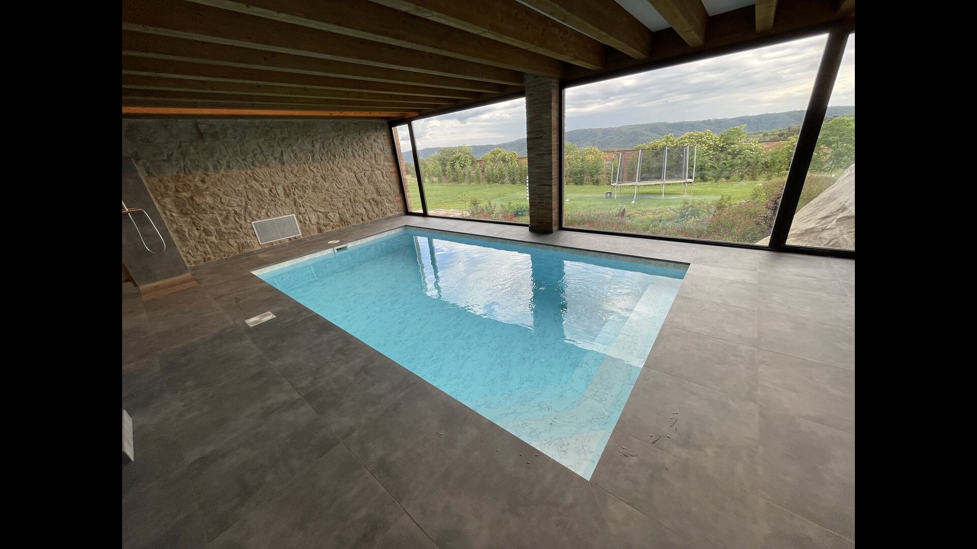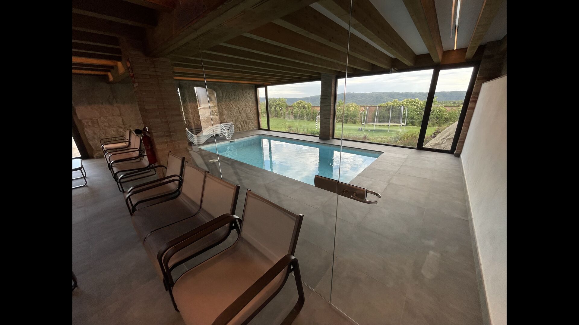 Finalment, hi ha la piscina luxosa tancada – amb diverses gandules i amb vistes a les belles vistes del camp català, està situat extremadament bé per a qualsevol que busqui un bany ràpid, diversió a l'aigua o simplement un lloc excel·lent per contemplar la vista. La piscina – té 13 metres de llarg i 4,5 metres d'amplada – també ésprou gran com per acollir moltes persones alhora, sense sentir-se amuntegat.