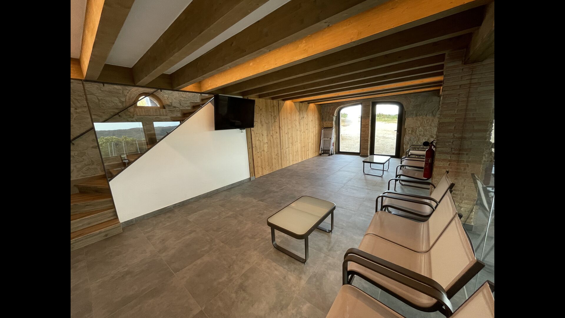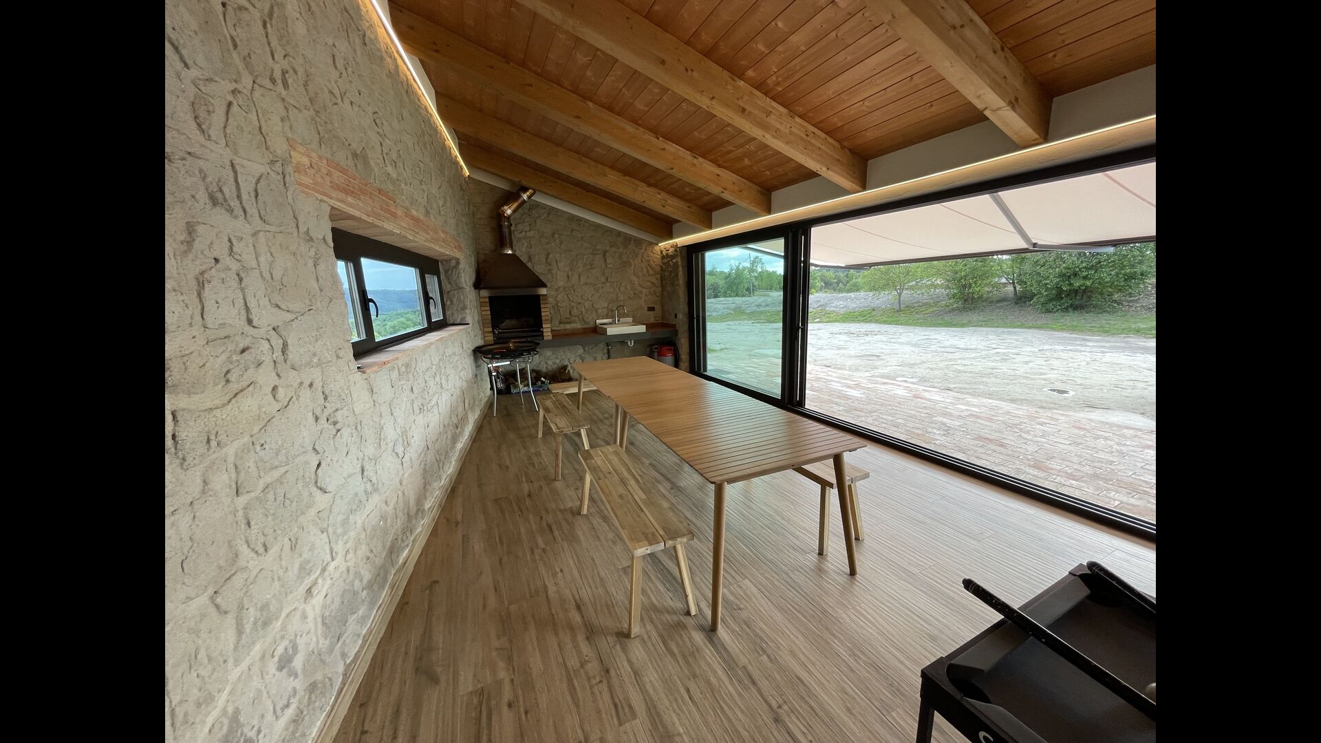 El Porxo és l'altre edifici de la propietat – ple de gom a gom amb espais de descans de luxe, entreteniment i relaxació! Es divideix en tres plantes: la planta baixa pis, el primer pis, i el soterrani.