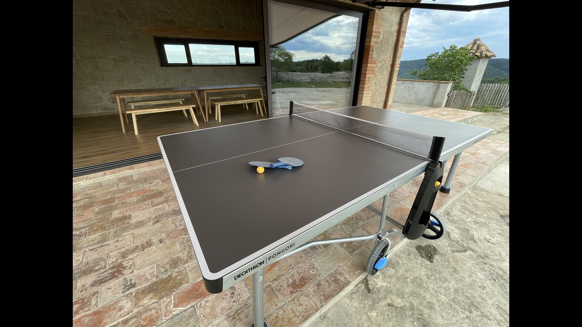 Si voleu sopar a l'exterior, hi hadiverses taules i tamborets/cadires que podeu treure a l'exterior. Gaudeix dels teus àpats mentre el sol es pon i els núvols brillen amb tons càlids de taronja.