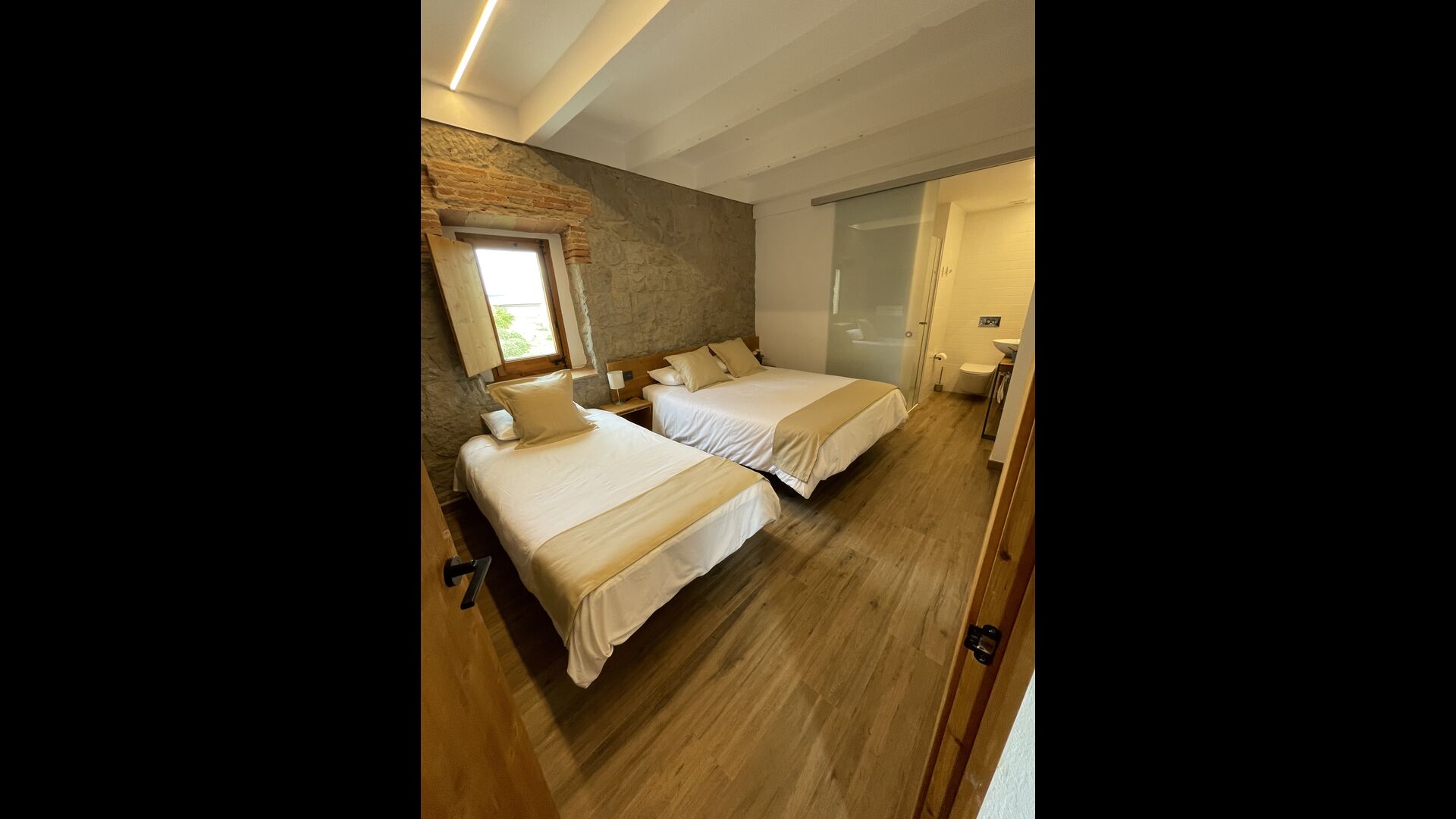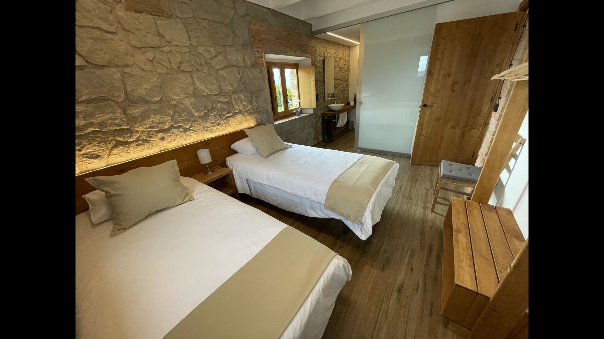 La principal, més gran de les dues cases, contétots els dormitoris de la propietat. L'interior de la casa presenta un estil arquitectònic que contrasta meravellosament amb l'aspecte exterior: acollidor i encantador a l'exterior; modern, elegant i elegant per interior. Llueix un disseny a l'estil industrial, amb terres de fusta llisa i polida, parets modernes de pedra i maó i escales lleugeres il·luminades amb panells i banys exquisits i de gran qualitat – tots ells són ensuite.