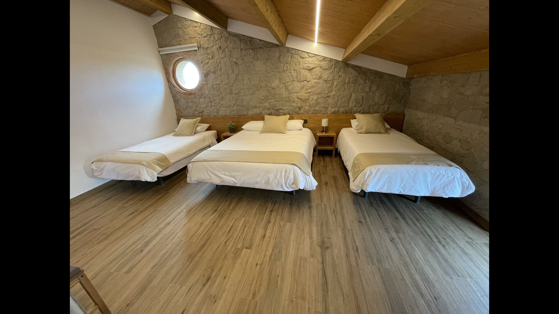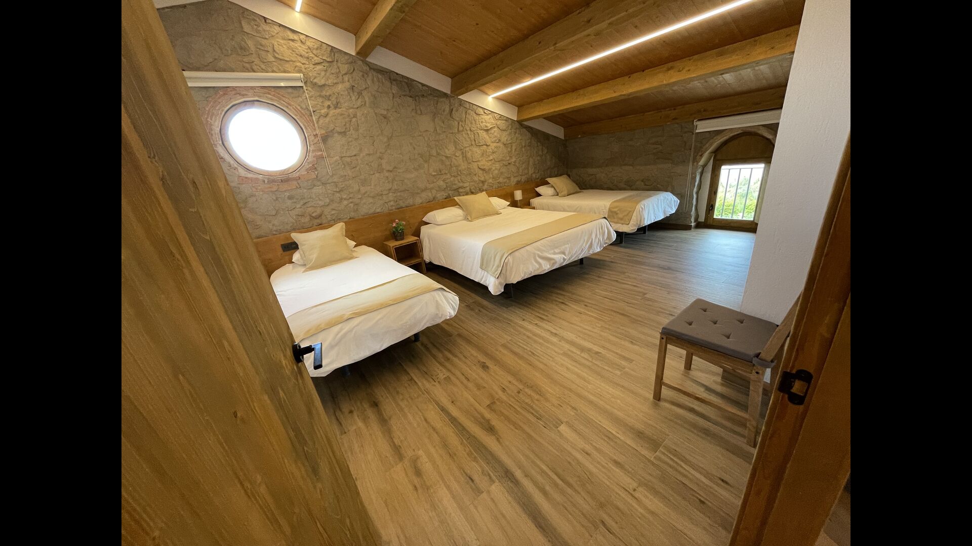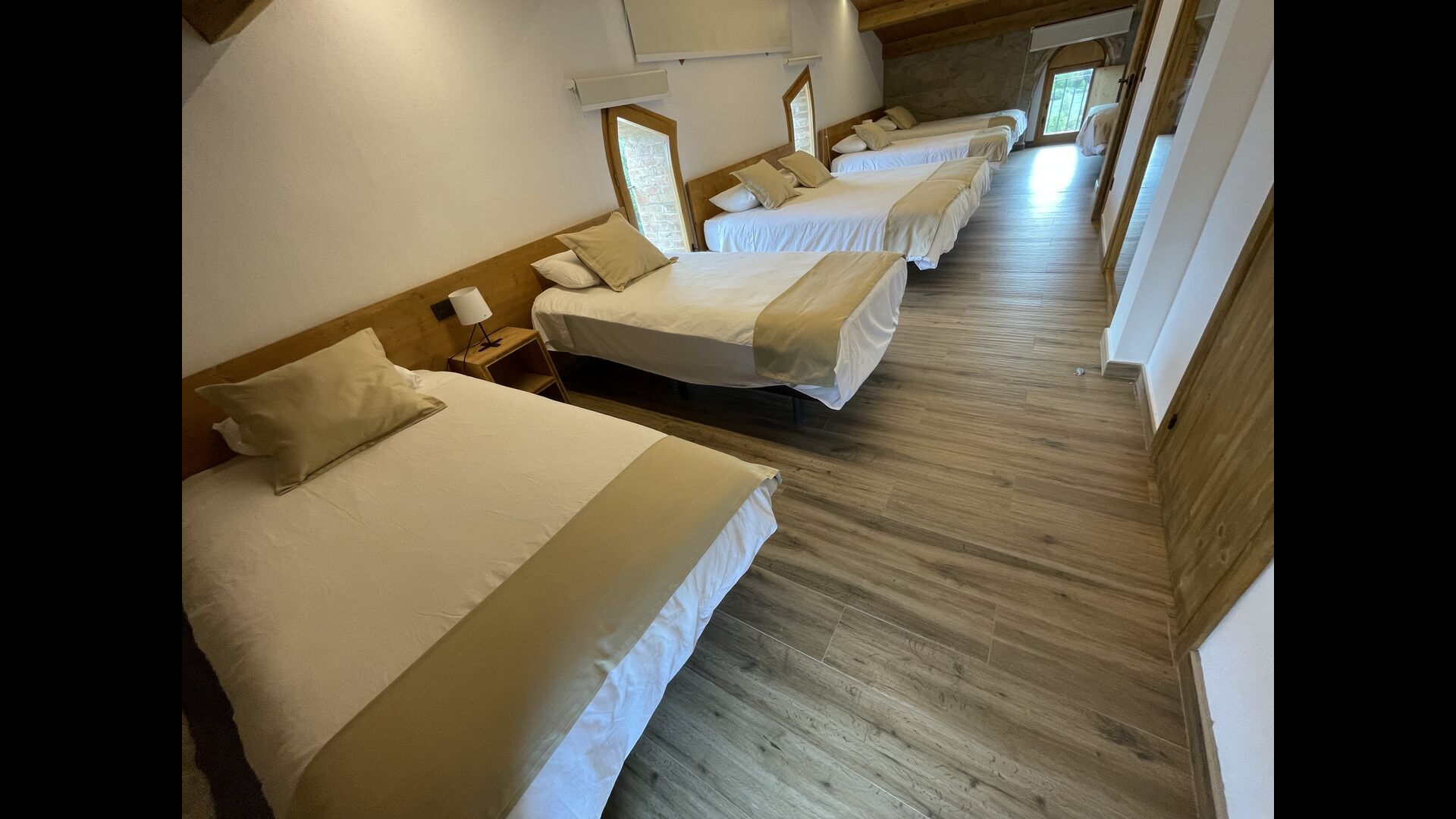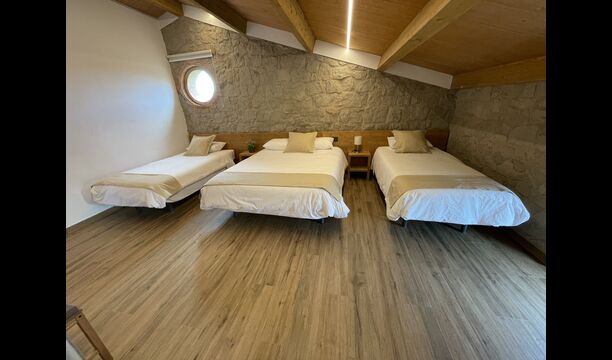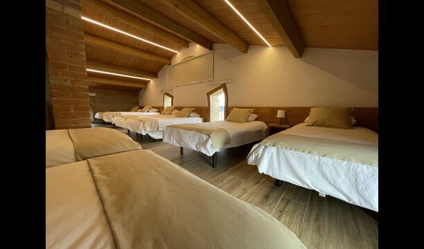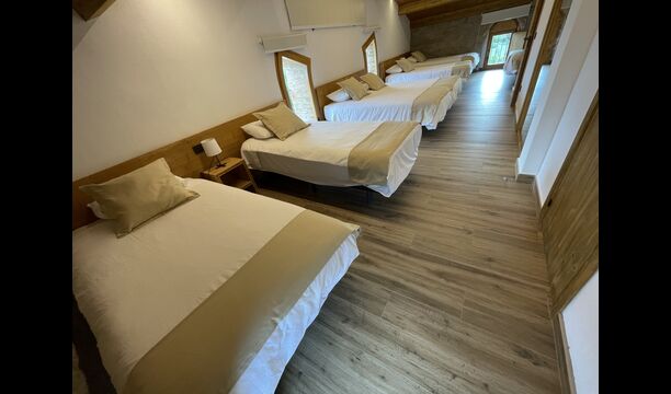 A la segona planta hi trobareu lesúltimes tres habitacions; Una habitació conté 2 llits individuals i 1 llit doble, una altra conté 1 llit individual i 1 llit doble. llit. Finalment, hi ha undormitori gran que té 7 llits individuals.