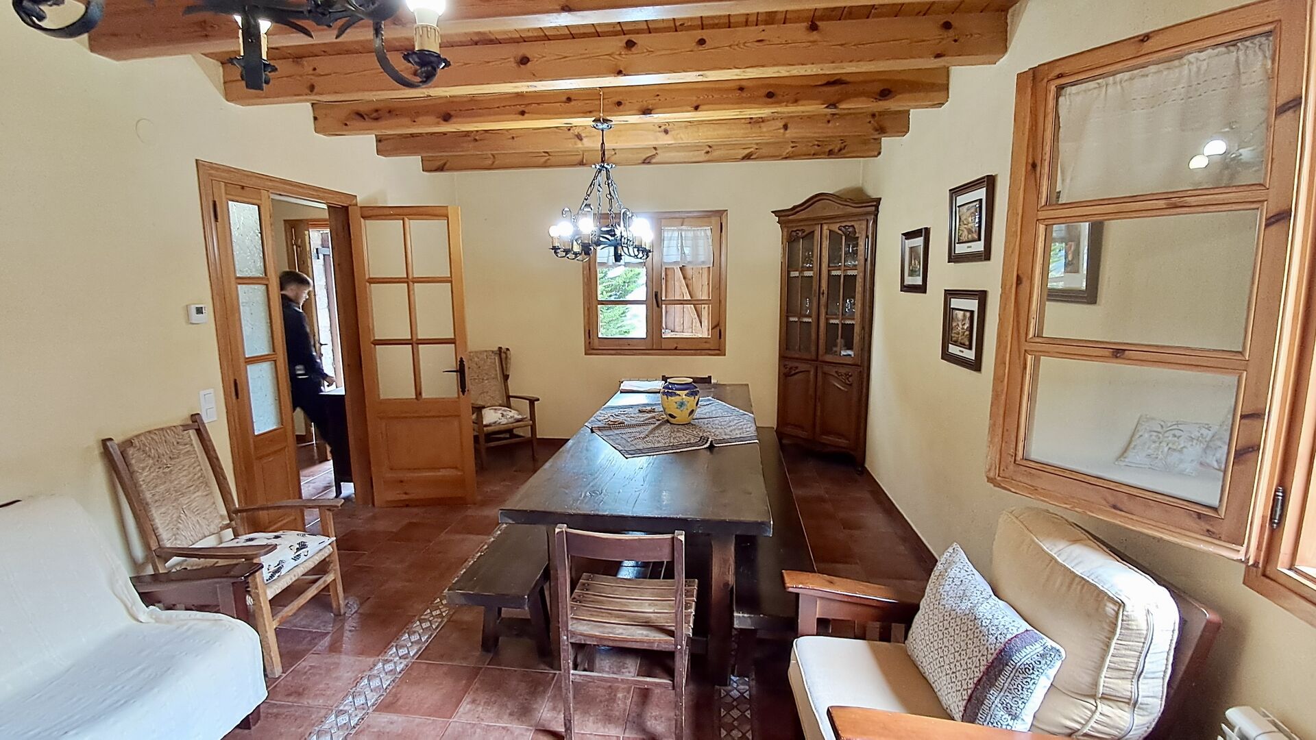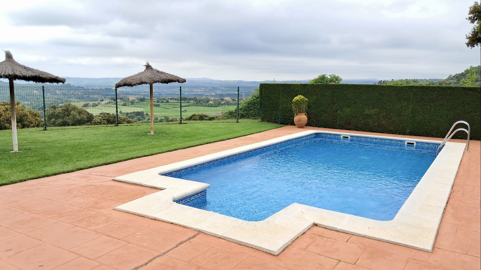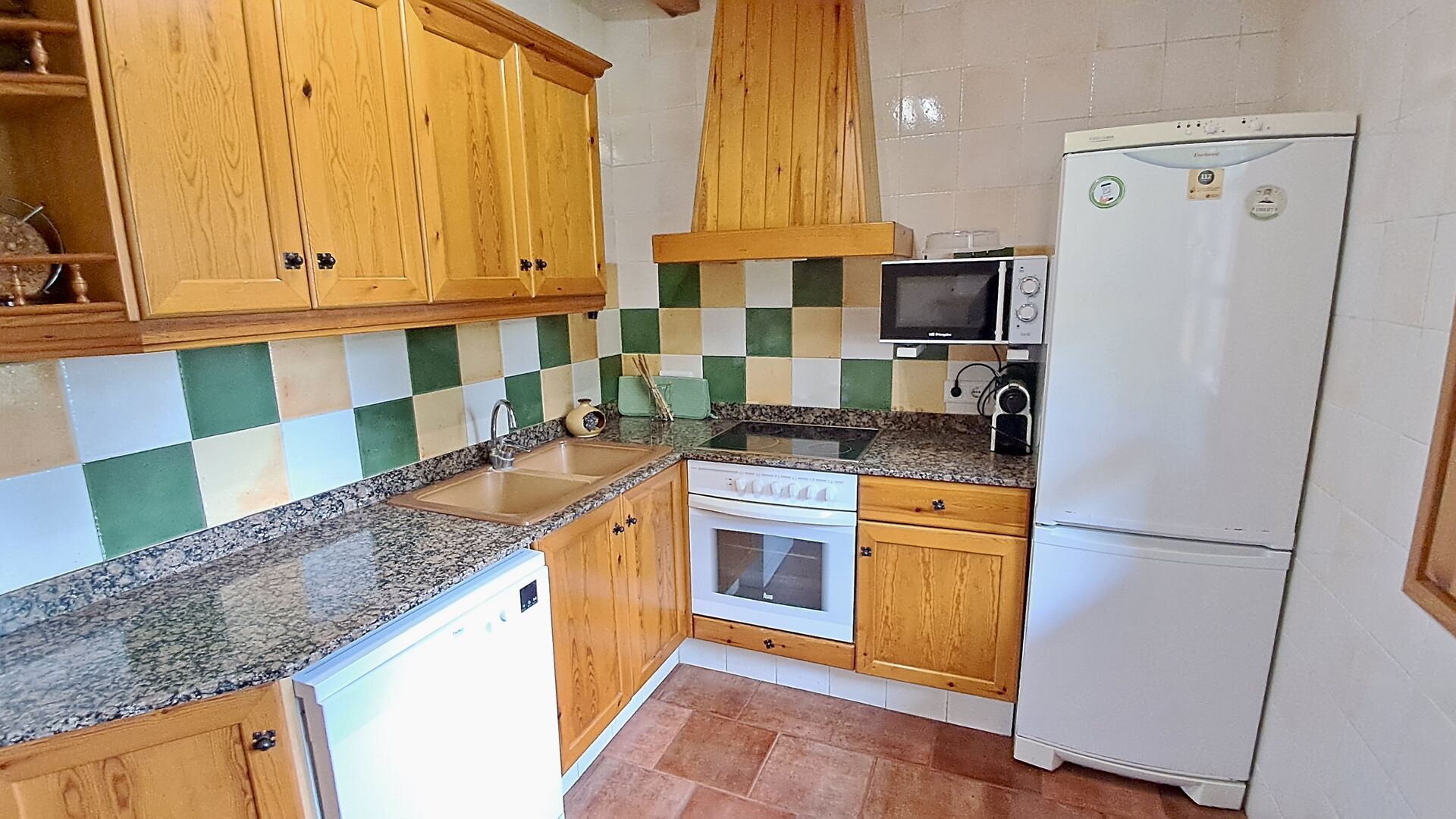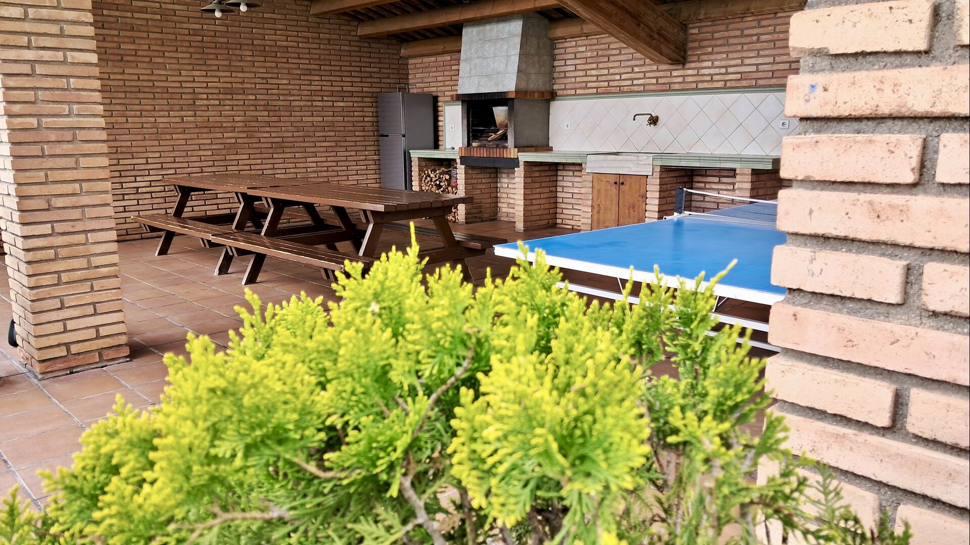 A la planta baixa hi ha una àmplia sala d'estar, on hi ha una acollidora zona d'estar amb televisor i llar de foc. Connectat a aquest hi ha un menjador i una *cuina moderna*, que té rentaplats, microones, nevera i congelador. A més, a la planta inferior hi ha una *habitació doble* amb bany amb dutxa. Si pugeu les escales fins al primer pis, trobareu quatre habitacions, dues de les quals tenen accés a un balcó compartit. Des d'aquí podeu gaudir de la *posta de sol* al vespre o de la *sortida del sol* al matí. També hi ha un bany amb banyera en aquesta planta. *Destaquen especialment les instal·lacions exteriors*. La més gran i, sens dubte, la preferida entre els nens és, per descomptat, *la piscina*, que té una mida de *32 m2*. Està tancada, de manera que podeu decidir quan els nens més petits poden utilitzar la piscina. A més, podeu observar els nens a la piscina des del balcó. L'enorme *pati cobert* està just al costat de la piscina. Aquí hi ha una *taula de menjador exterior* i una barbacoa*. Aquí podeu cuinar i gaudir de menjars casolans. Aquest serà probablement el punt de trobada natural de les vacances. També hi ha ping-pong.