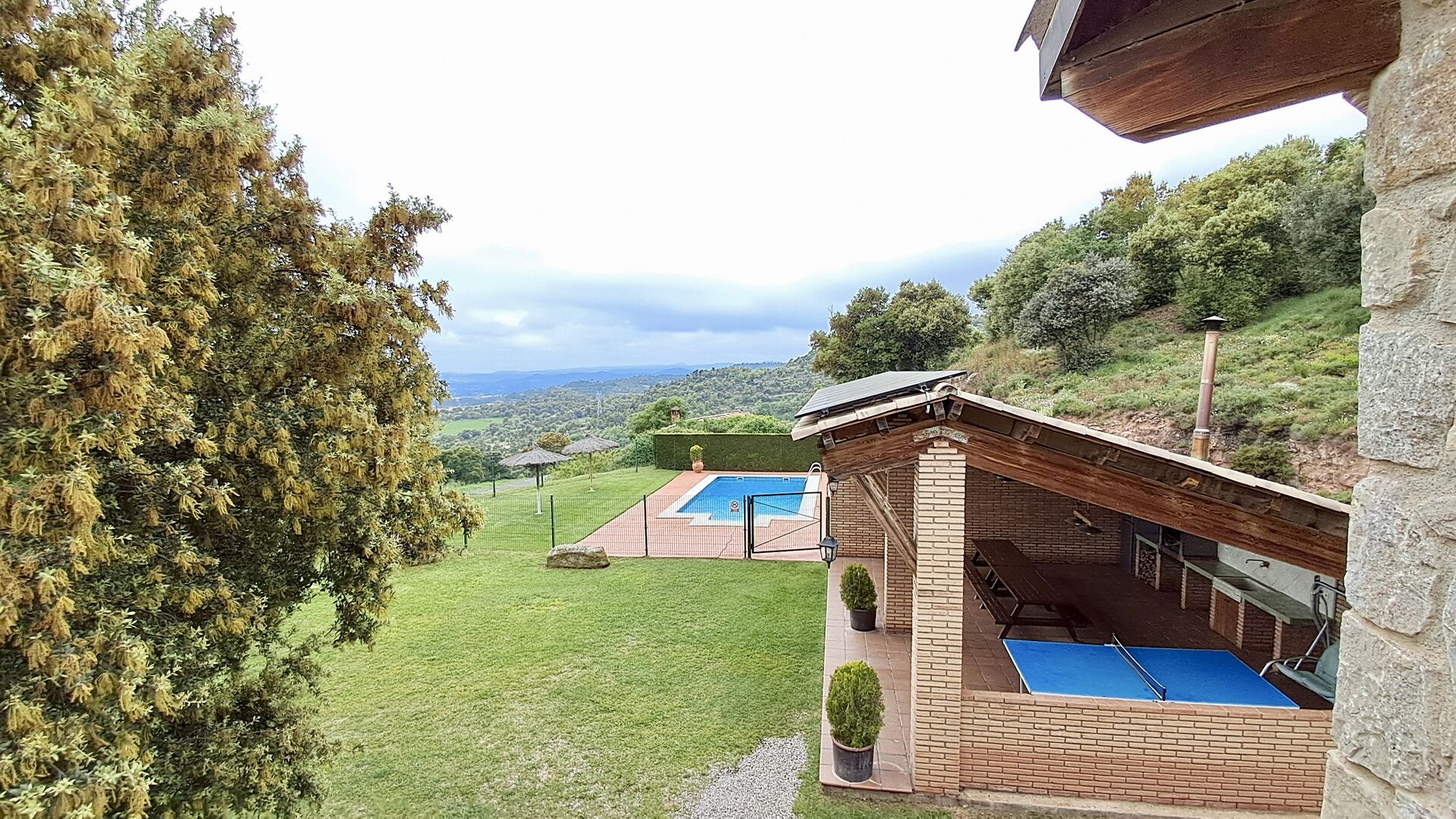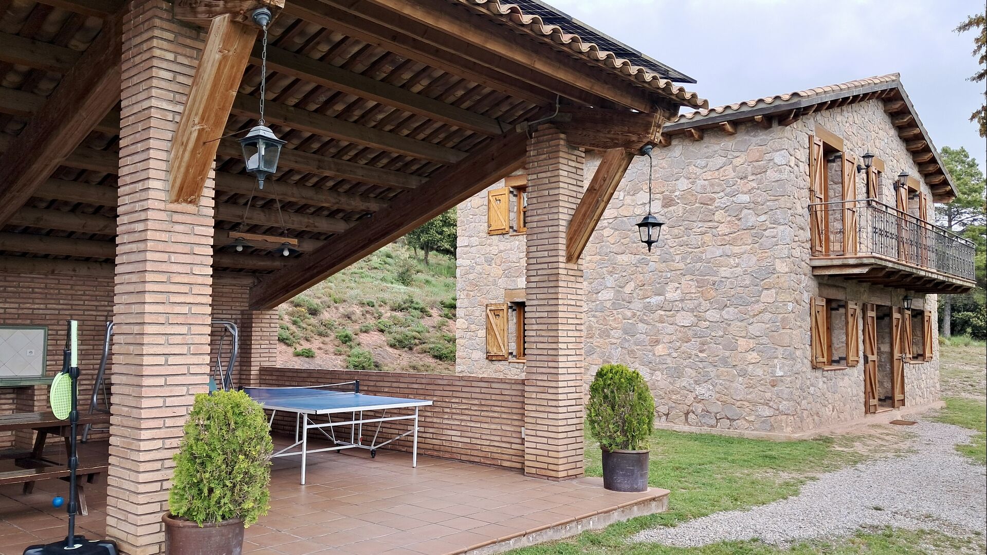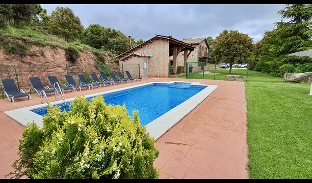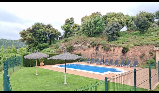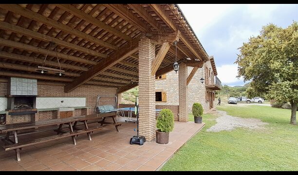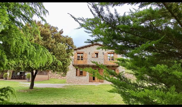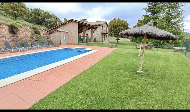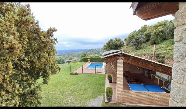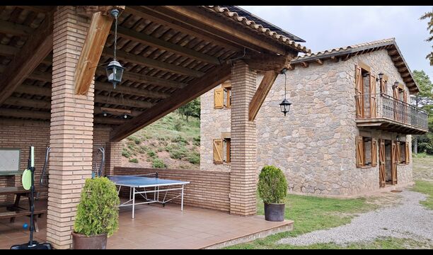 Una característica completament única d'aquesta casa és la ubicació. En primer lloc, la ubicació a la falda de la muntanya ofereix **unes vistes fantàstiques**: segons el propietari, si fa bon temps es pot veure fins a la serralada de **Montserrat**, prop de Barcelona. A més, dues habitacions de la primera planta tenen un **balcó compartit** on es pot gaudir de les vistes. En segon lloc, la ubicació ofereix una privacitat i un ambient tranquil únics: no hi ha veïns sorollosos, només vosaltres i la natura. Tanmateix, la privacitat no vol dir que el poble més proper estigui lluny. Hi ha un camí d'1,5 km des de la casa que baixa fins a un petit *poble autèntic*, on podeu trobar algunes petites cafeteries i un supermercat. Gironella, una ciutat acollidora amb uns 5000 habitants, es troba a només 4 km de distància, mentre que la capital regional és a 19 quilòmetres.