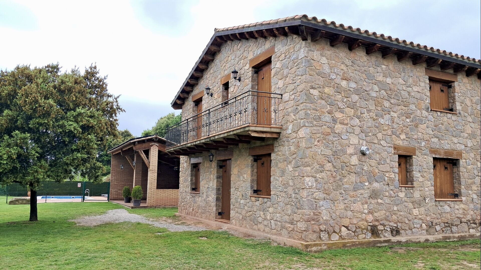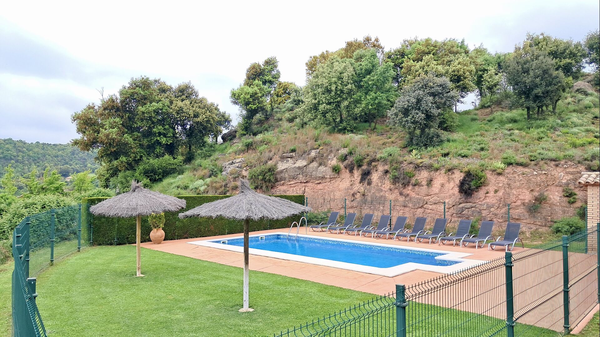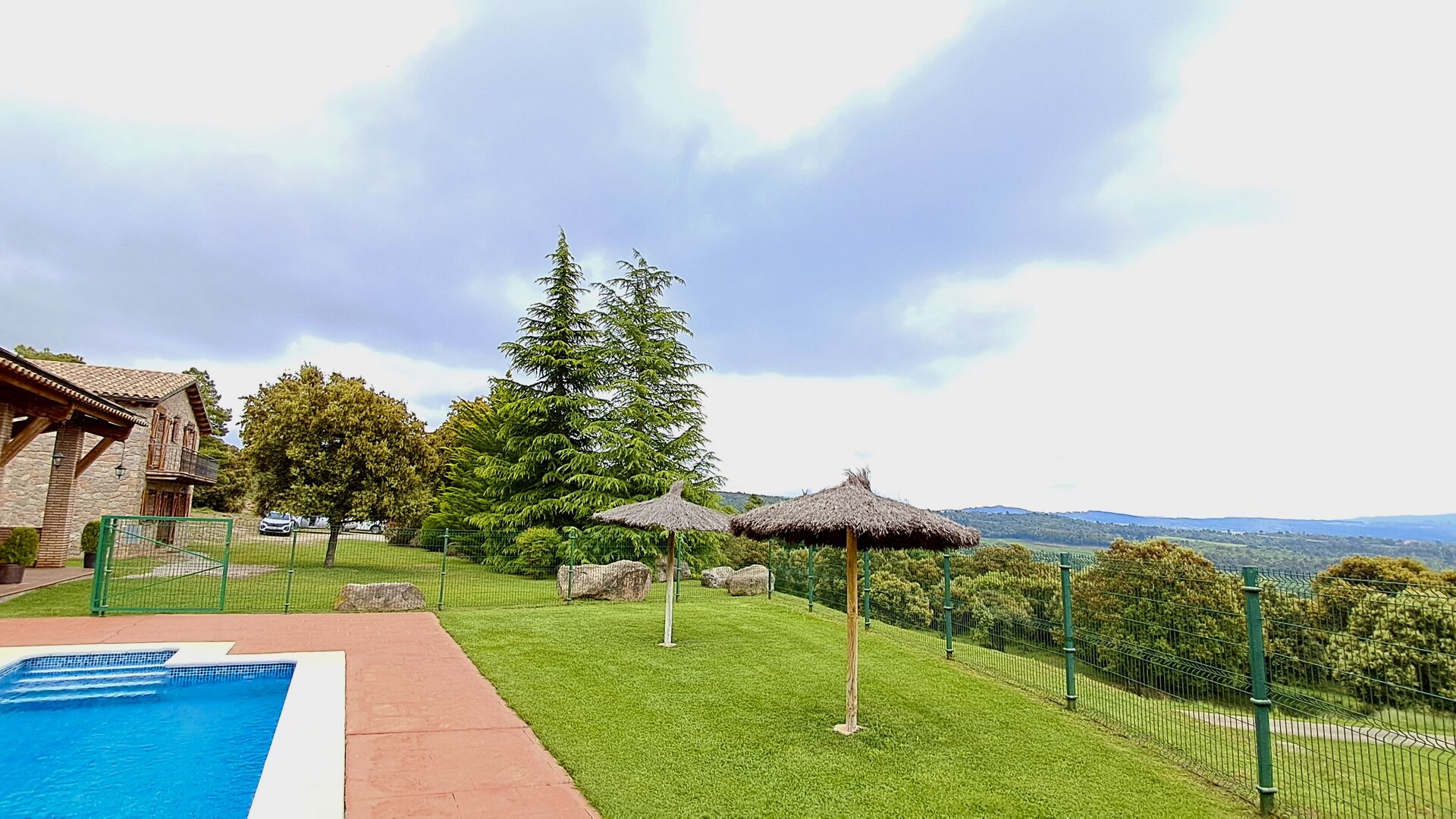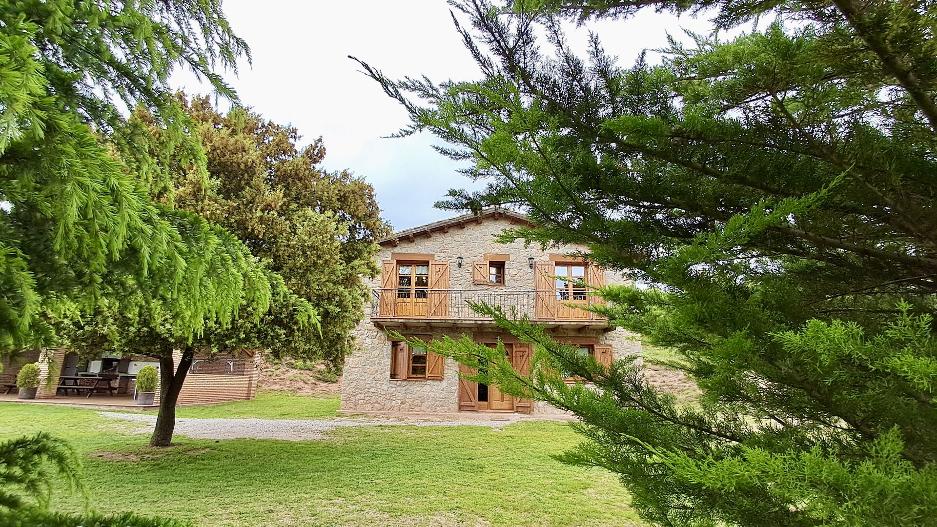 Una característica completament única d'aquesta casa és la ubicació. En primer lloc, la ubicació a la falda de la muntanya ofereix **unes vistes fantàstiques**: segons el propietari, si fa bon temps es pot veure fins a la serralada de **Montserrat**, prop de Barcelona. A més, dues habitacions de la primera planta tenen un **balcó compartit** on es pot gaudir de les vistes. En segon lloc, la ubicació ofereix una privacitat i un ambient tranquil únics: no hi ha veïns sorollosos, només vosaltres i la natura. Tanmateix, la privacitat no vol dir que el poble més proper estigui lluny. Hi ha un camí d'1,5 km des de la casa que baixa fins a un petit *poble autèntic*, on podeu trobar algunes petites cafeteries i un supermercat. Gironella, una ciutat acollidora amb uns 5000 habitants, es troba a només 4 km de distància, mentre que la capital regional és a 19 quilòmetres.