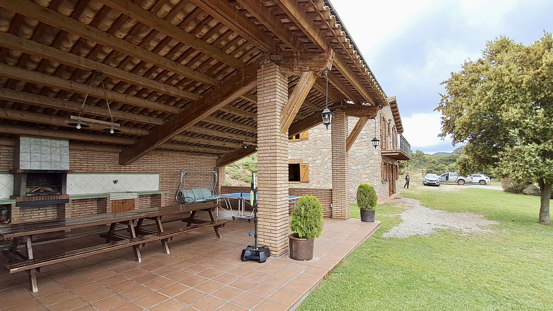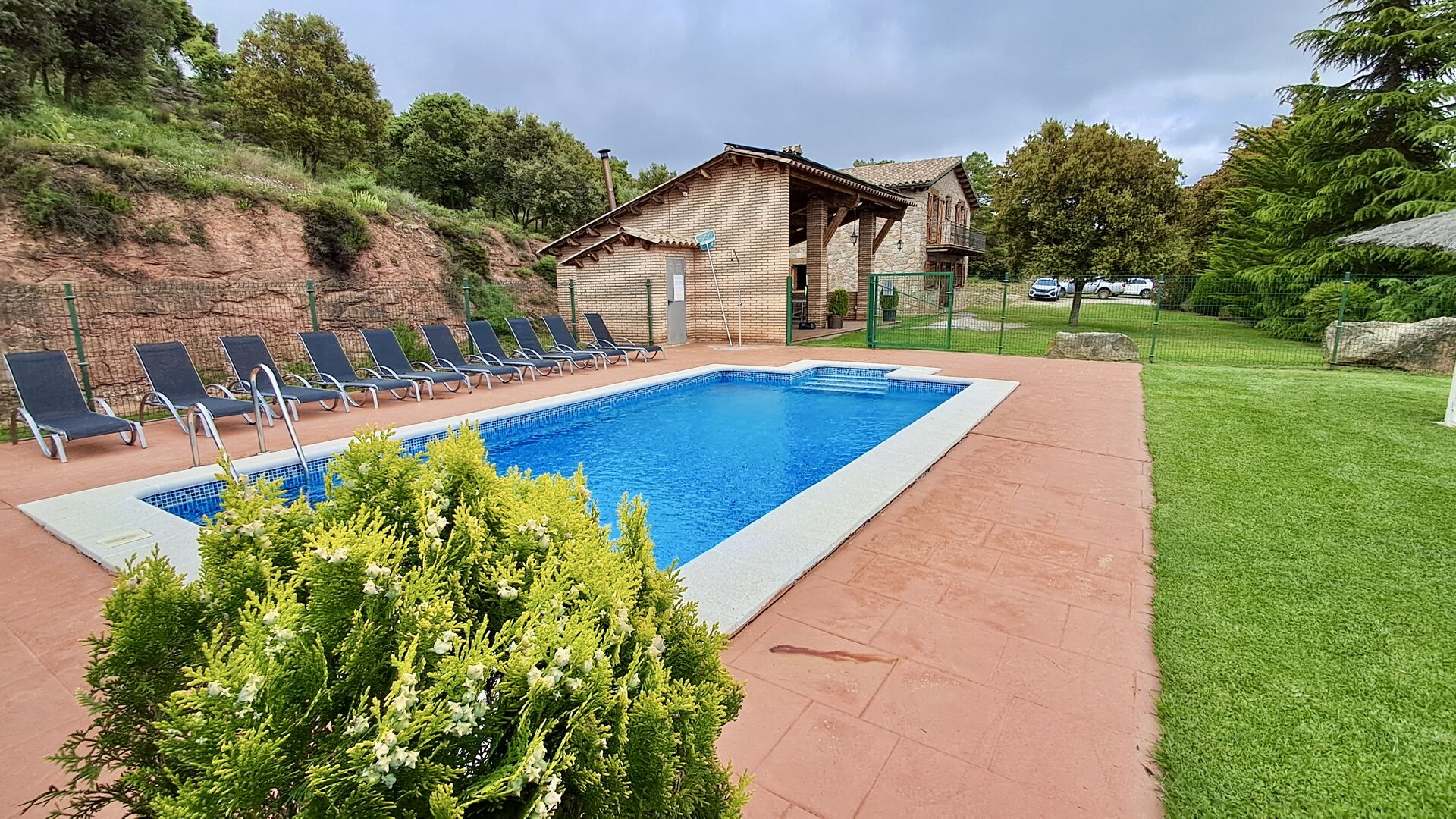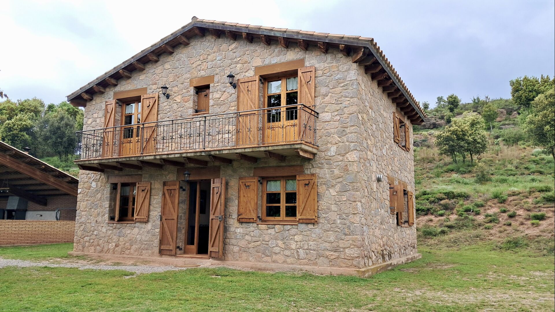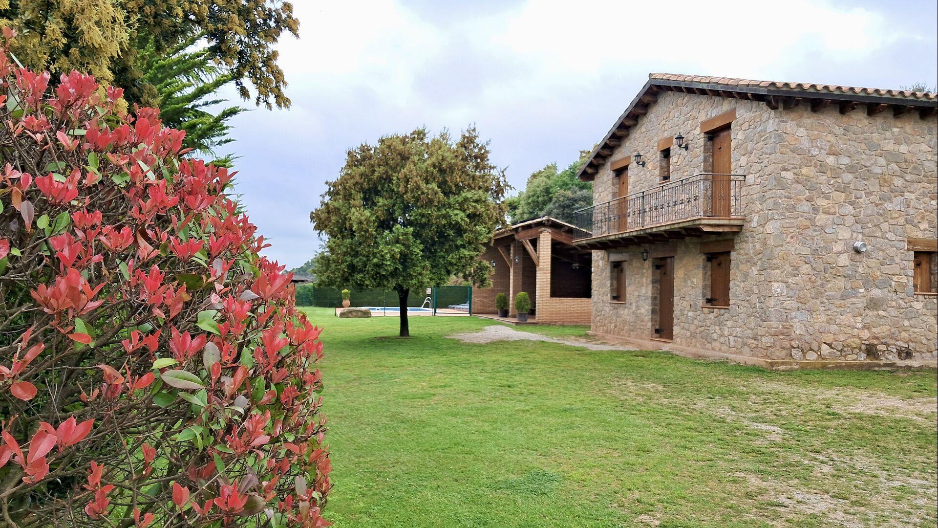 Una característica completament única d'aquesta casa és la ubicació. En primer lloc, la ubicació a la falda de la muntanya ofereix **unes vistes fantàstiques**: segons el propietari, si fa bon temps es pot veure fins a la serralada de **Montserrat**, prop de Barcelona. A més, dues habitacions de la primera planta tenen un **balcó compartit** on es pot gaudir de les vistes. En segon lloc, la ubicació ofereix una privacitat i un ambient tranquil únics: no hi ha veïns sorollosos, només vosaltres i la natura. Tanmateix, la privacitat no vol dir que el poble més proper estigui lluny. Hi ha un camí d'1,5 km des de la casa que baixa fins a un petit *poble autèntic*, on podeu trobar algunes petites cafeteries i un supermercat. Gironella, una ciutat acollidora amb uns 5000 habitants, es troba a només 4 km de distància, mentre que la capital regional és a 19 quilòmetres.