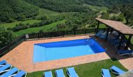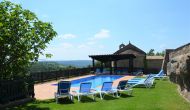 La zona de la piscina de la casa de vacances. En primer lloc, la piscina és gran amb una mida de menys de 32 m2, i en segon lloc, la vista és indescriptiblement bona, perquè la piscina és igual a la vora de la safata. S'ha posat una tanca per motius de seguretat. A més, hi ha ganmeses per a tots els hostes de la casa. Just al costat de la piscina hi ha una terrassa coberta, que probablement serà el punt de trobada de les vacances. També hi ha una altra terrassa amb accés directe a la cuina. Aquí podreu gaudir del menjar casolà durant les llargues i càlides vetllades catalanes.