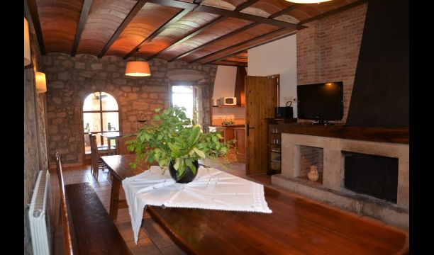 La cuina ben equipada i bonica té entre d'altres un microones, un rentavaixelles, un forn i molt més. Fins i tot és possible reservar un xef privat una nit; és molt recomanable. Connectada a la cuina hi ha una gran i clàssica taula llarga catalana, on podreu gaudir del menjar. A la mateixa habitació hi ha una petita zona d'estar amb sofàs suaus.